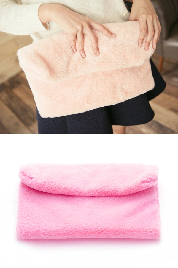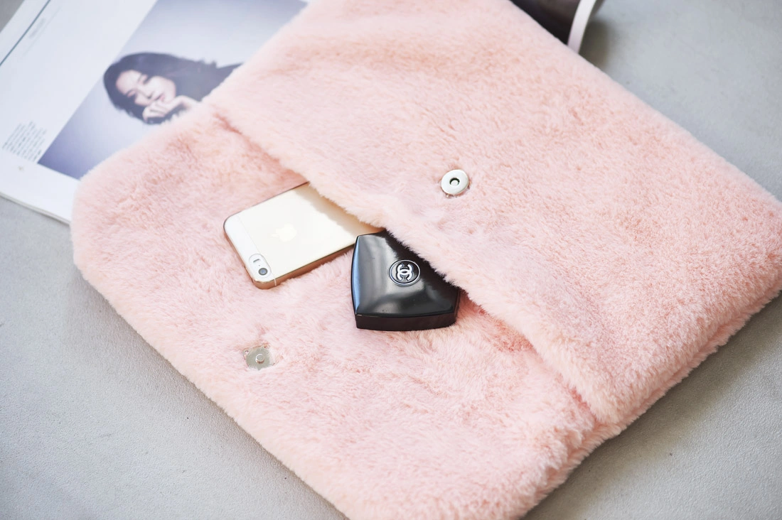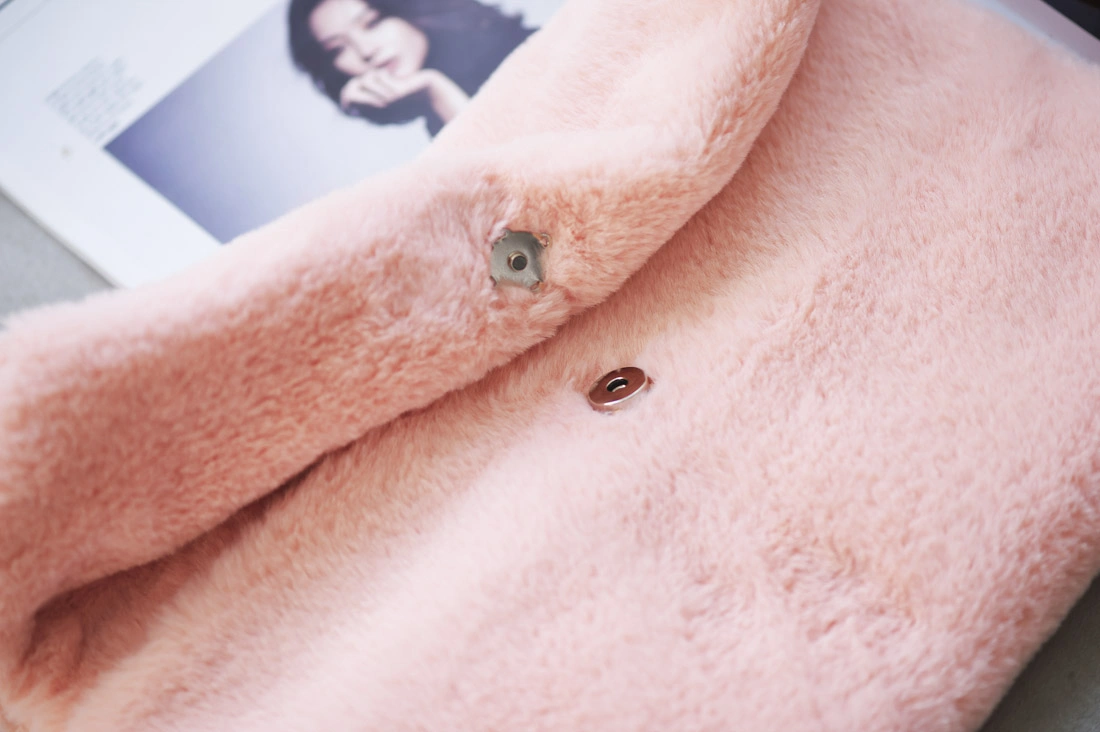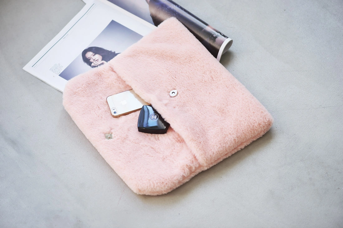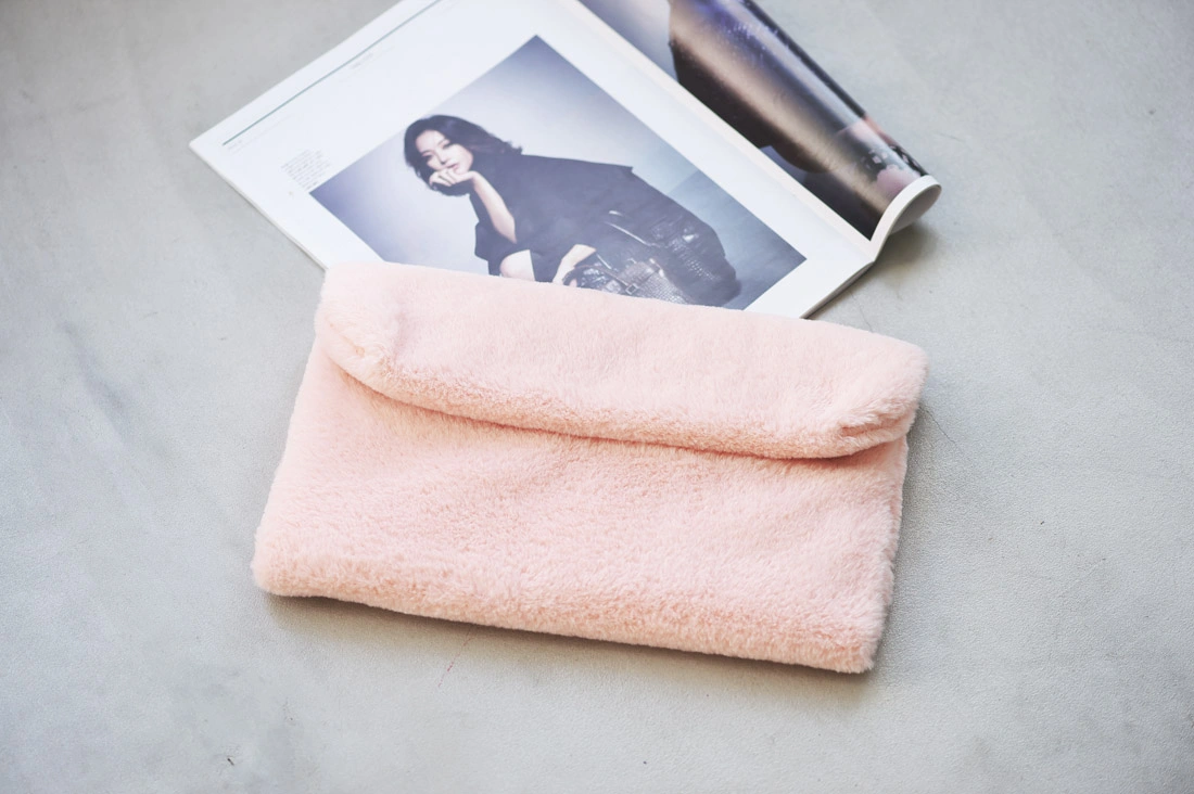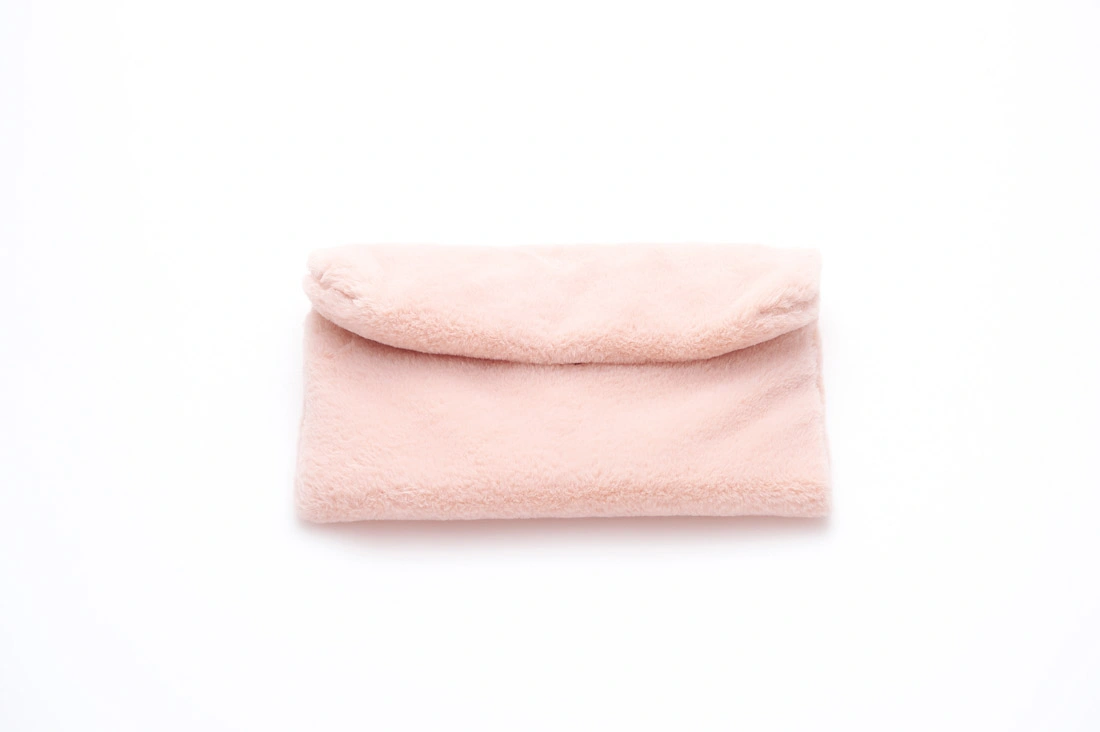 正韓製 獨特毛絨感仿毛手拿包/淺膚/粉紅