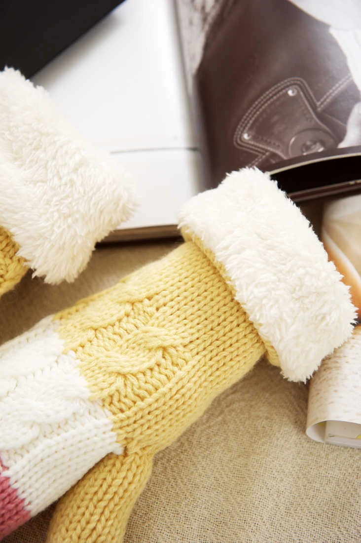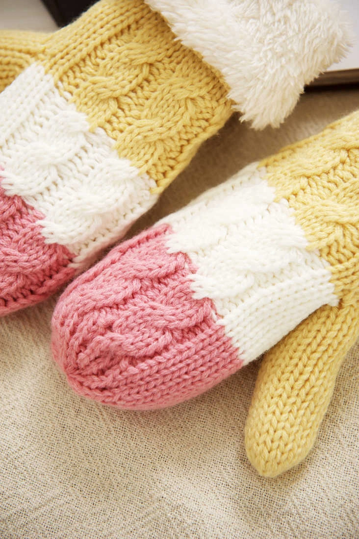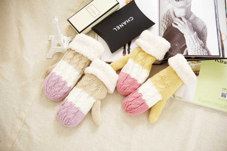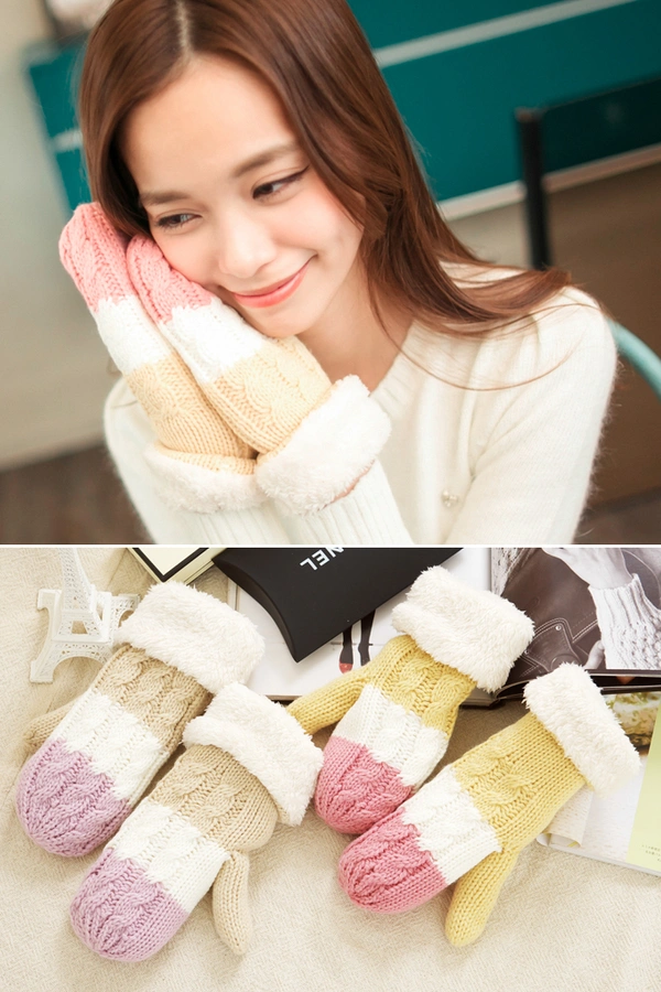 韓國設計 溫暖配色鋪毛手套/粉紅/紫