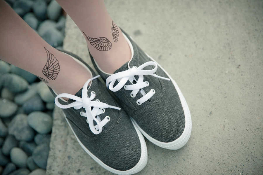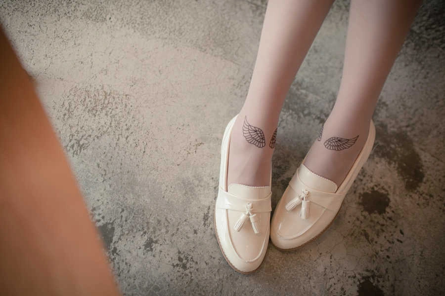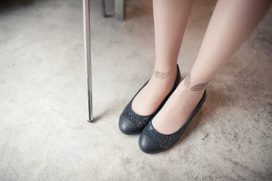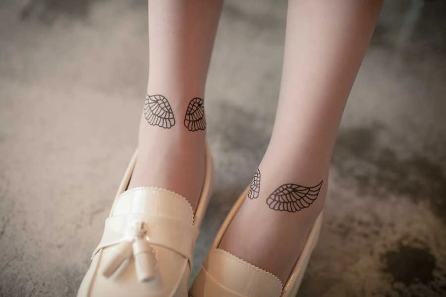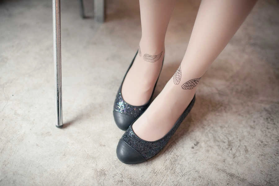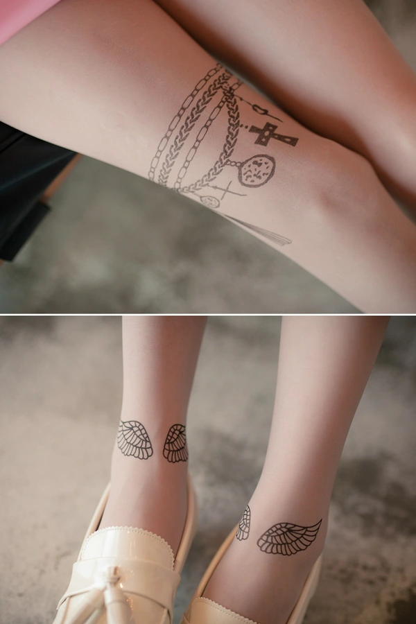 正韓製 迷人天使翅膀假刺青透膚絲襪/透膚
