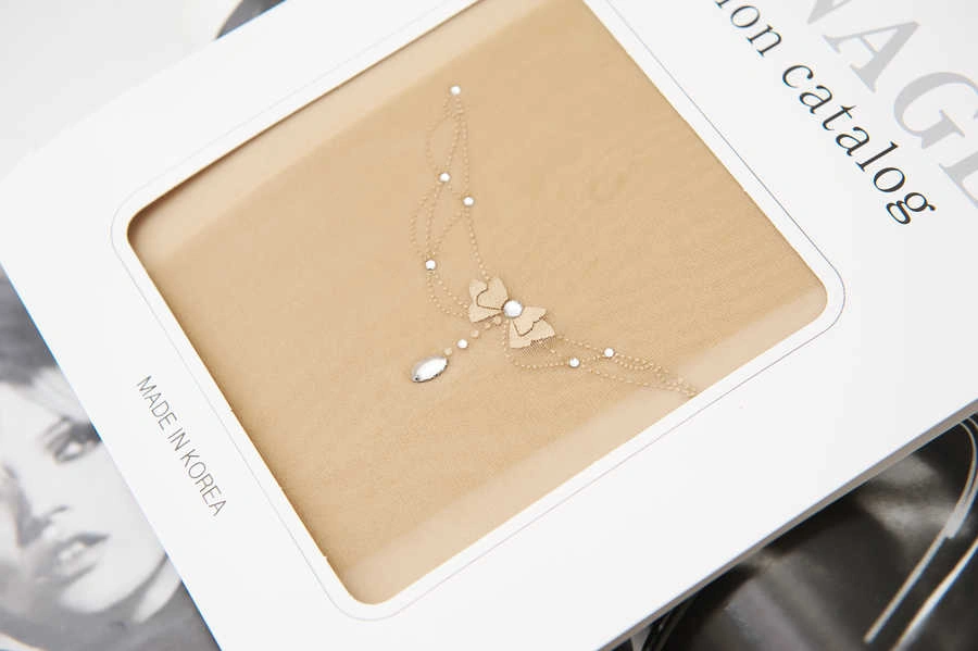 正韓製 女神美踝蝴蝶結水鑽點綴絲襪/透膚