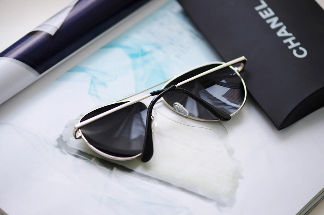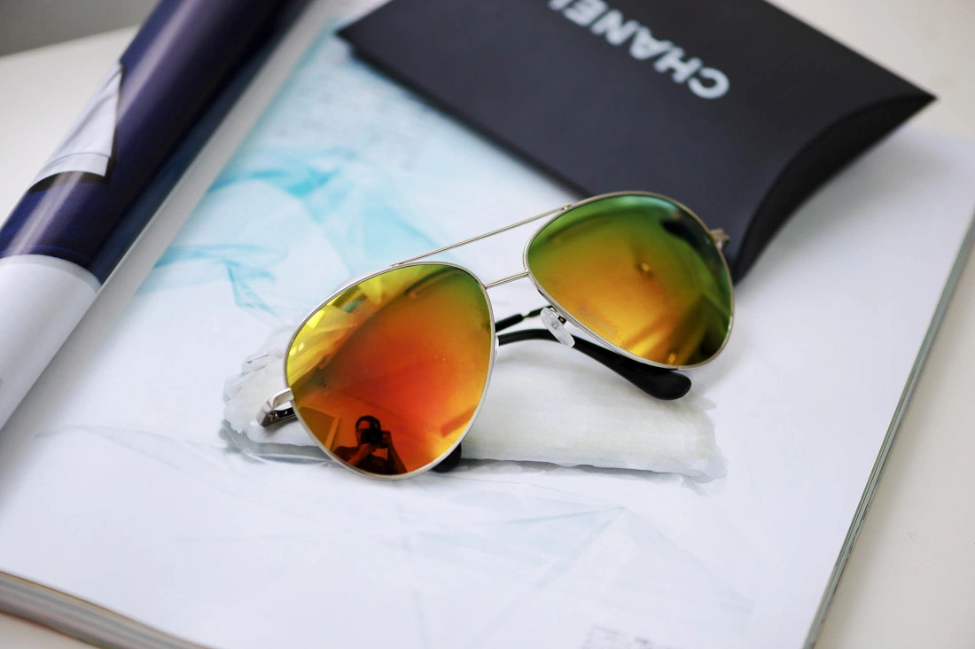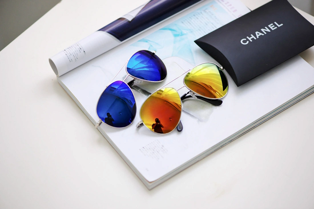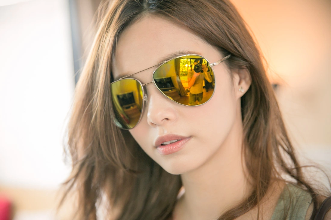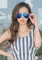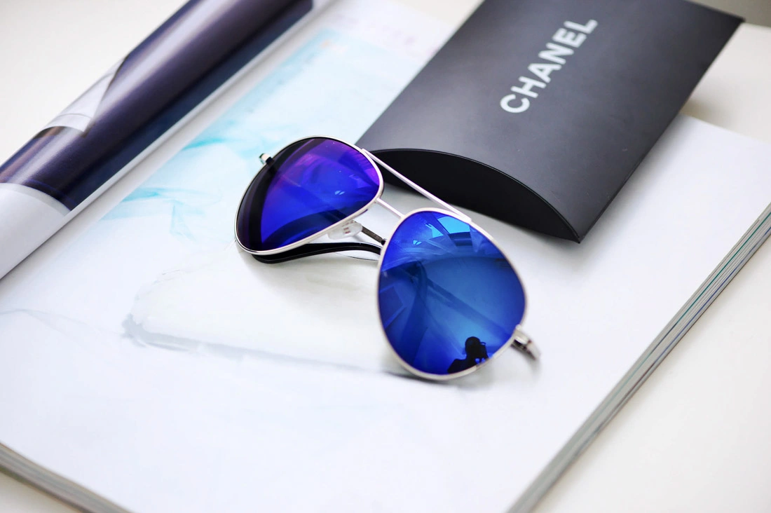 韓國設計 時光潮流 金屬光澤細框帥氣型墨鏡/藍/金