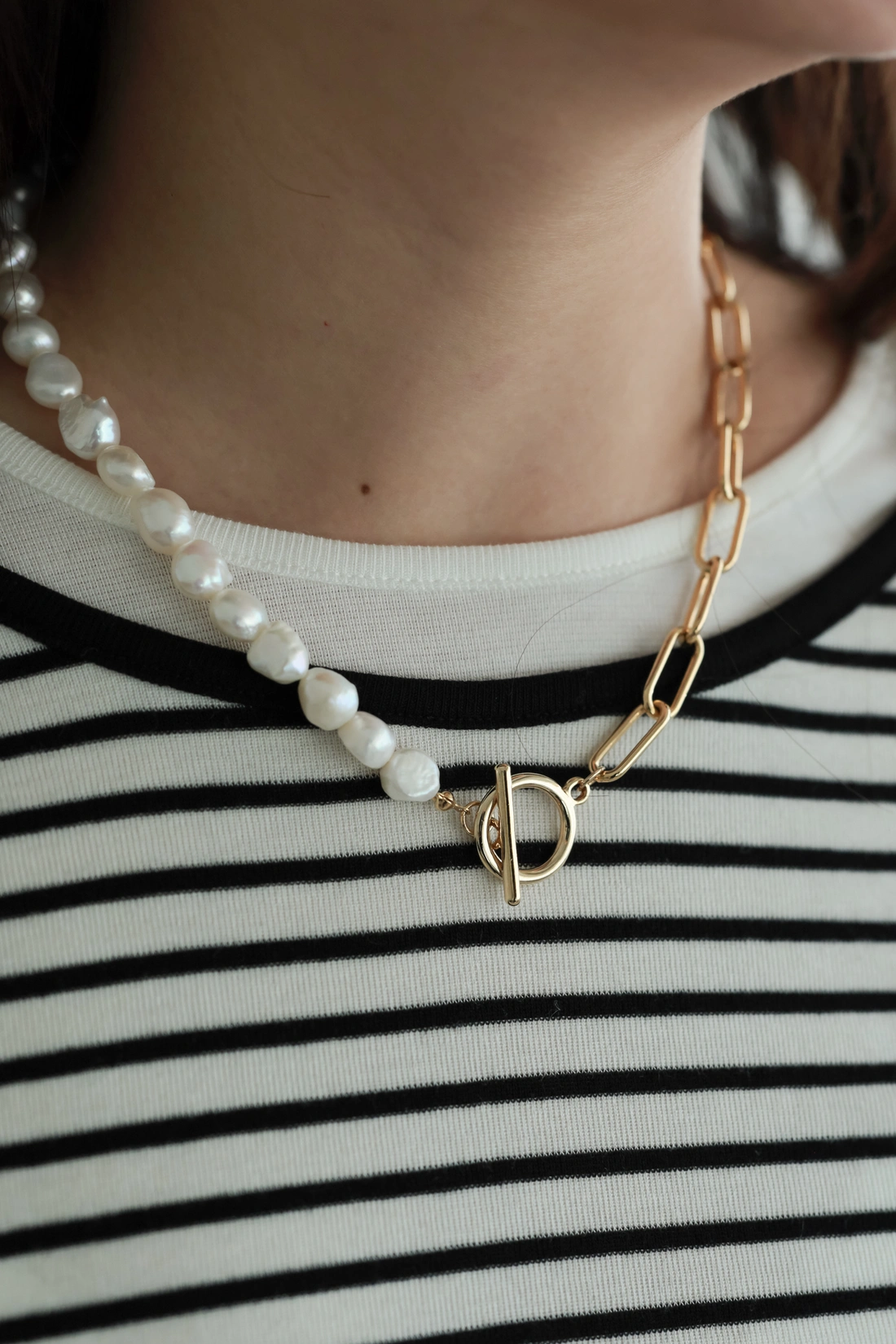 正韓製 珍珠貝母拼方塊項鍊