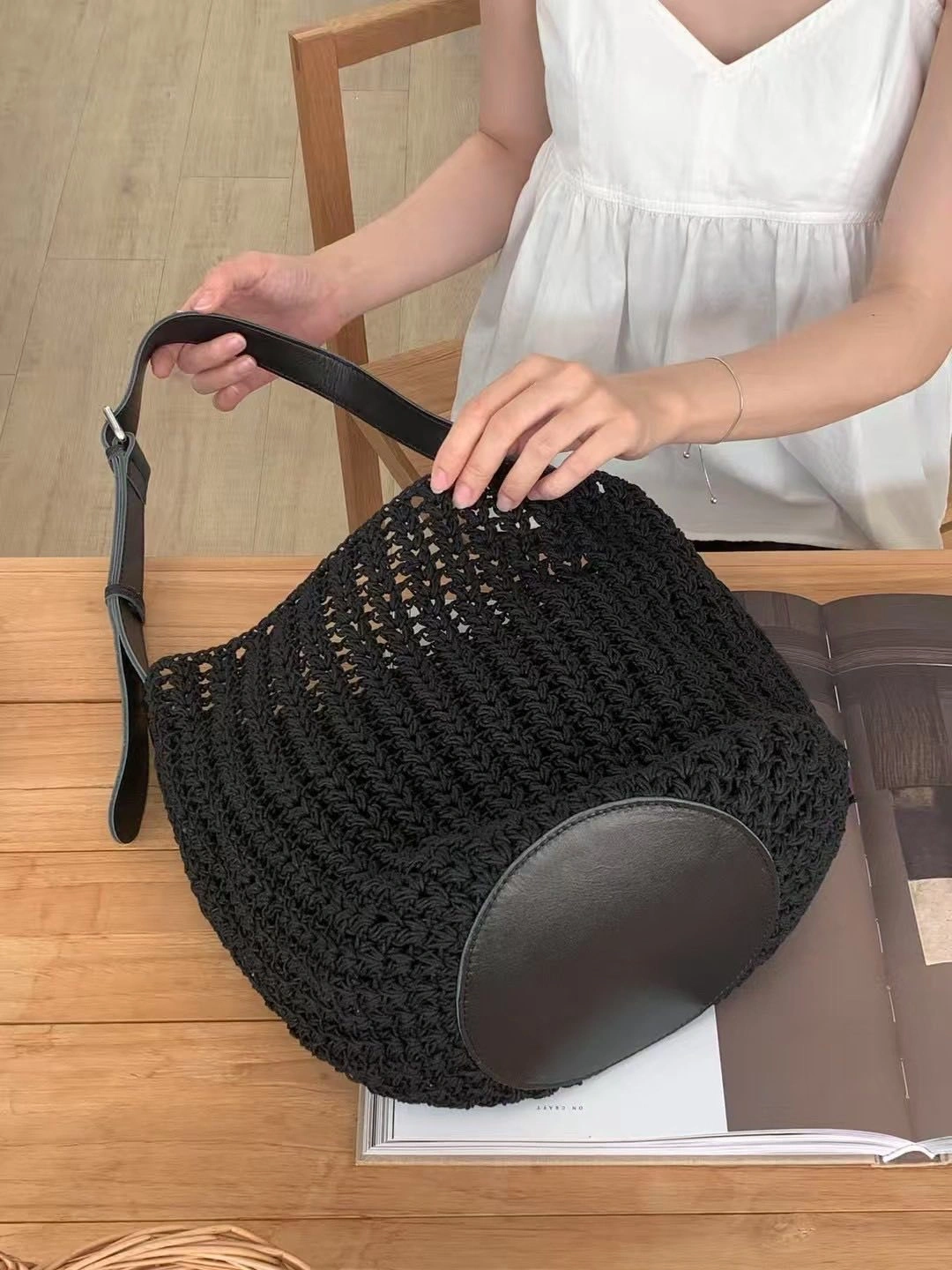 正韓製 不買會後悔!超百搭真皮草編包