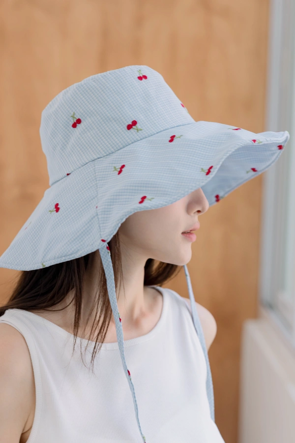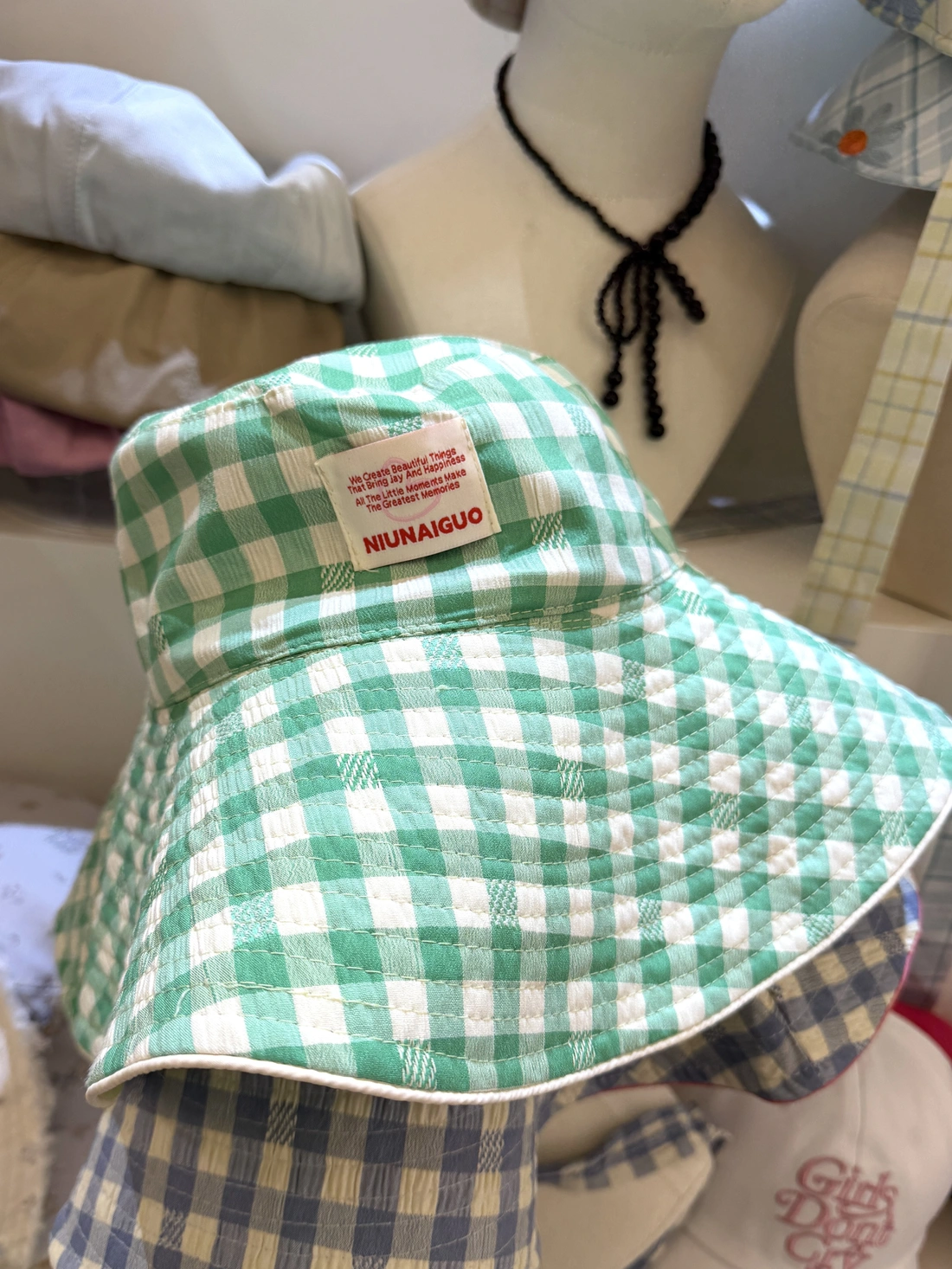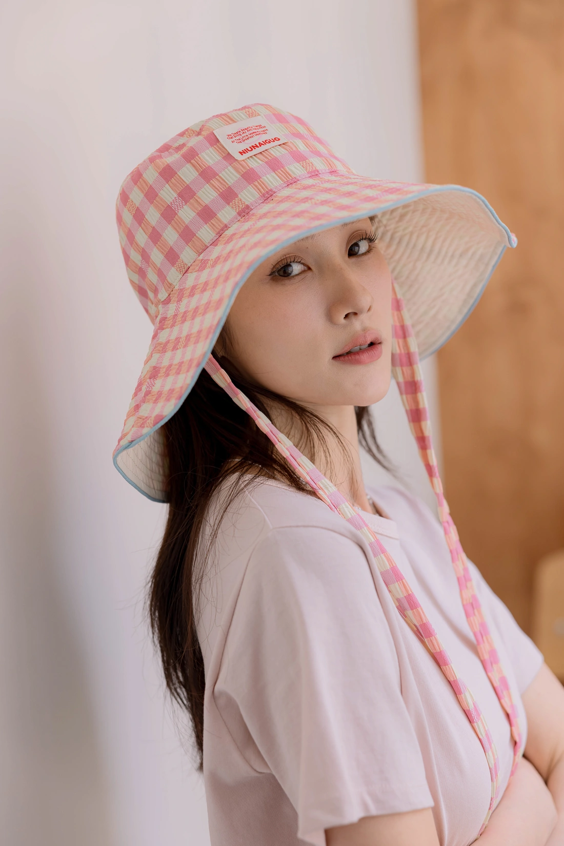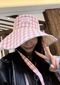 小標籤造型不無聊/粉黃交錯大格紋/遮陽必備款