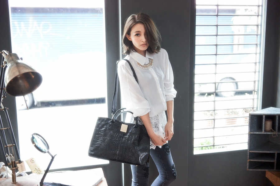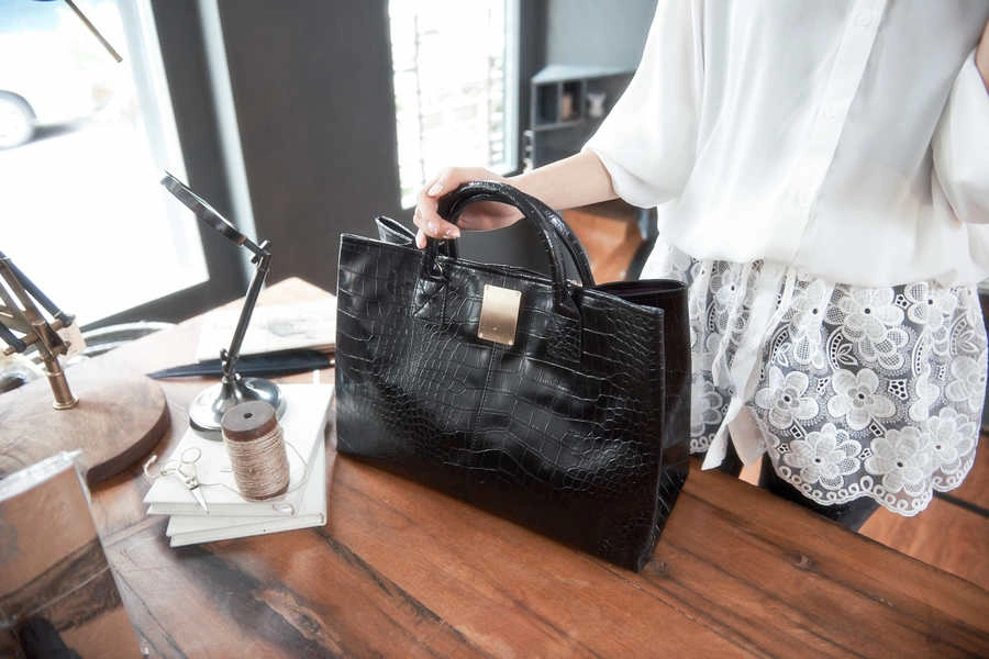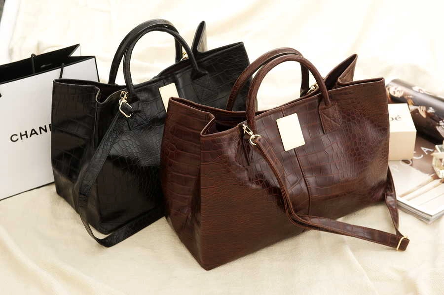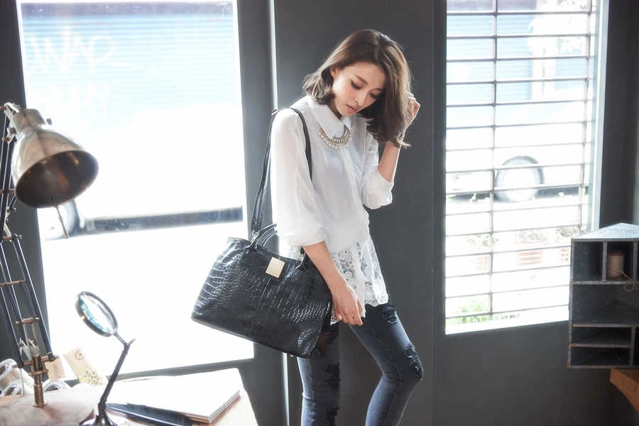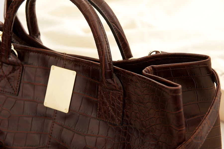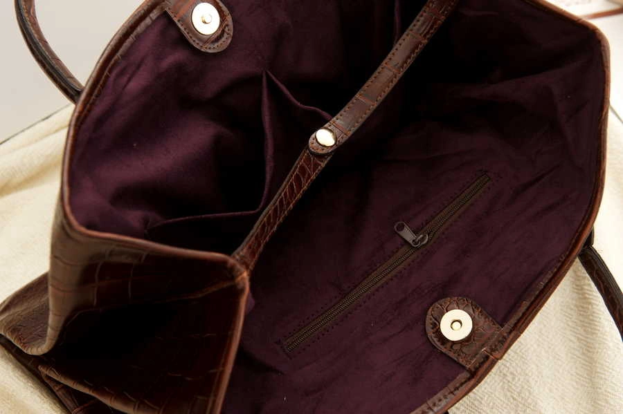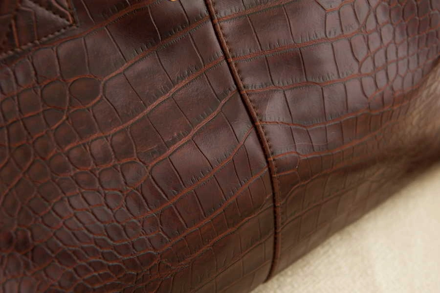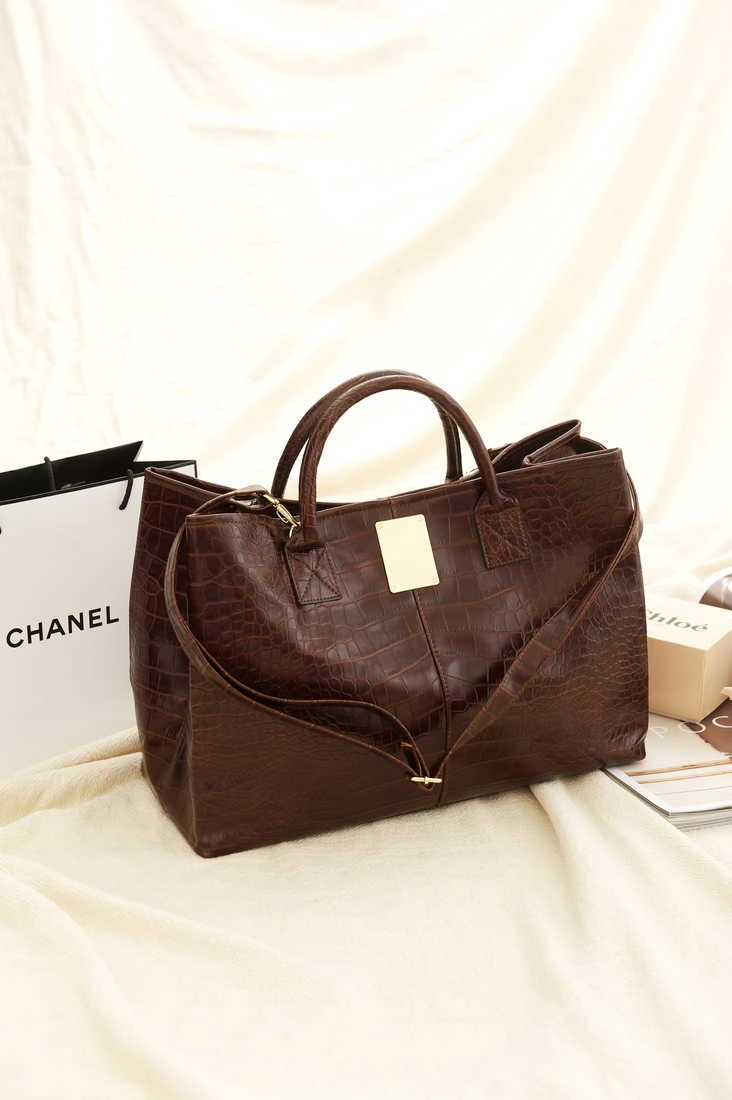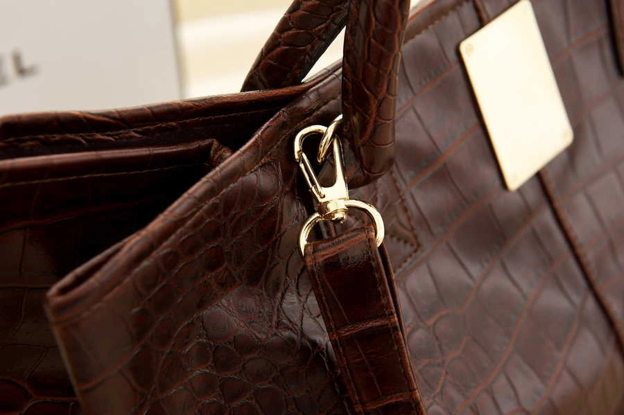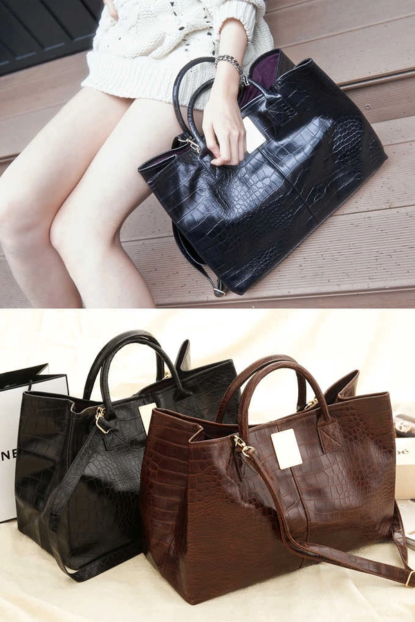 正韓製 皮質光感鱷魚紋包(麂皮質感內裡)/咖啡/黑