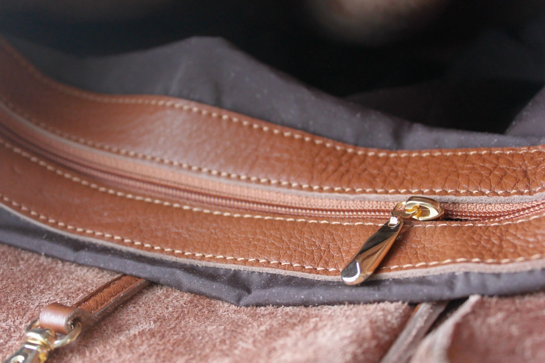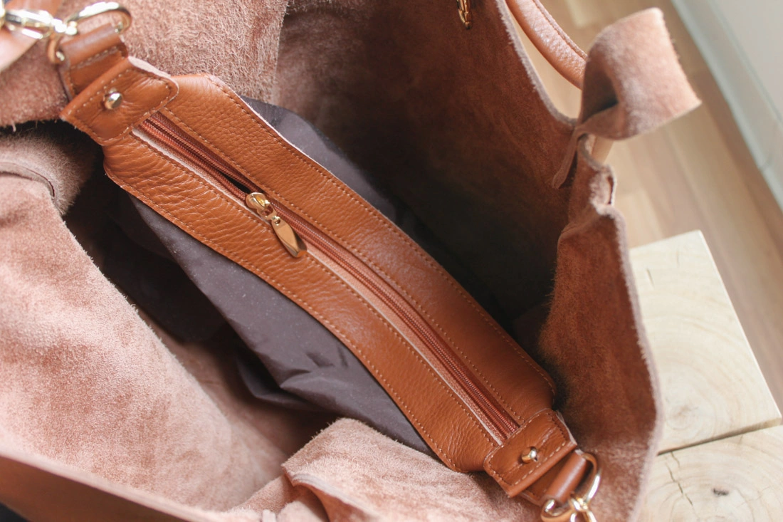 一個拉鍊內袋 厚實真牛皮 內裡麂皮