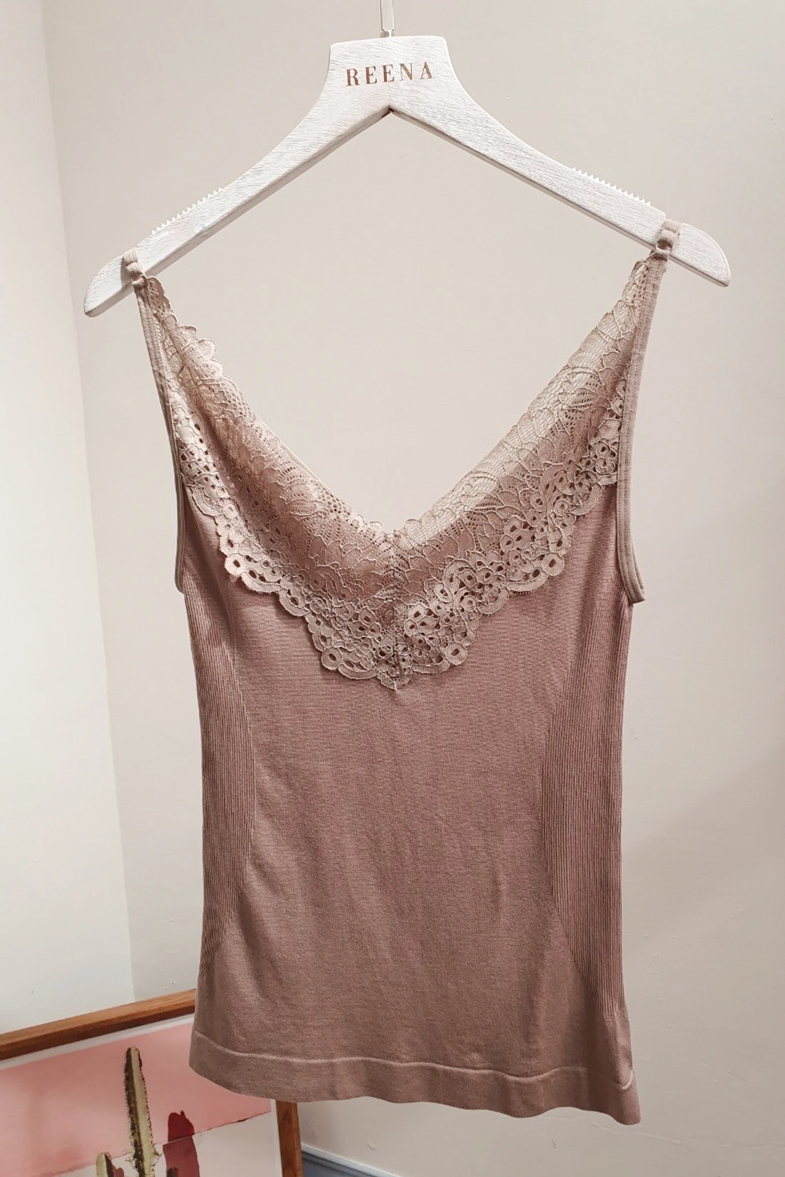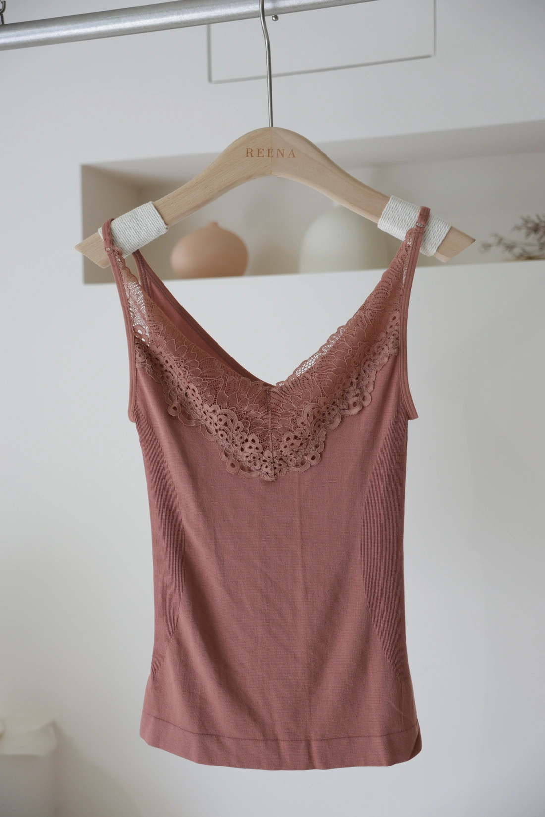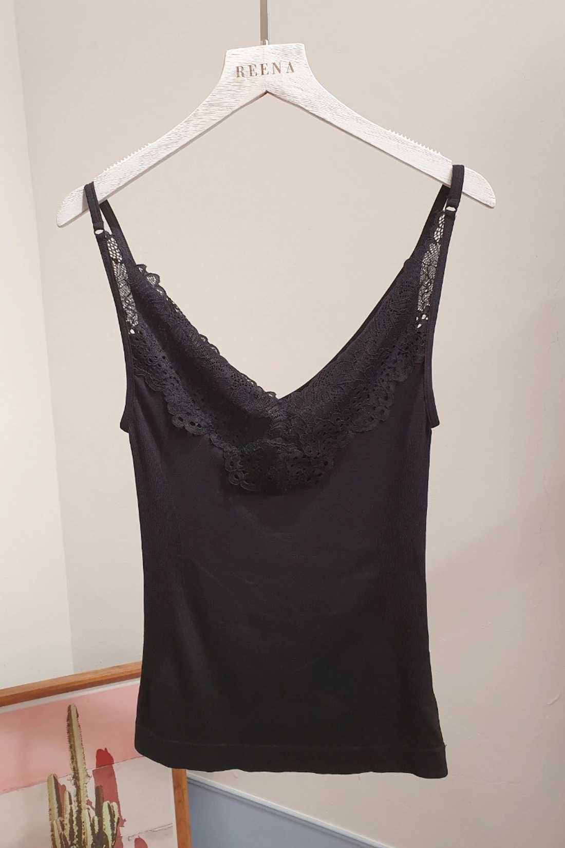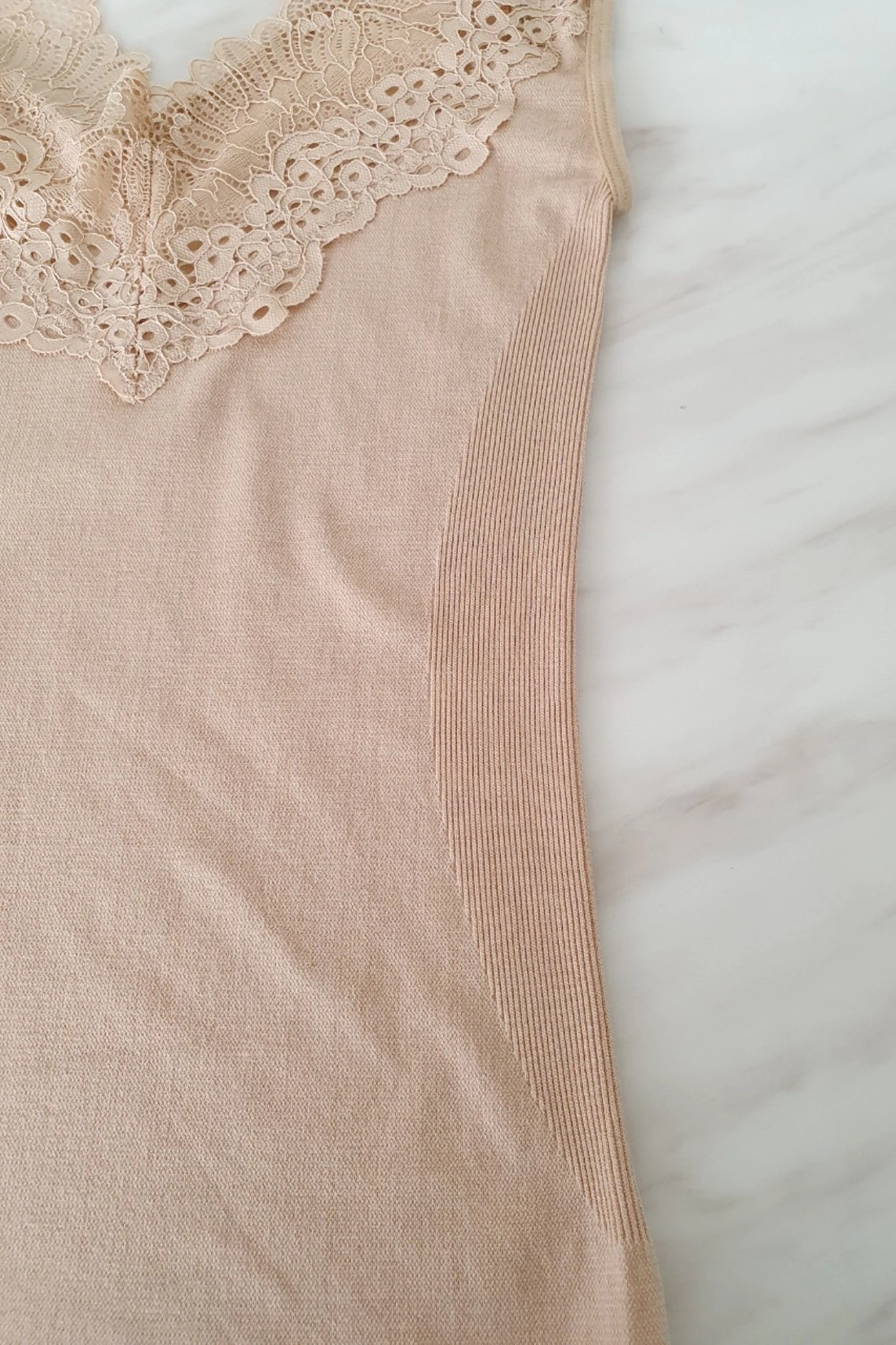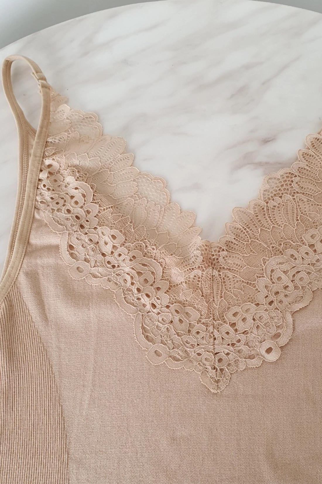 細肩帶/彈性佳/正面領口蕾絲設計/前後v領設計/腰兩側直條紋設計