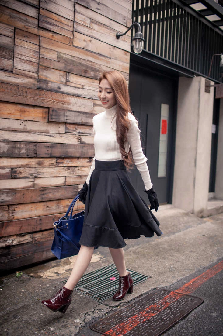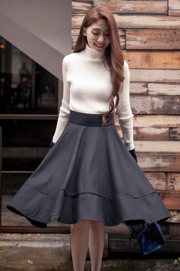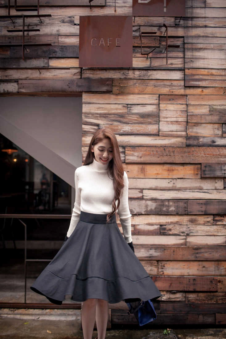 TIP:100%喀什米爾羊毛/高腰及膝裙