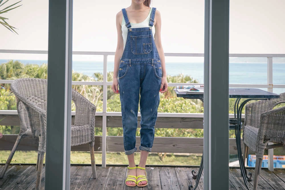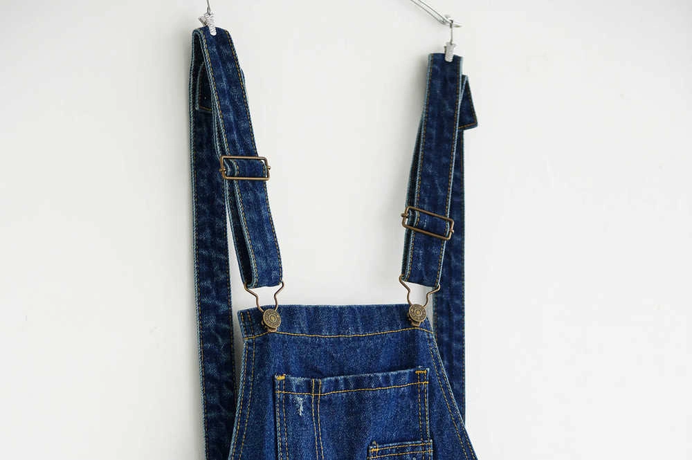 尺寸(cm):S 全長111(不含吊帶) 褲全長86 腰寬38 臀寬44 褲檔21 大腿圍20 小腿圍15 褲管12 吊帶長79(不可拆可調)