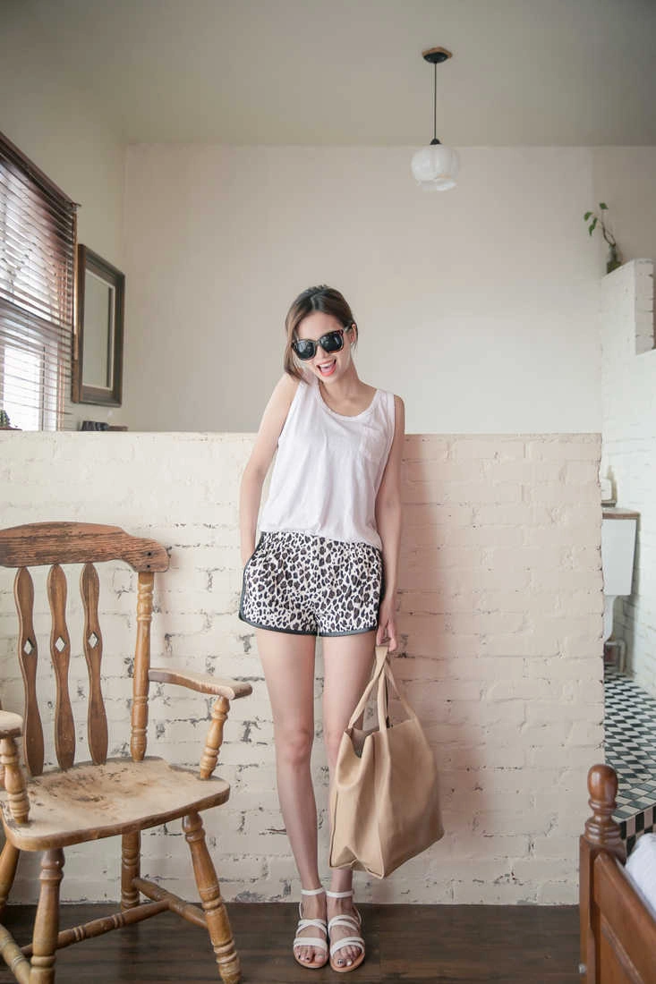 正韓製 沙發爵士 輕鬆樂活滾邊設計短褲/潑漆/豹紋