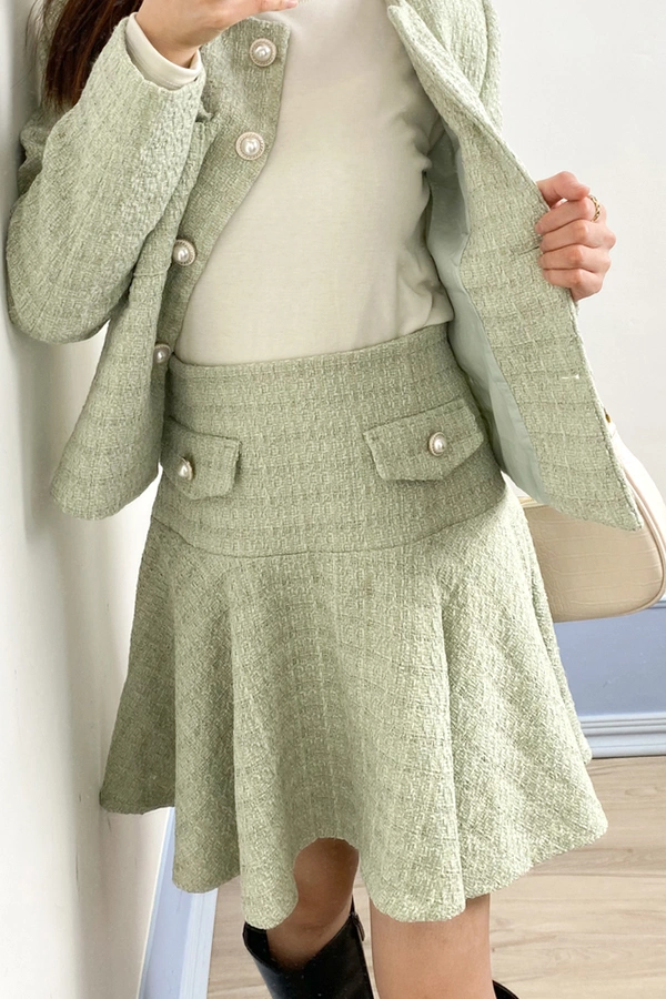 左側有拉鍊/兩側有假口袋裝飾/傘襬裙襬