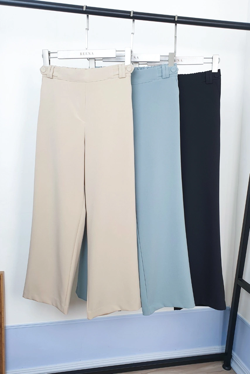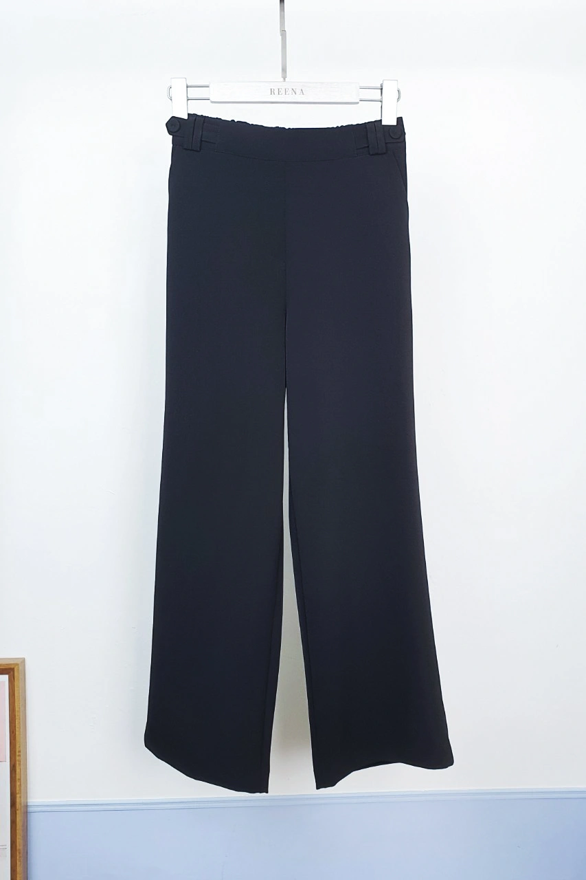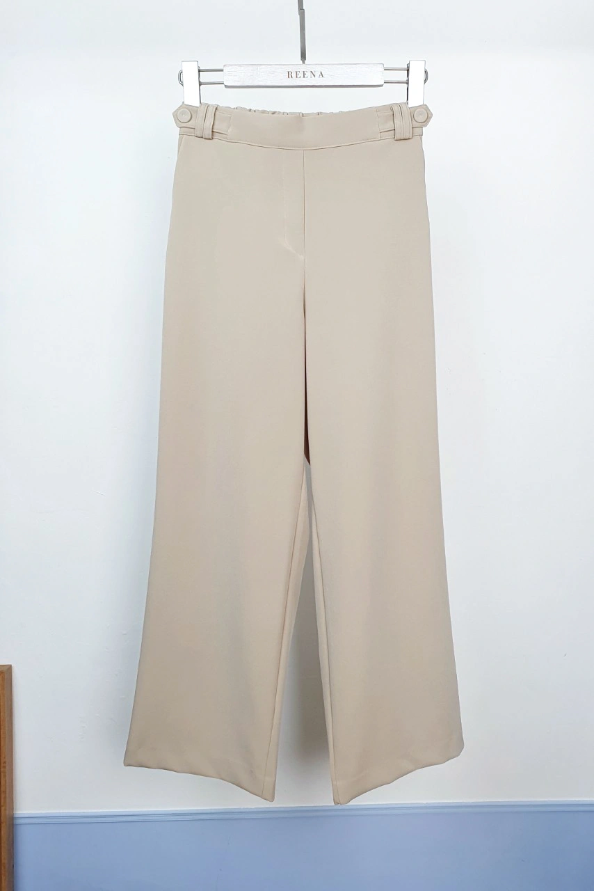後鬆緊腰設計/兩側有口袋/腰兩側釦子裝飾