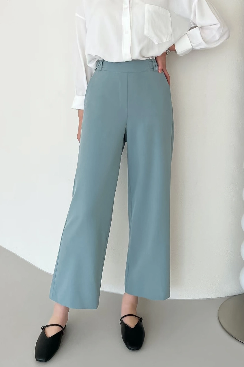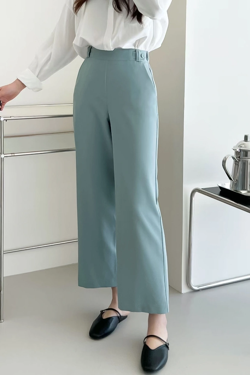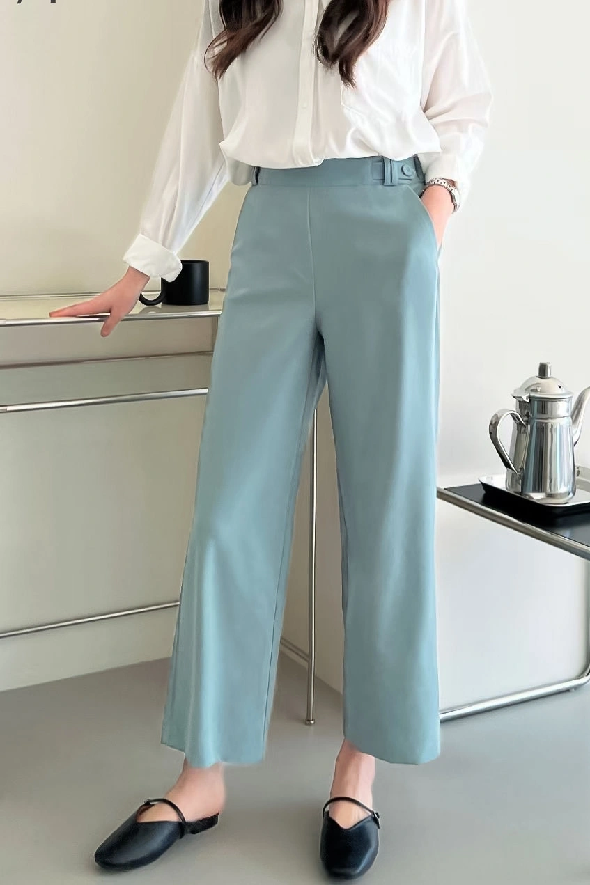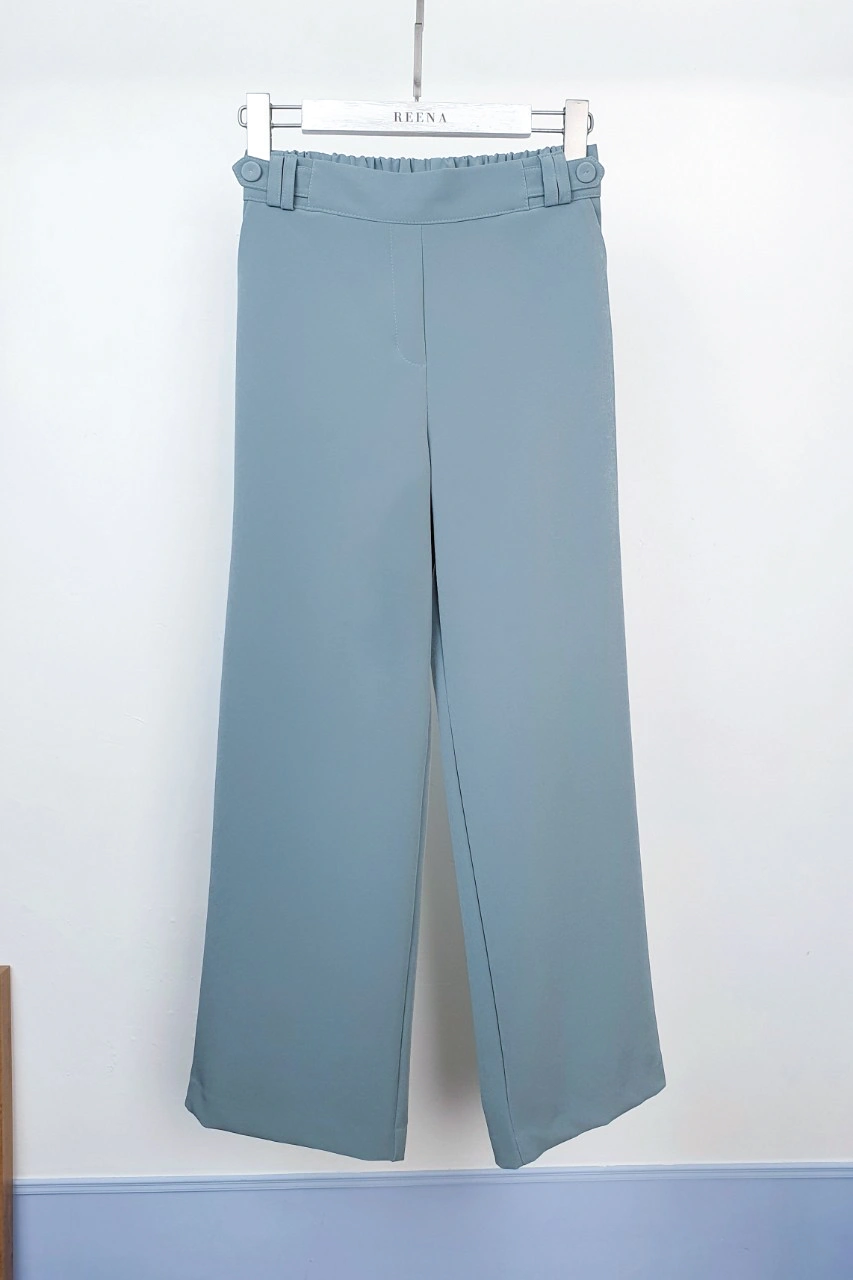 後鬆緊腰設計/兩側有口袋/腰兩側釦子裝飾
