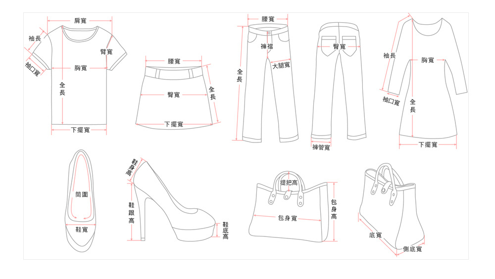 尺寸(cm)全長腰寬臀寬褲檔大腿寬小腿寬褲口
