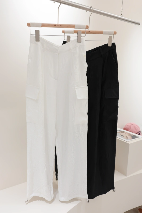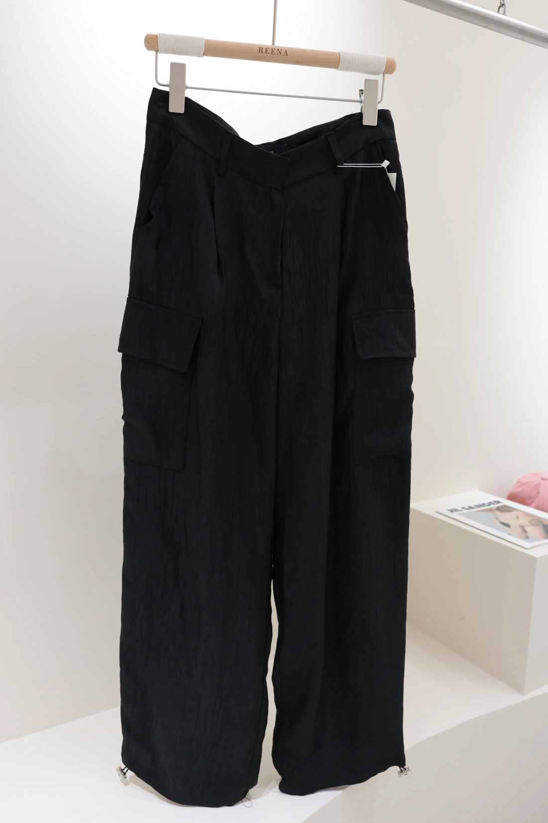 高級天絲材質/大腿雙口袋造型設計/抓皺感細節/褲口縮口設計(可調式)