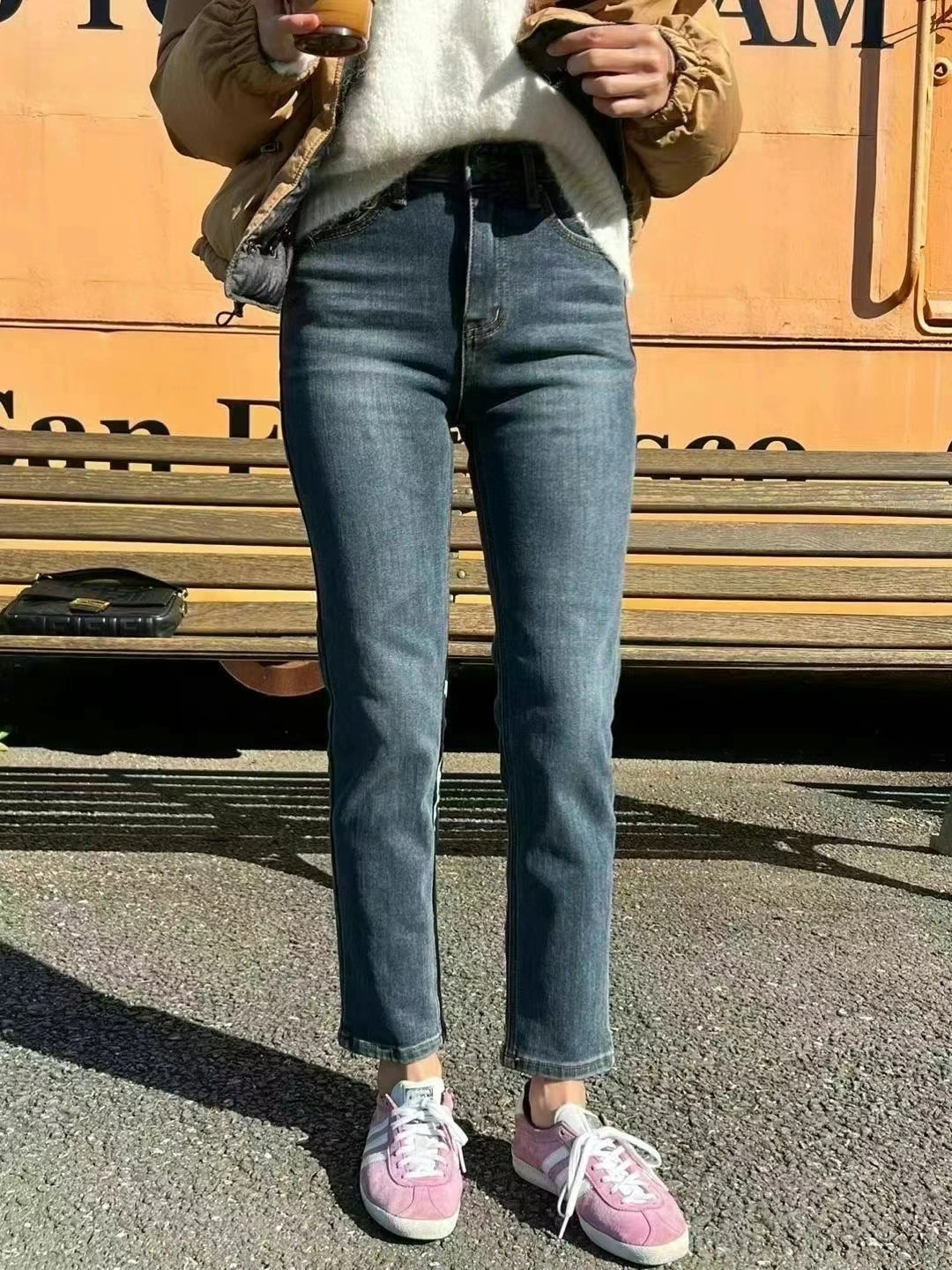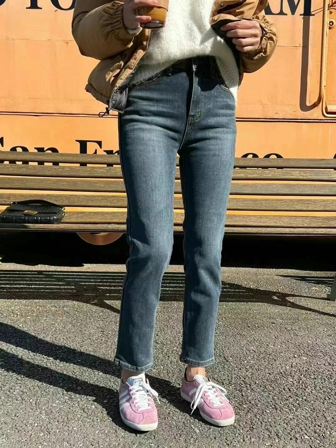 無後鬆緊/褲身有復古刷色設計超好看!!/內刷毛材質更保暖