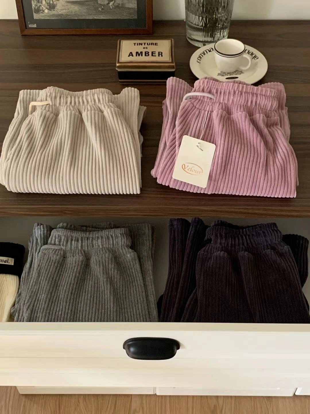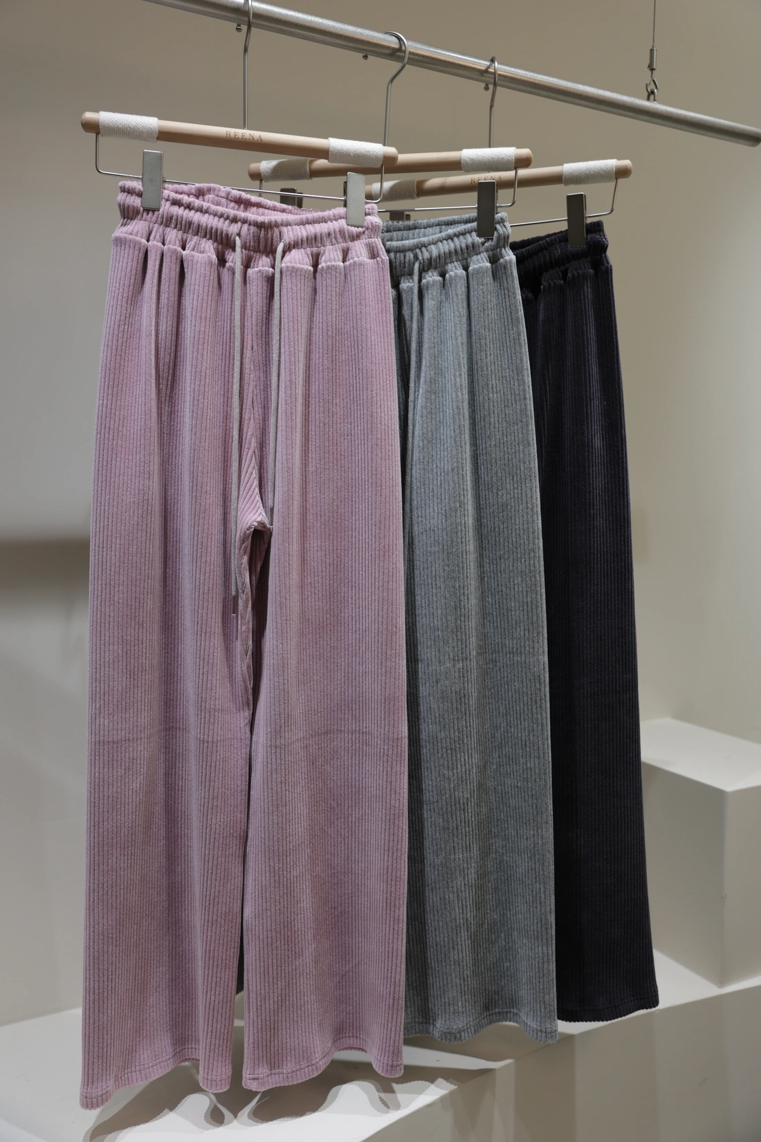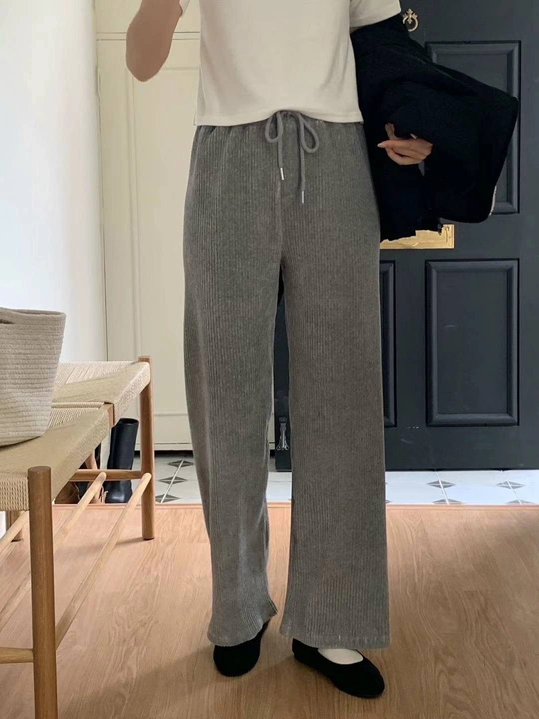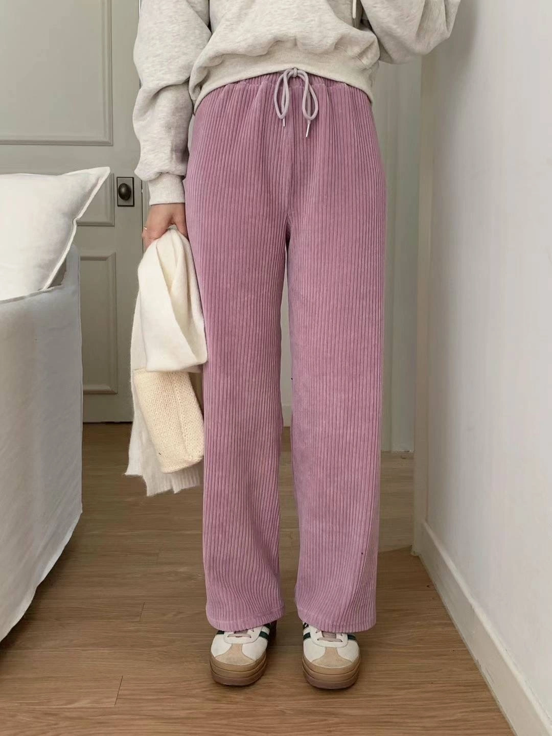 正韓製 百搭休閒羅紋絨面寬褲