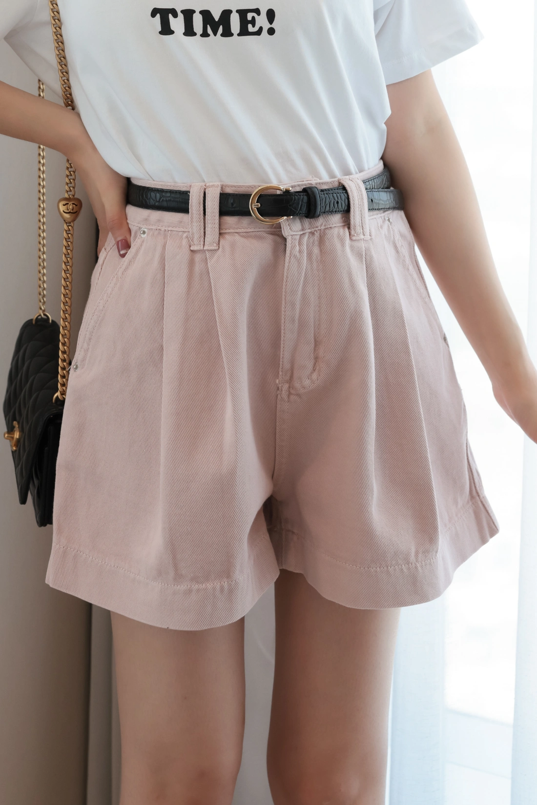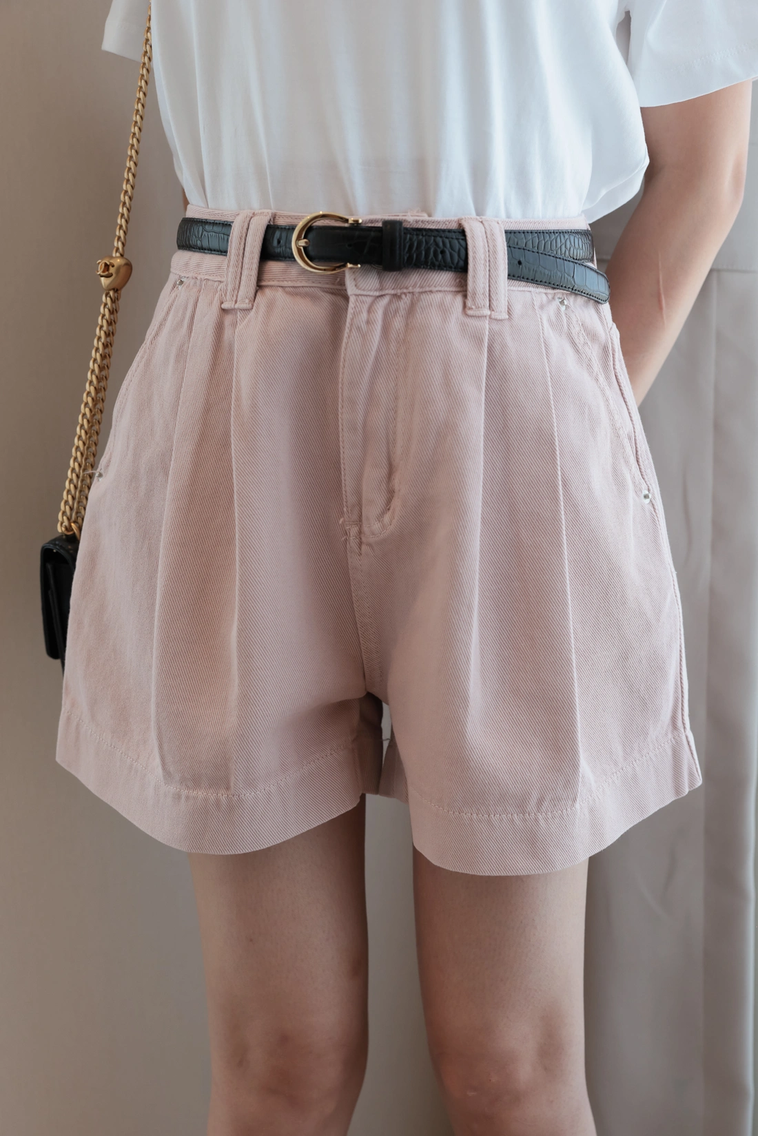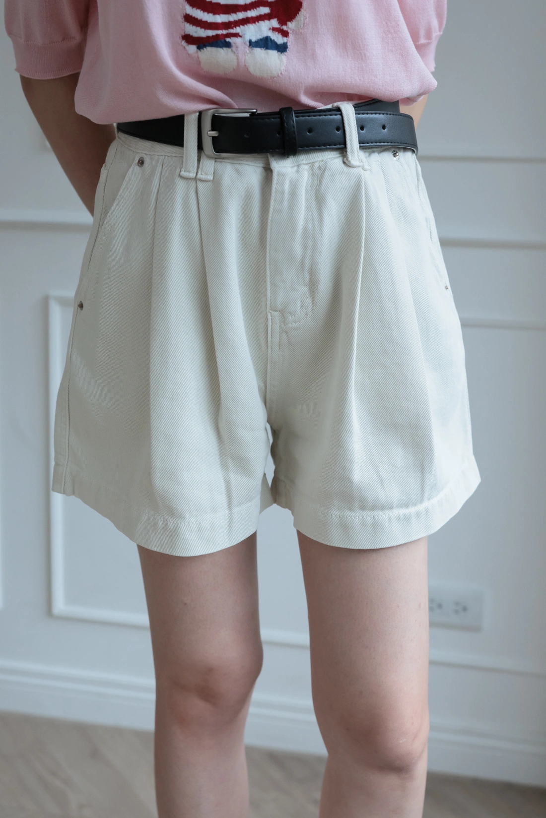 正韓製 前打摺A字牛仔短褲
