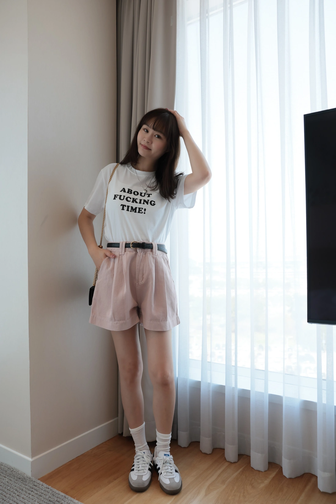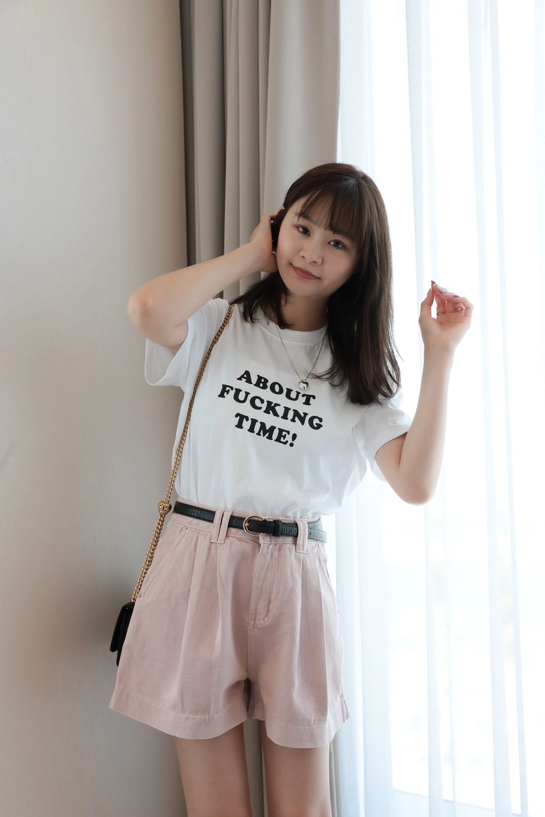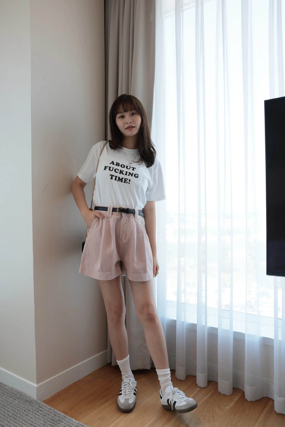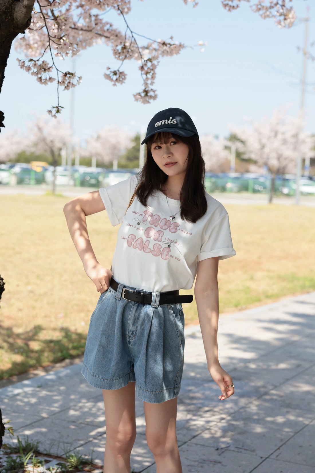 正韓製 前打摺A字牛仔短褲