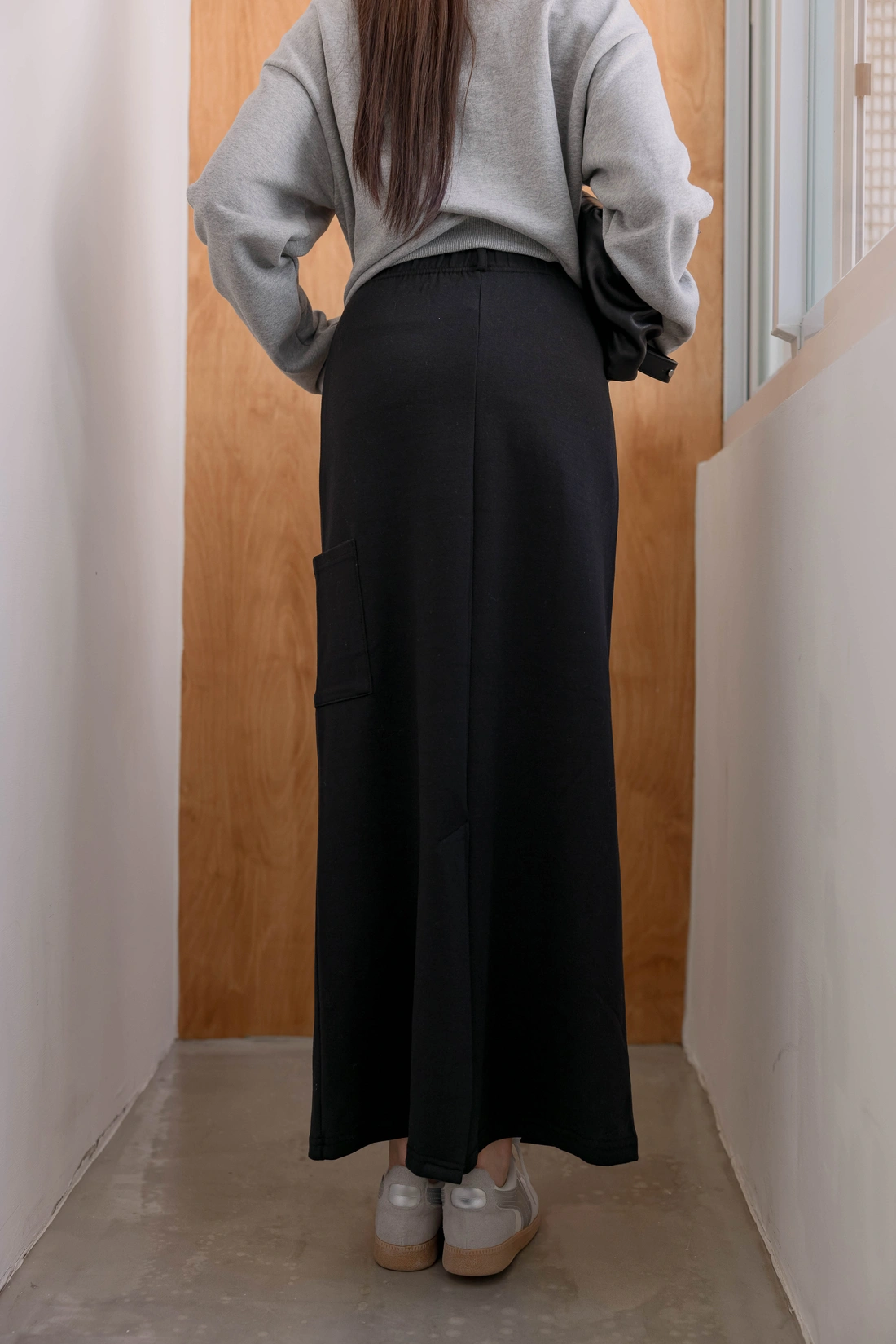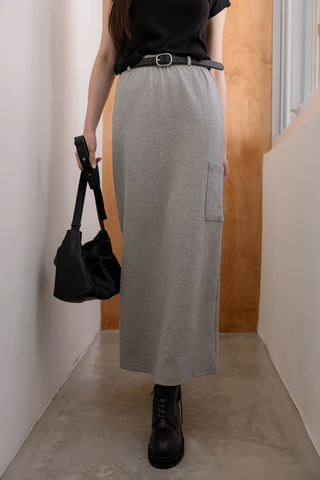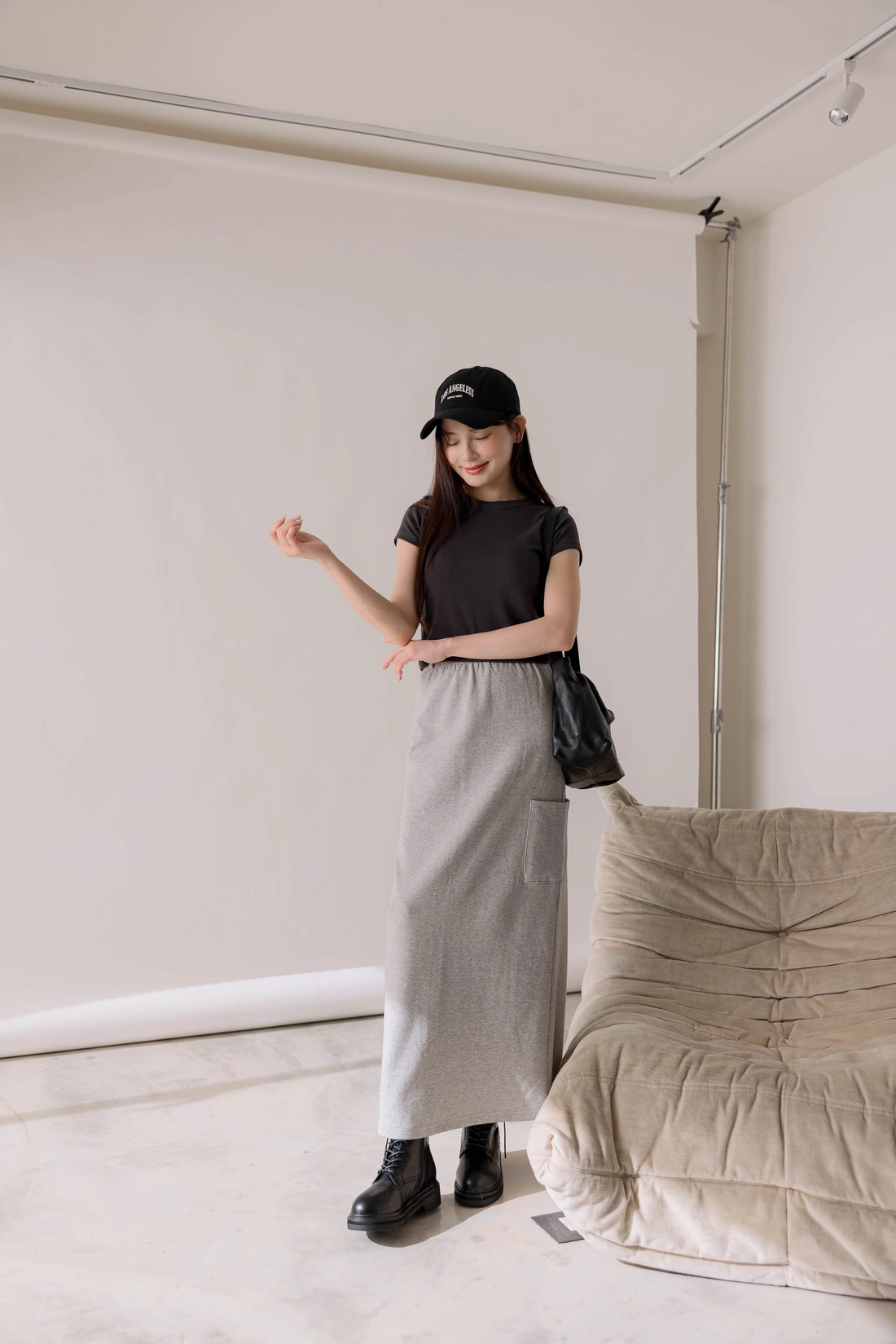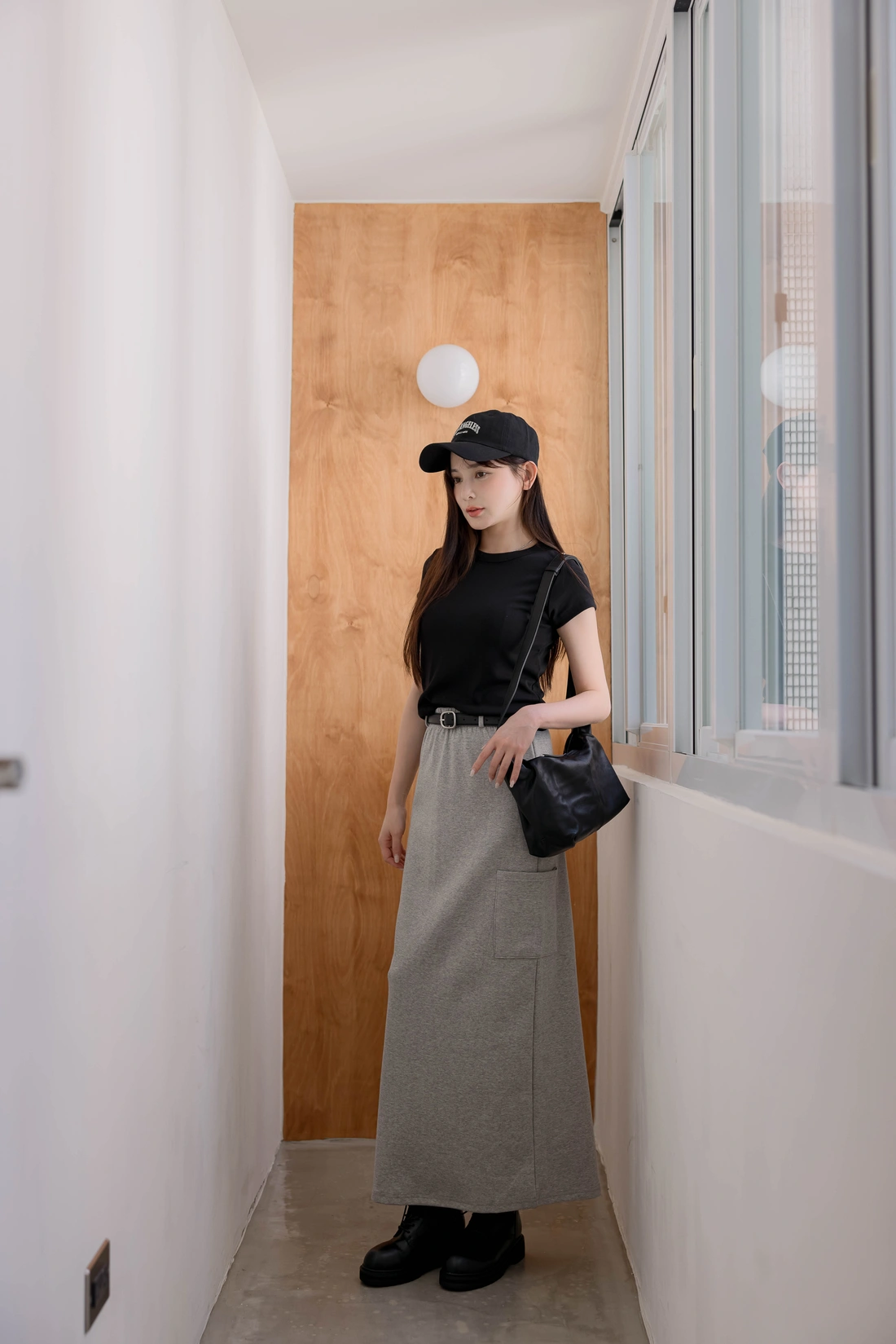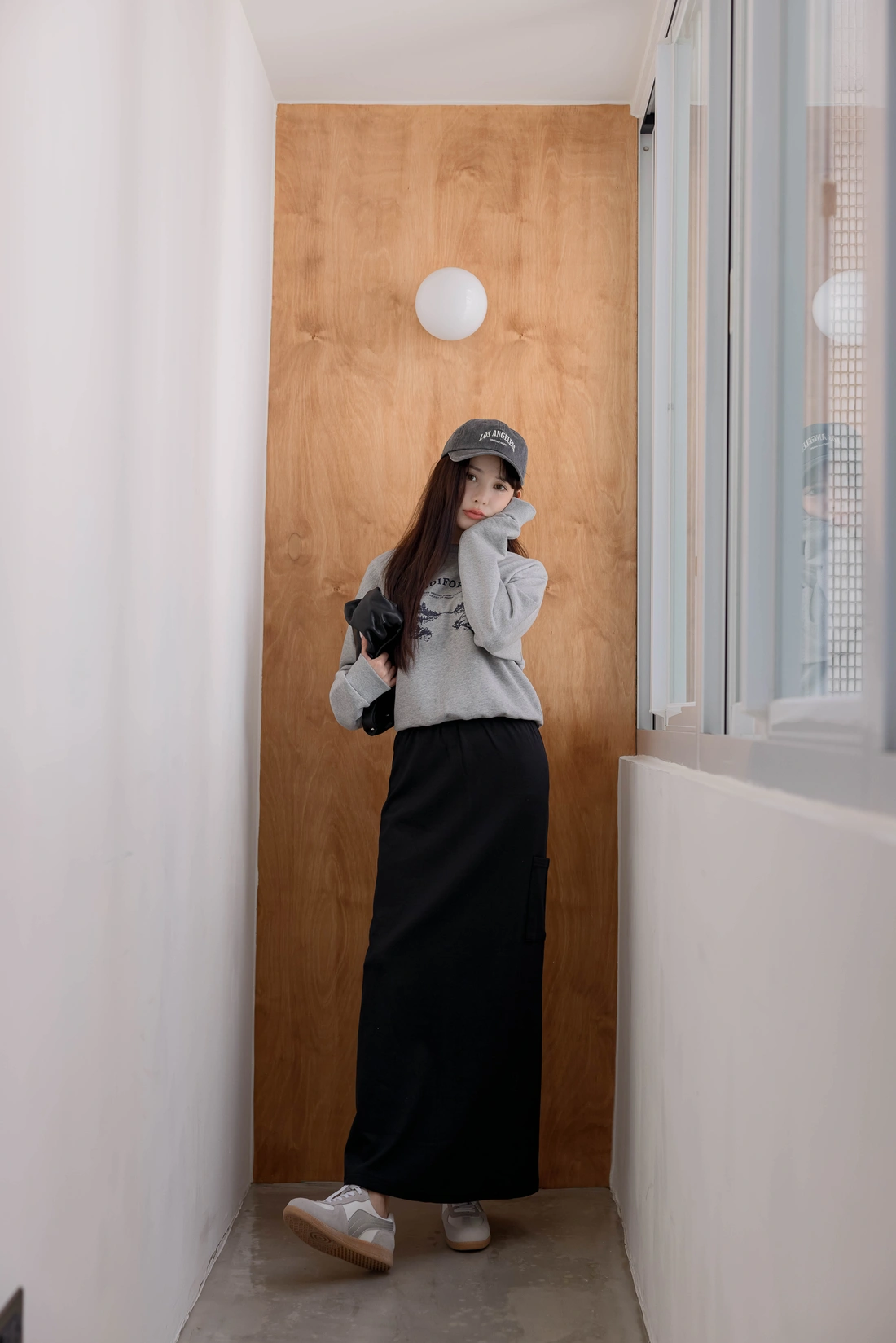 舒適棉質材質/鬆緊腰設計長裙/單口袋設計