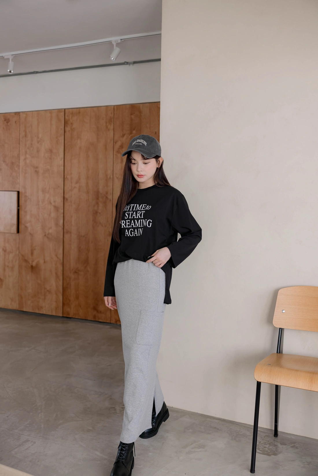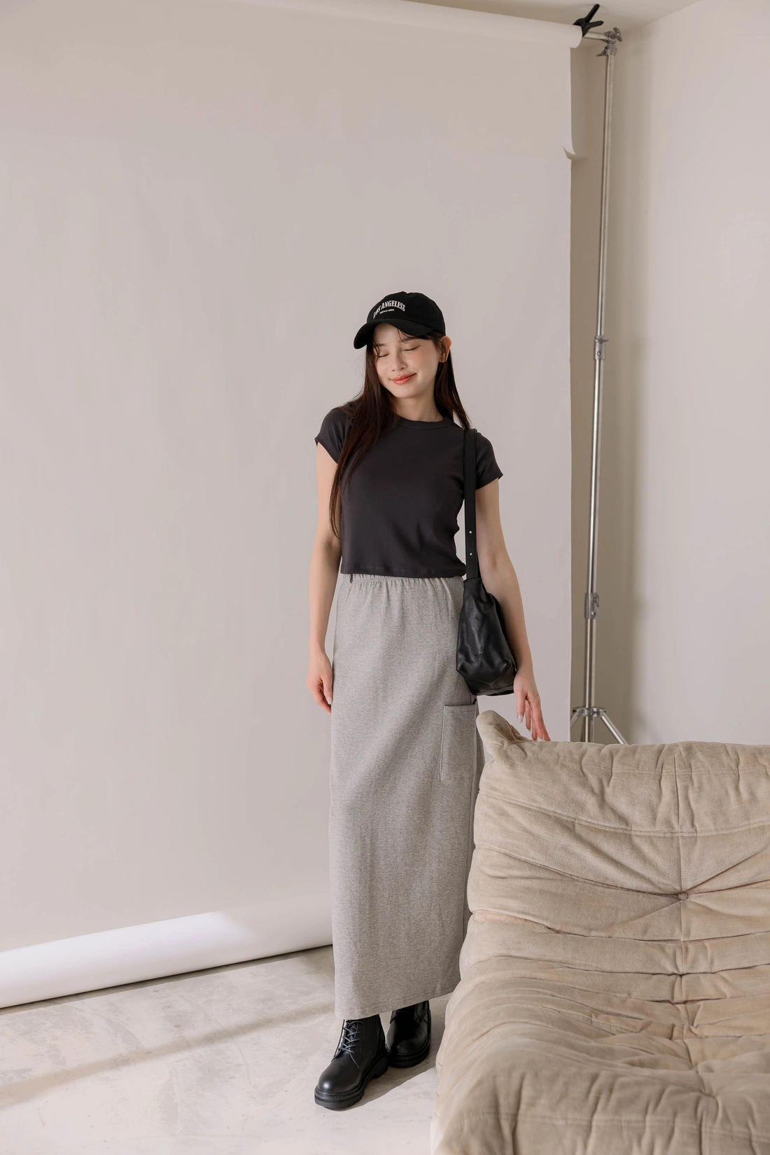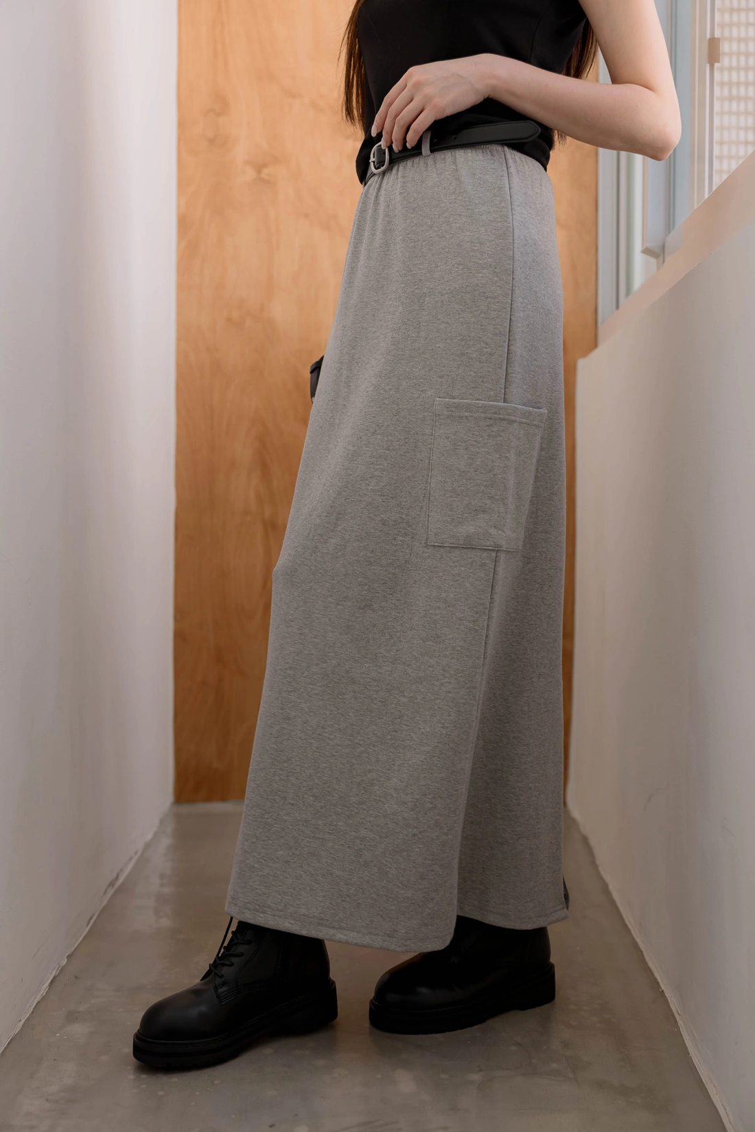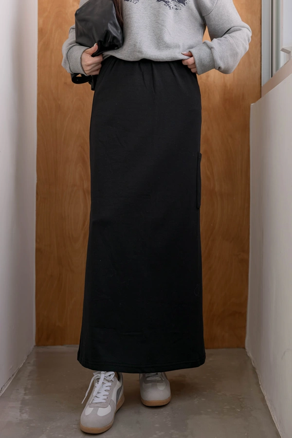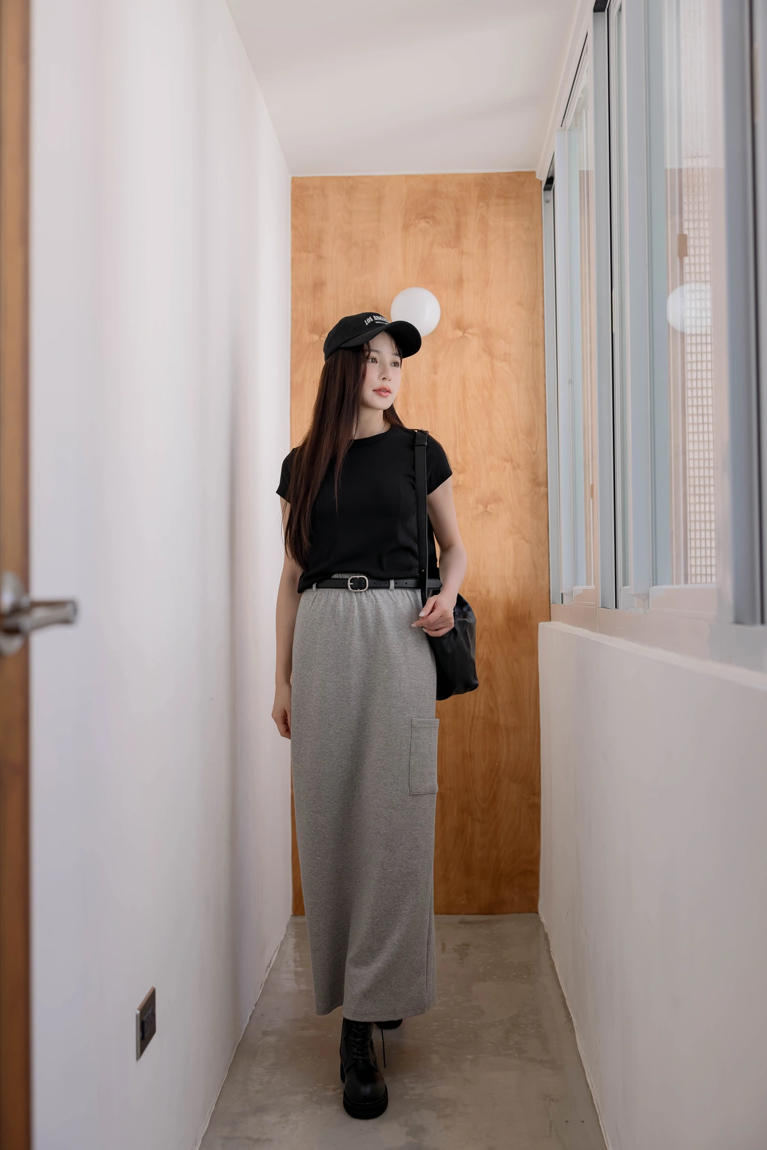 舒適棉質材質/鬆緊腰設計長裙/單口袋設計