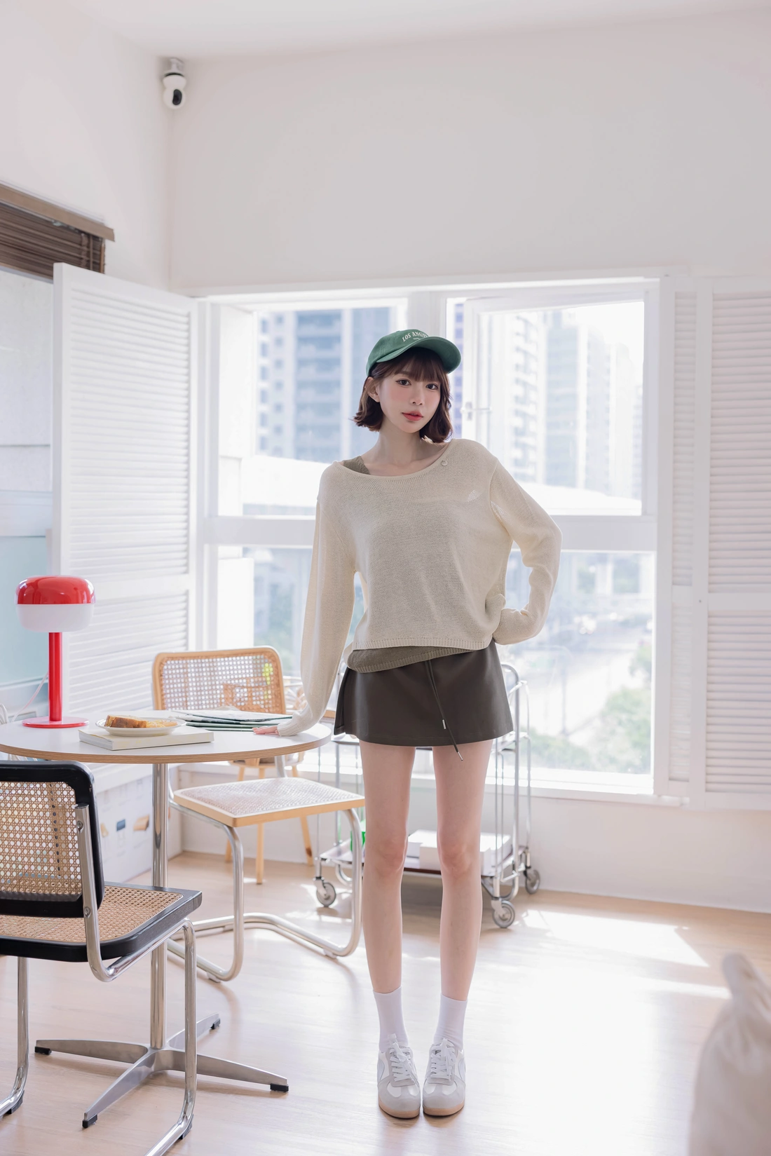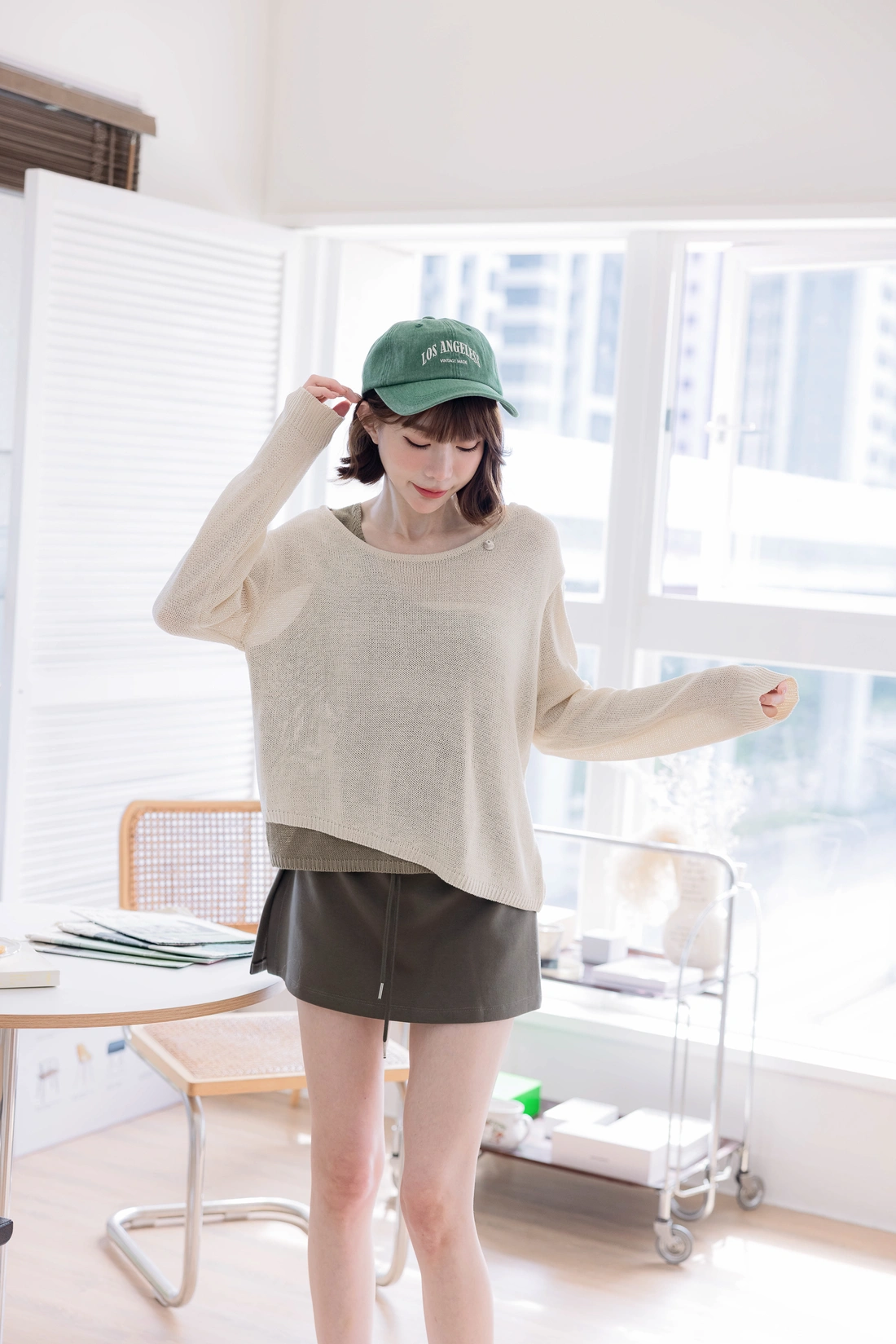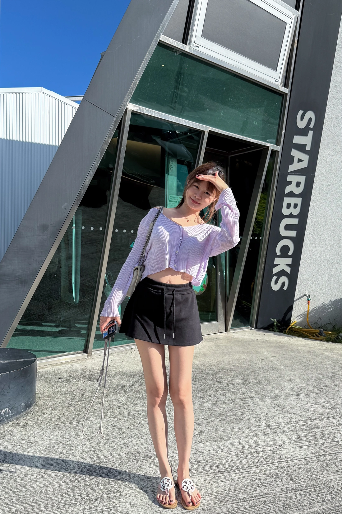 鬆緊腰設計短褲裙/舒適棉質材質/小性感右開衩設計