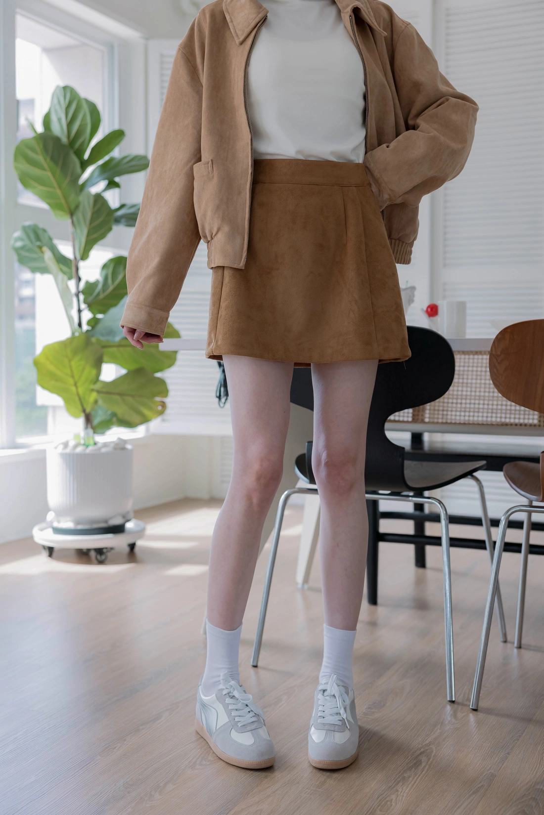 後鬆緊腰設計短裙/側拉鍊設計/A字版型更顯腿瘦