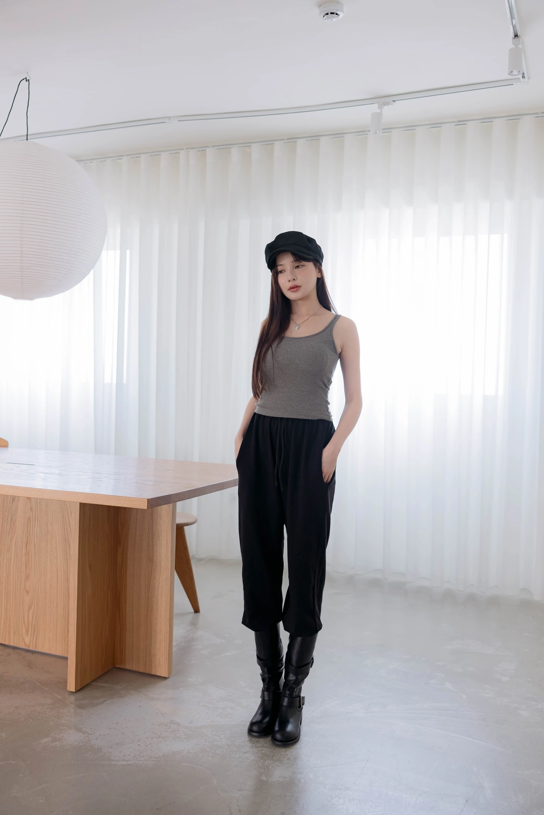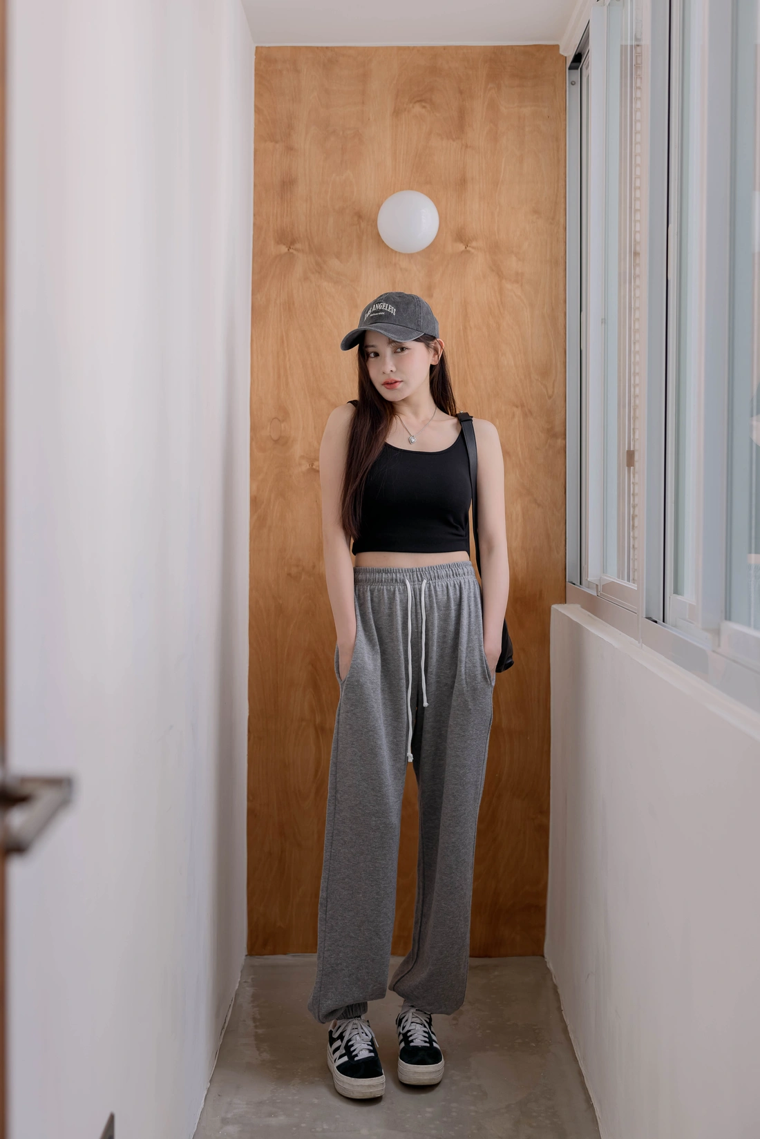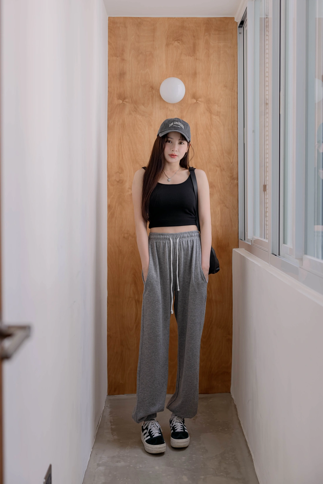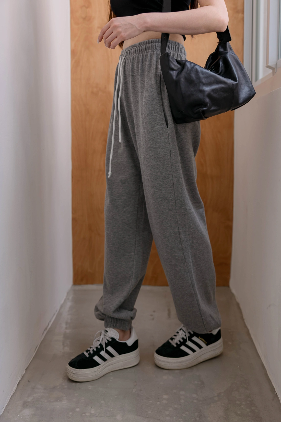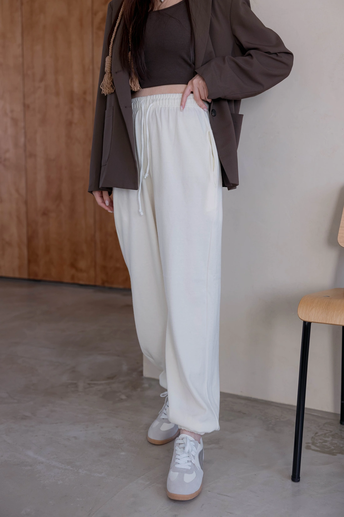 雙口袋設計長褲/褲口縮口細節設計/冬天外出居家運動都很適合穿