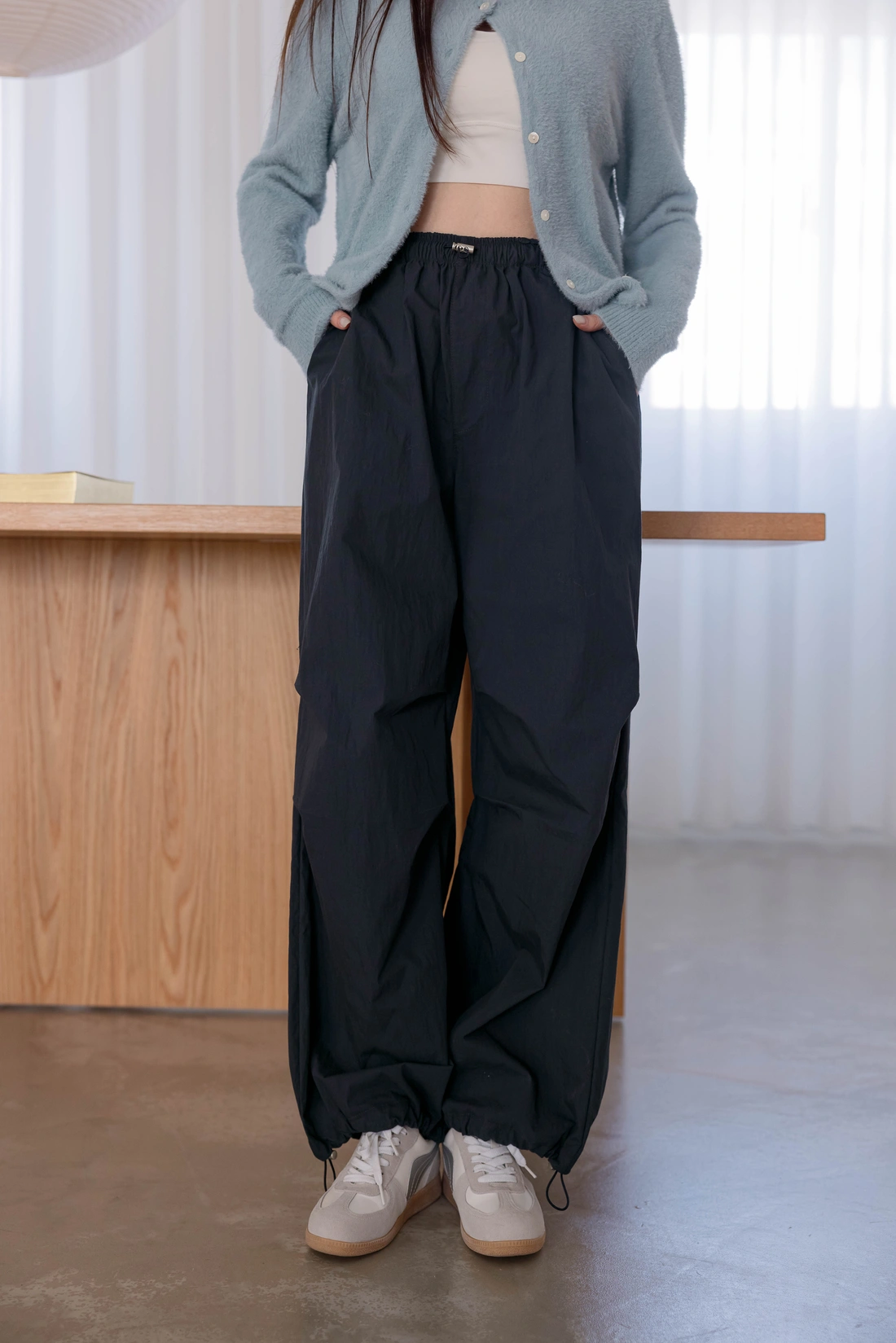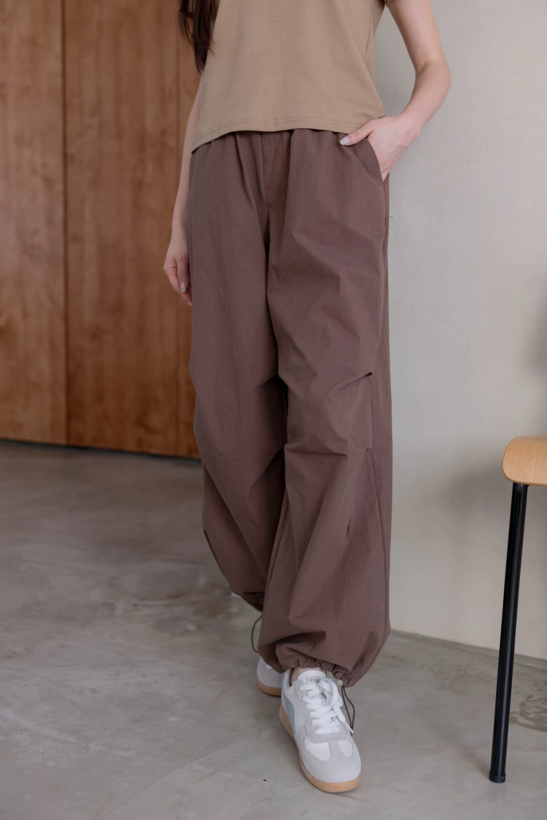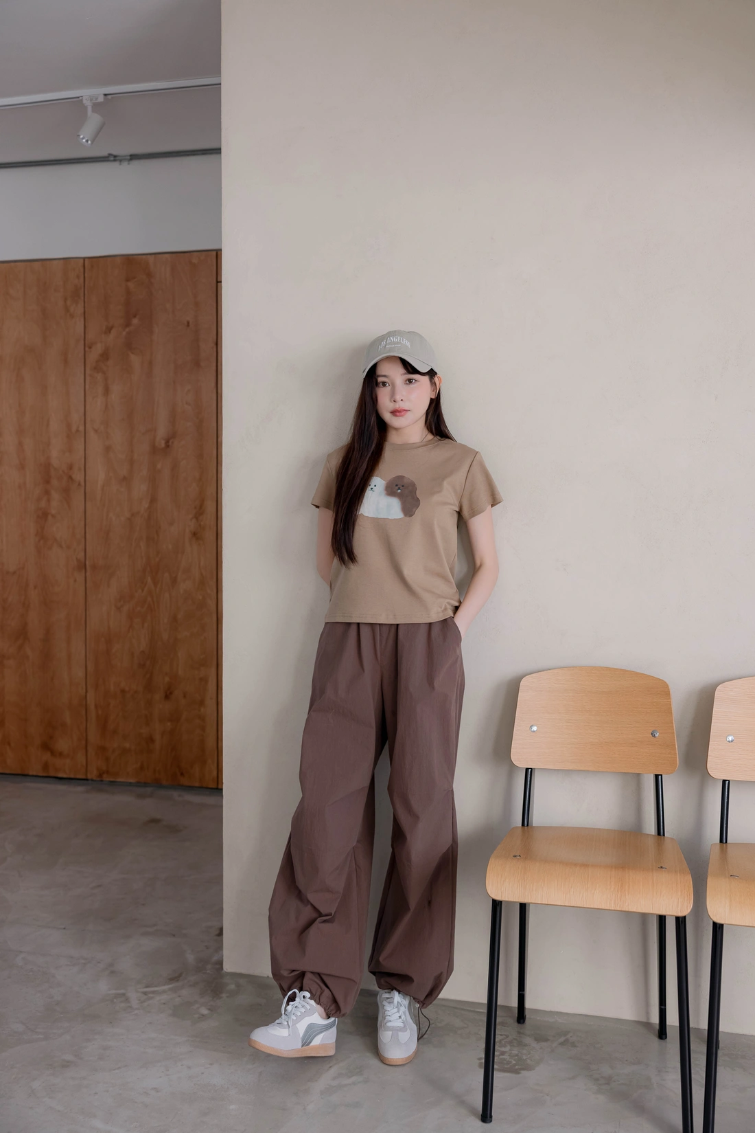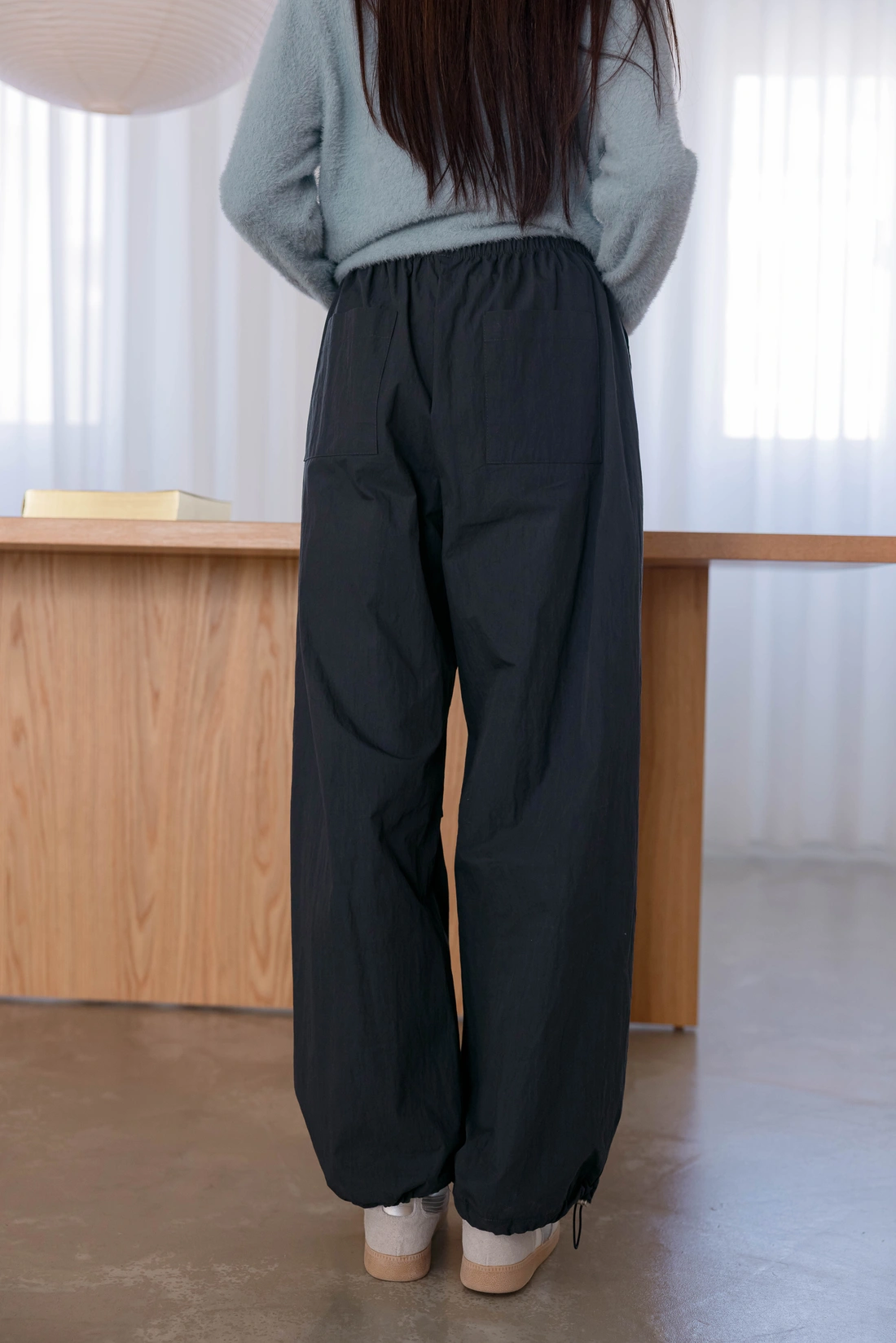 拉環鬆緊腰設計工裝褲/前後雙口袋設計/褲口做拉環設計