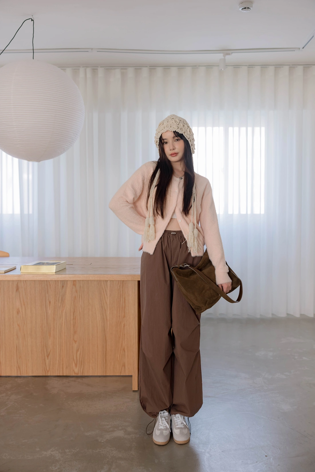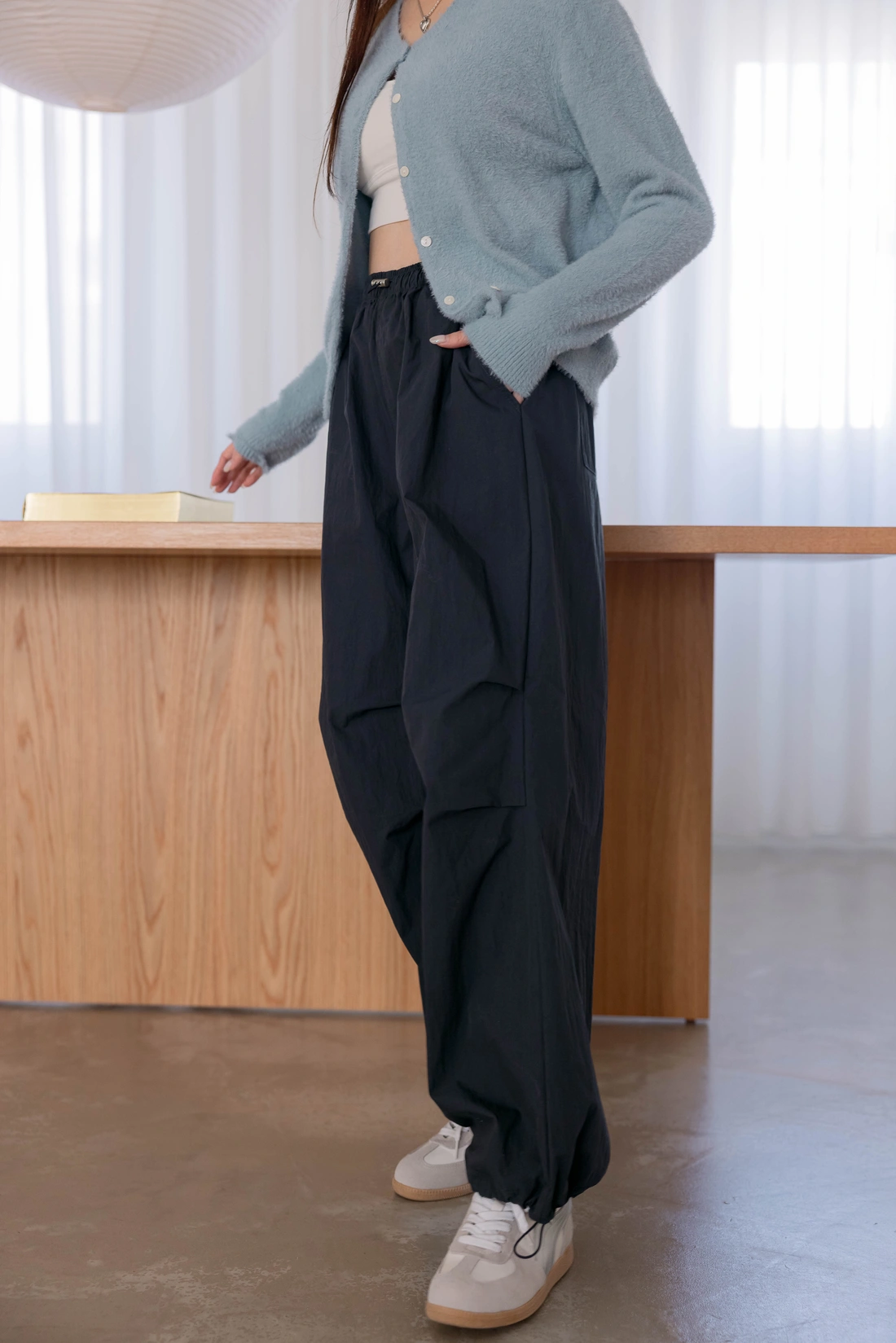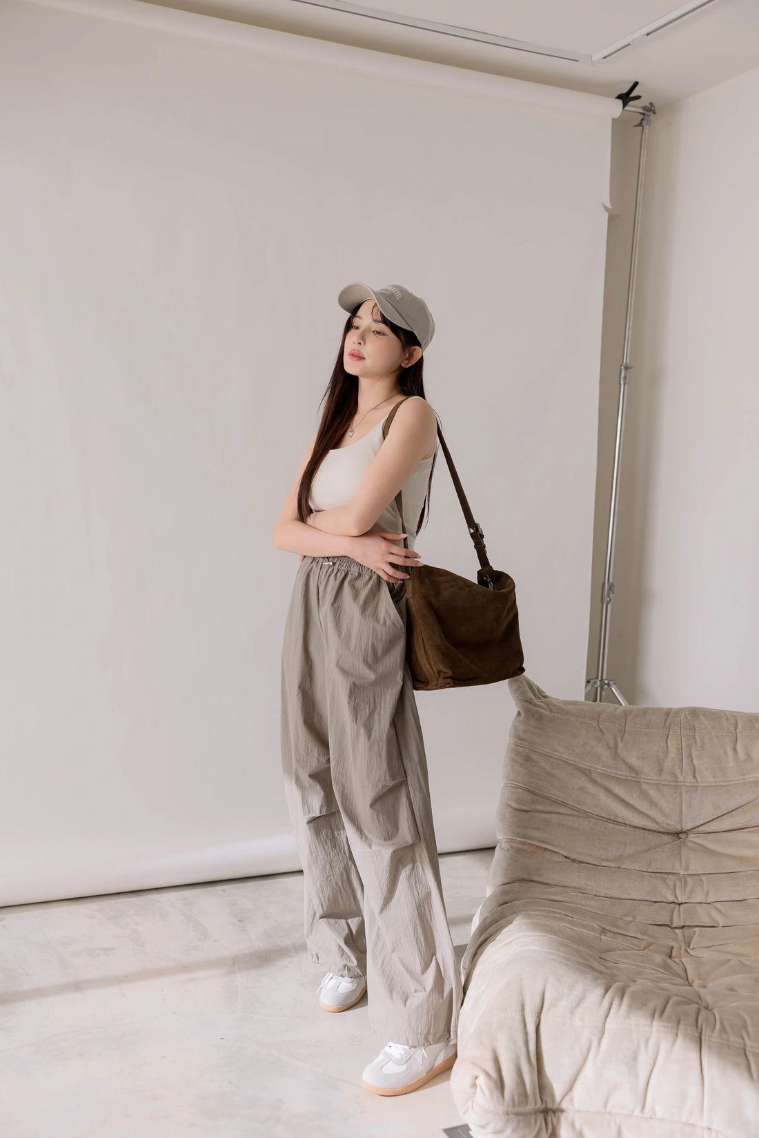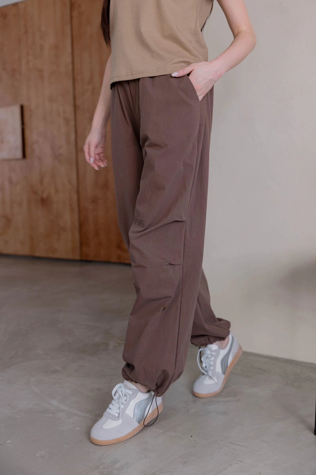 拉環鬆緊腰設計工裝褲/前後雙口袋設計/褲口做拉環設計