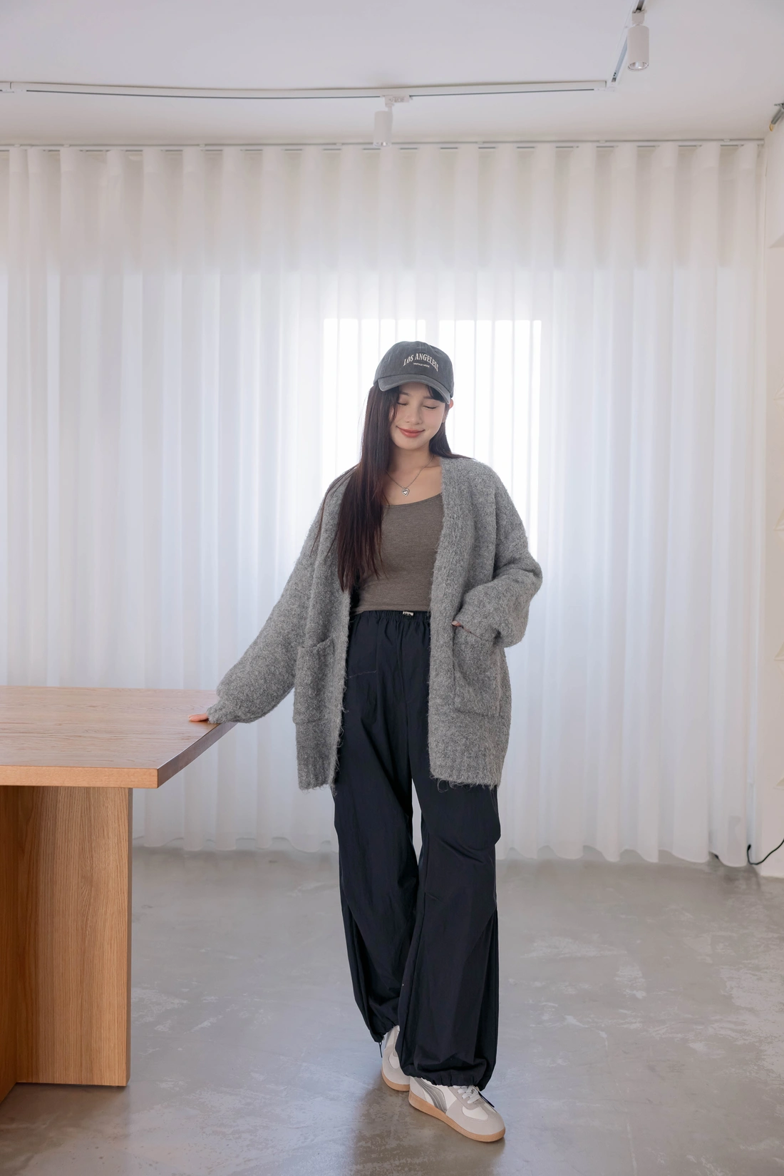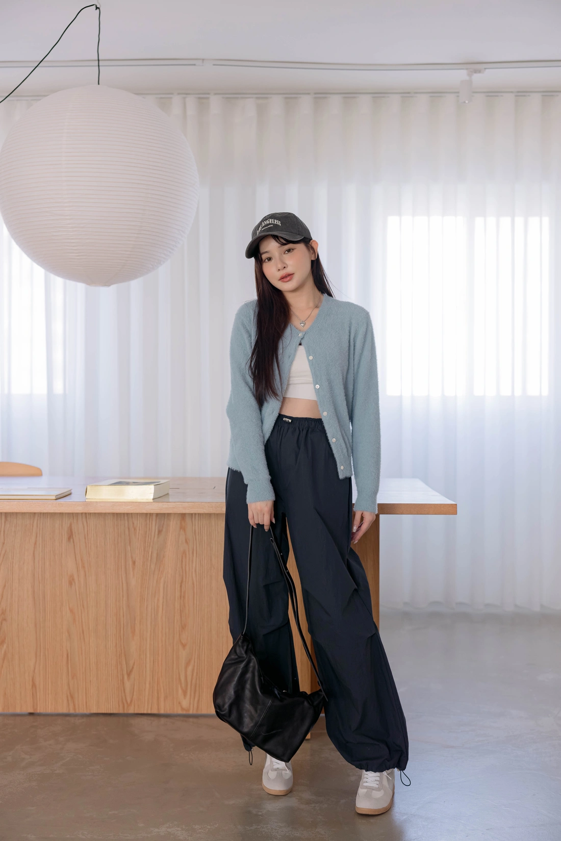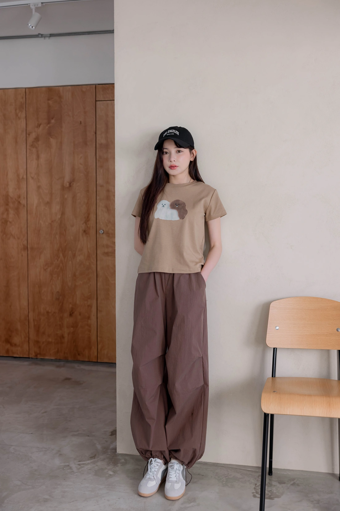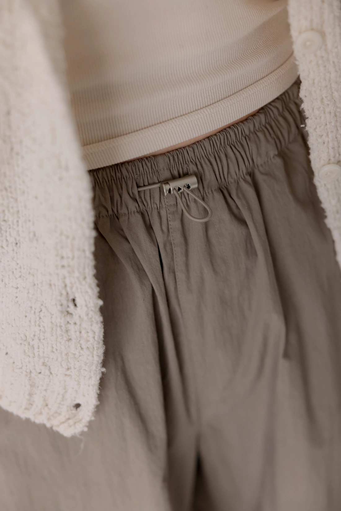 拉環鬆緊腰設計工裝褲/前後雙口袋設計/褲口做拉環設計