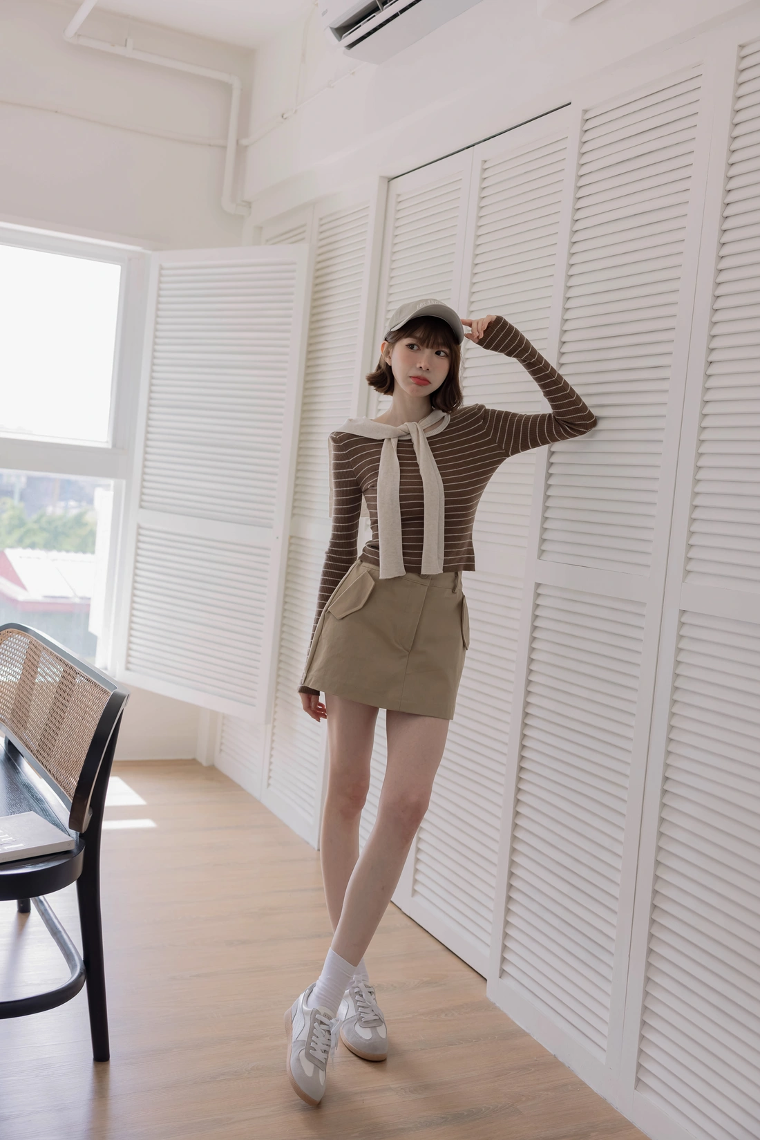 • 正韓製 海軍風條紋假兩件針織SET