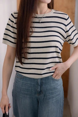 • 正韓製 簡約條紋短袖針織衫