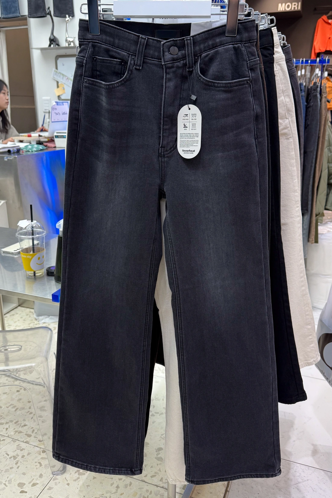 正韓製 好穿到想包色!內磨毛後腰鬆緊牛仔寬褲