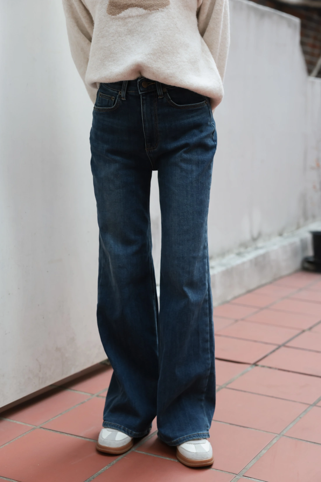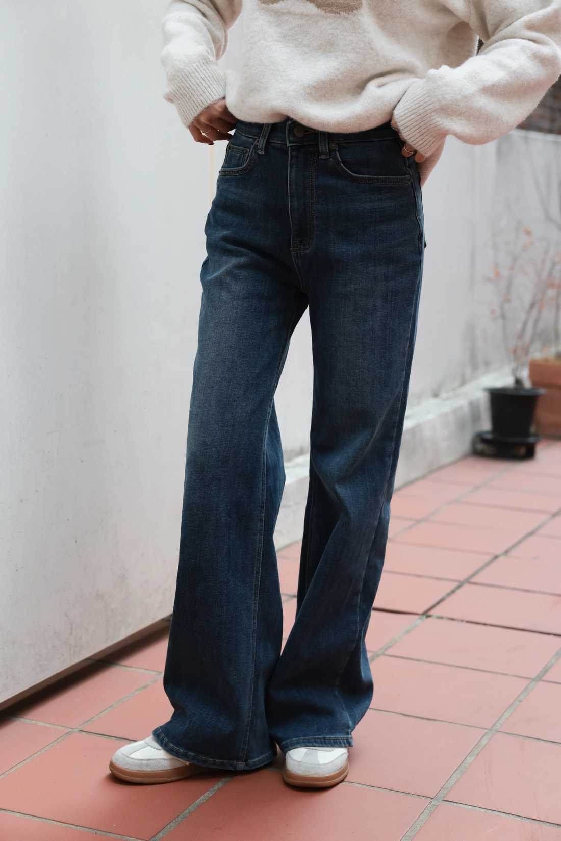 正韓製 好穿到想包色!內磨毛後腰鬆緊牛仔寬褲