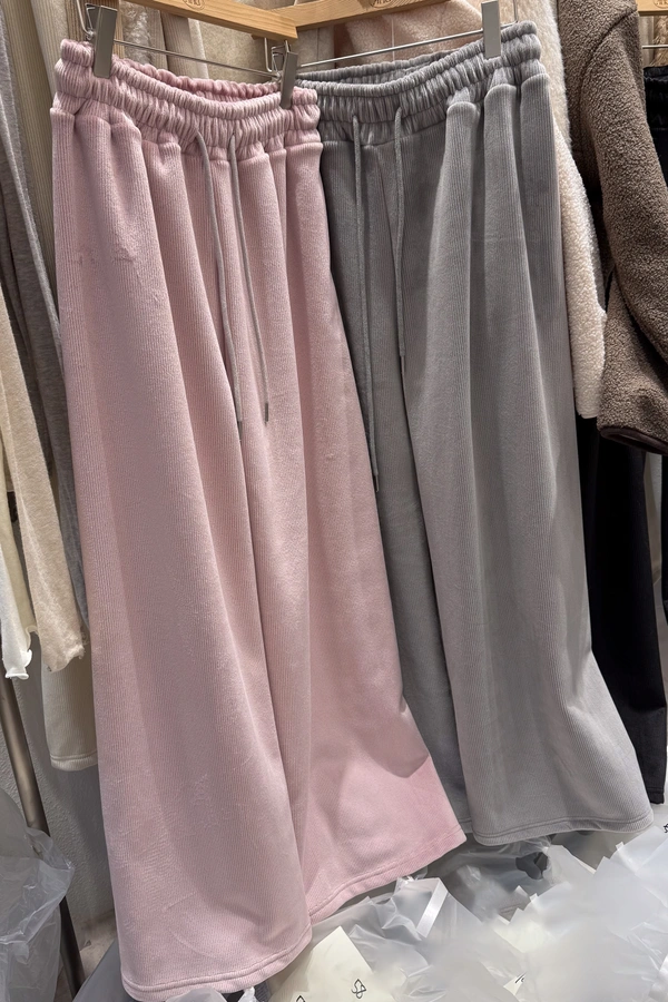 直坑條設計寬褲/絨布親膚好摸/冬天包色款
