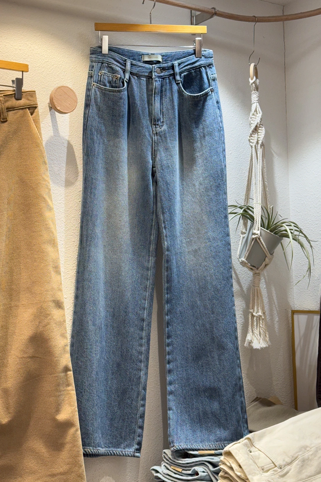 內磨毛材質設計/獨特刷色設計/率性顯瘦牛仔寬褲