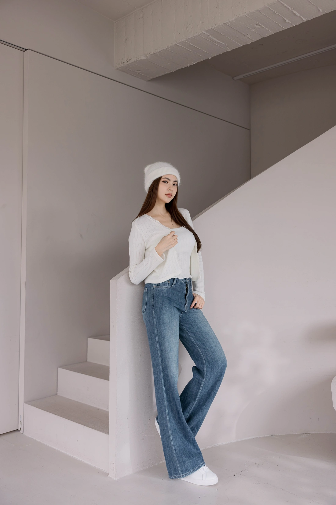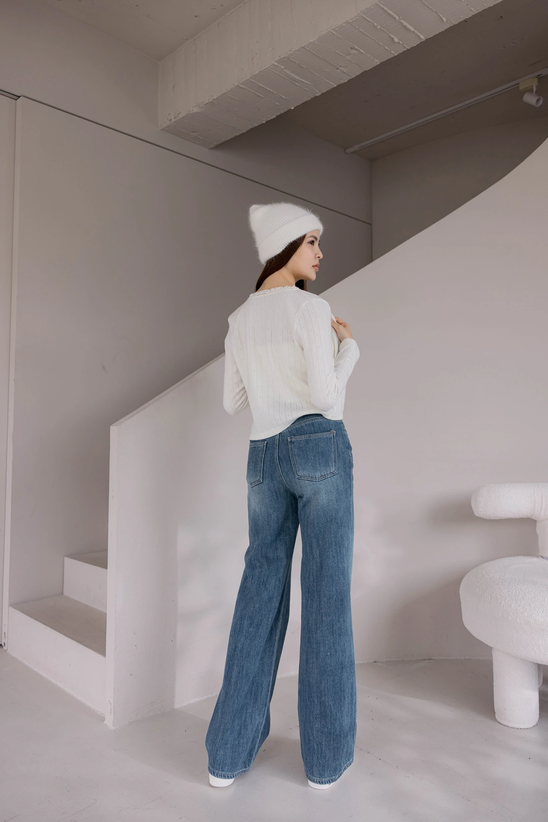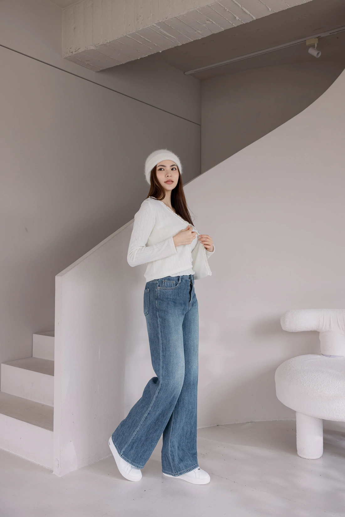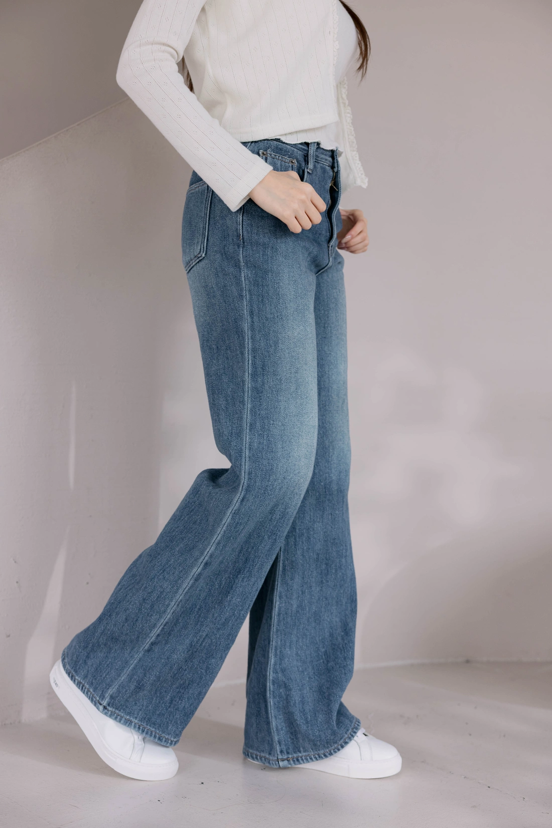 正韓製 獨特刷色長腿牛仔落地寬褲