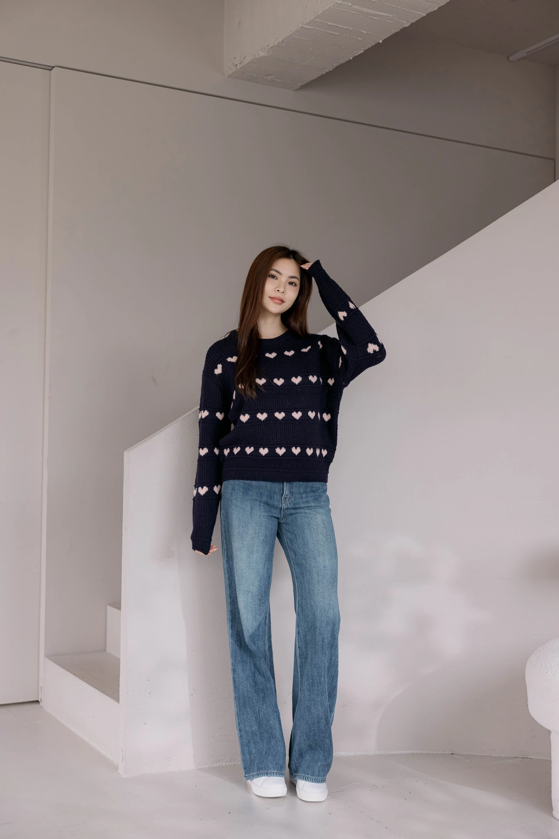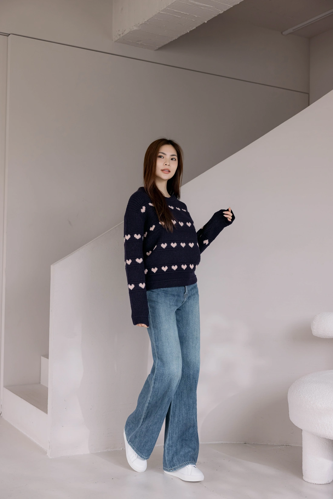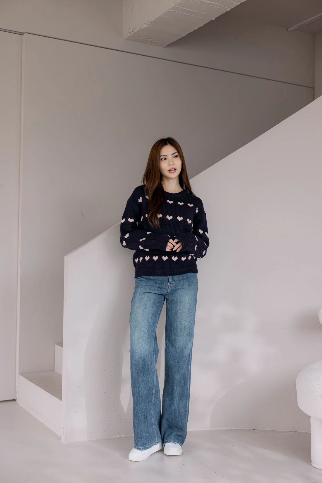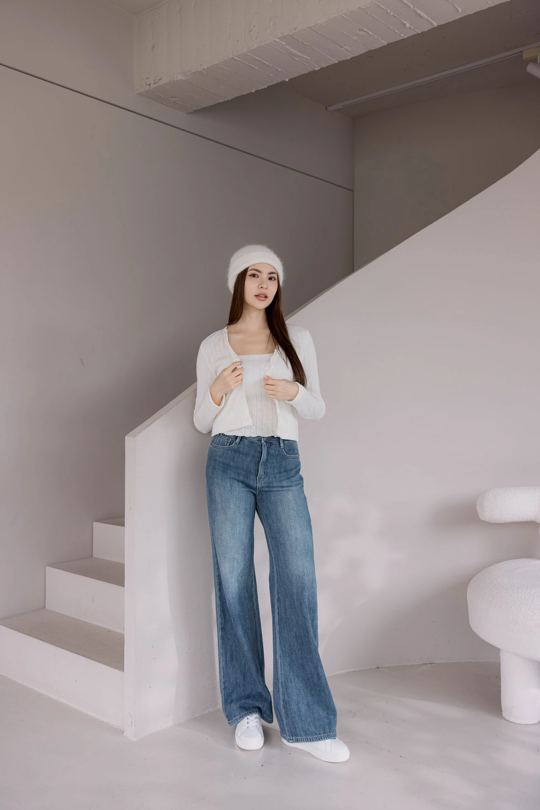 正韓製 獨特刷色長腿牛仔落地寬褲