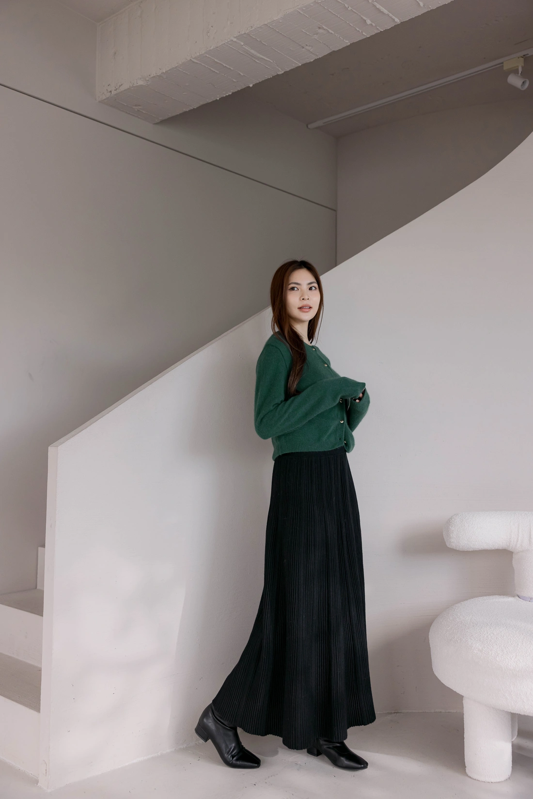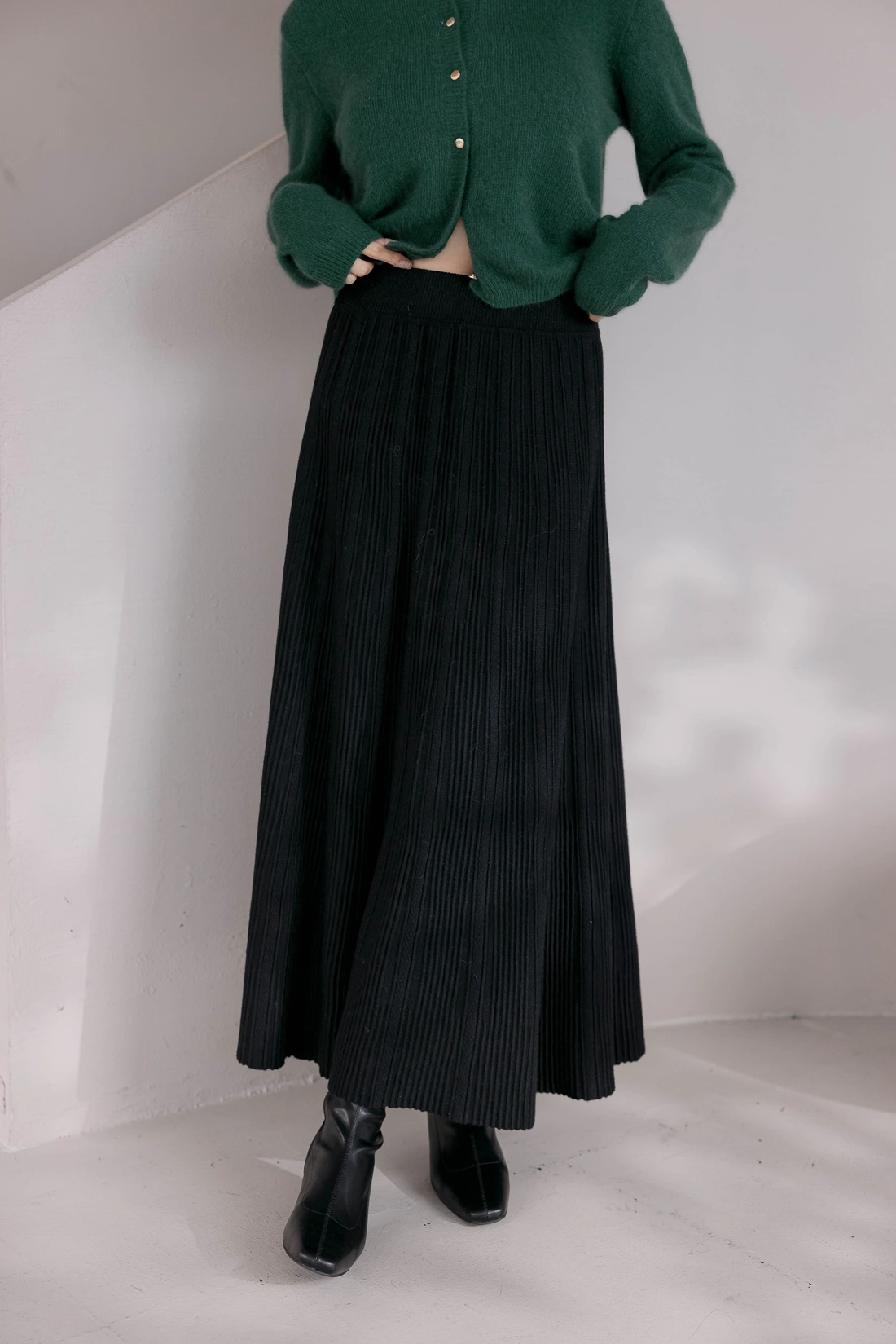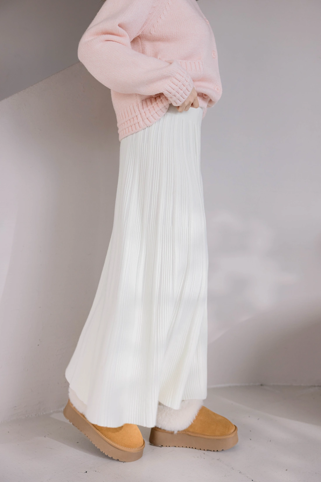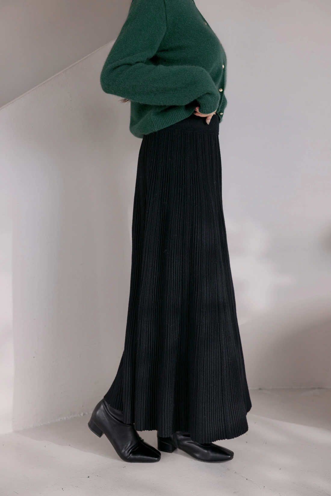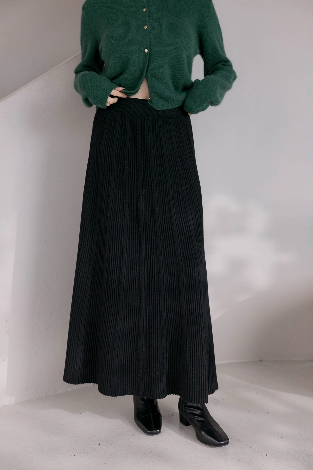 鬆緊腰設計/百褶設計長裙/優雅毛料材質