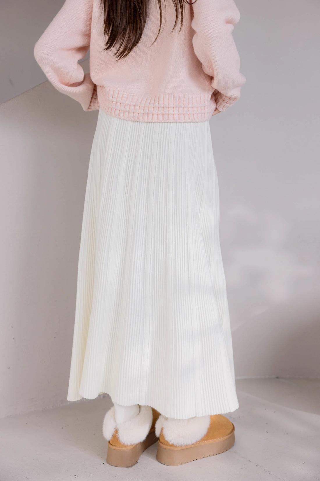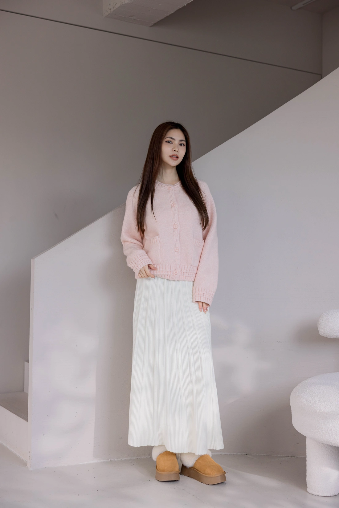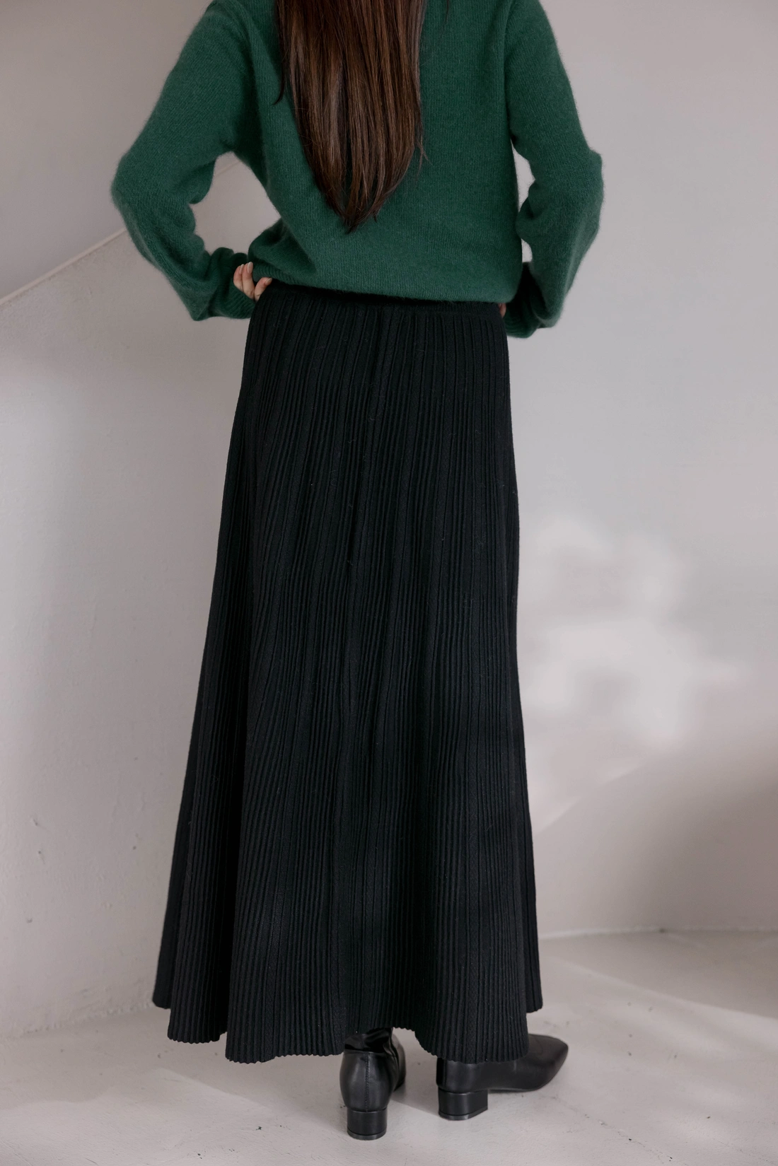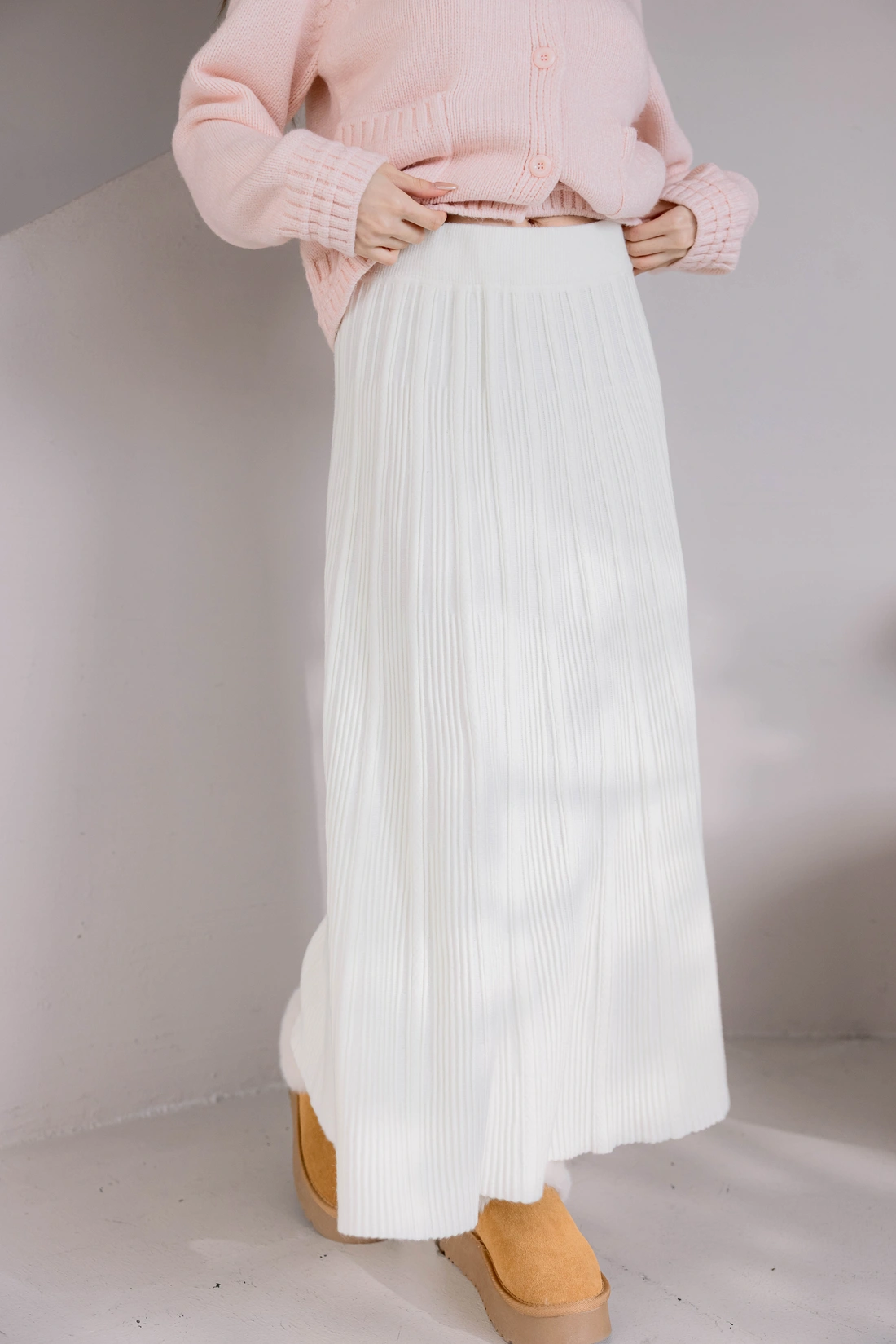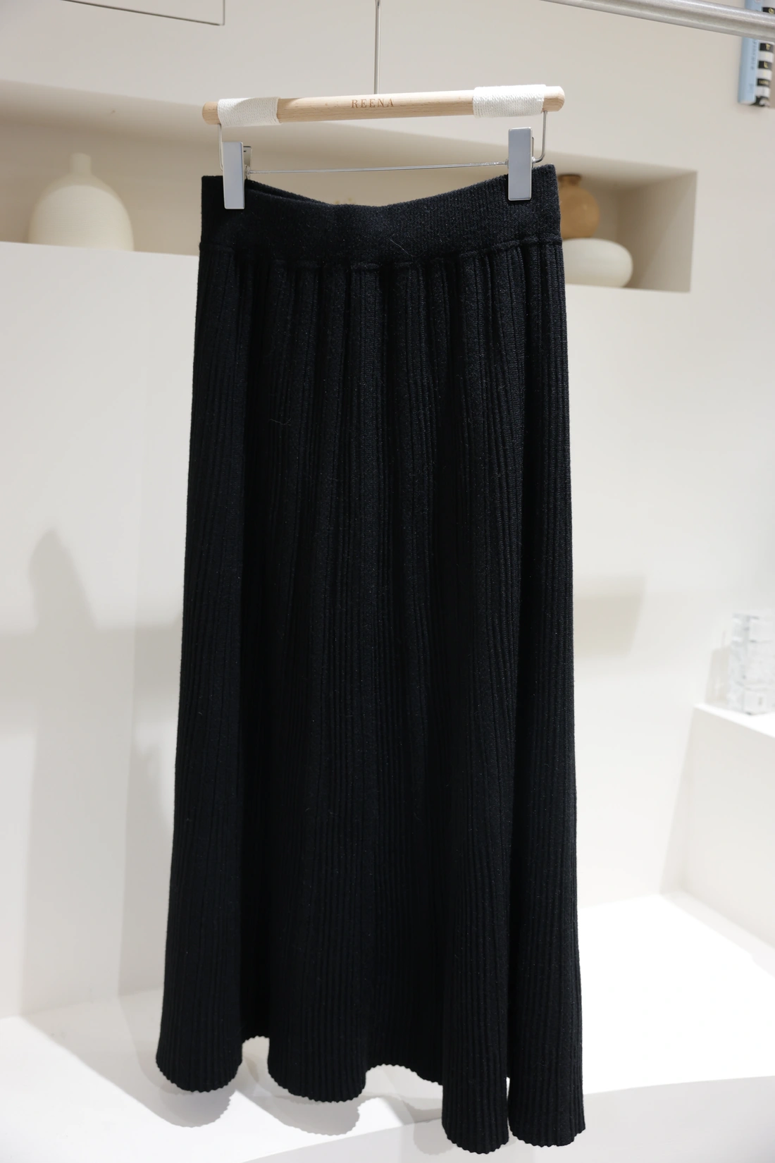 鬆緊腰設計/百褶設計長裙/優雅毛料材質