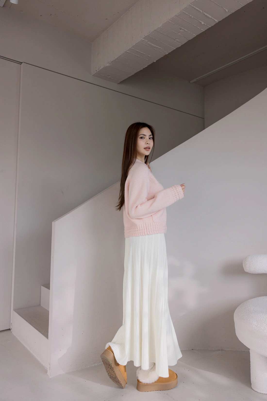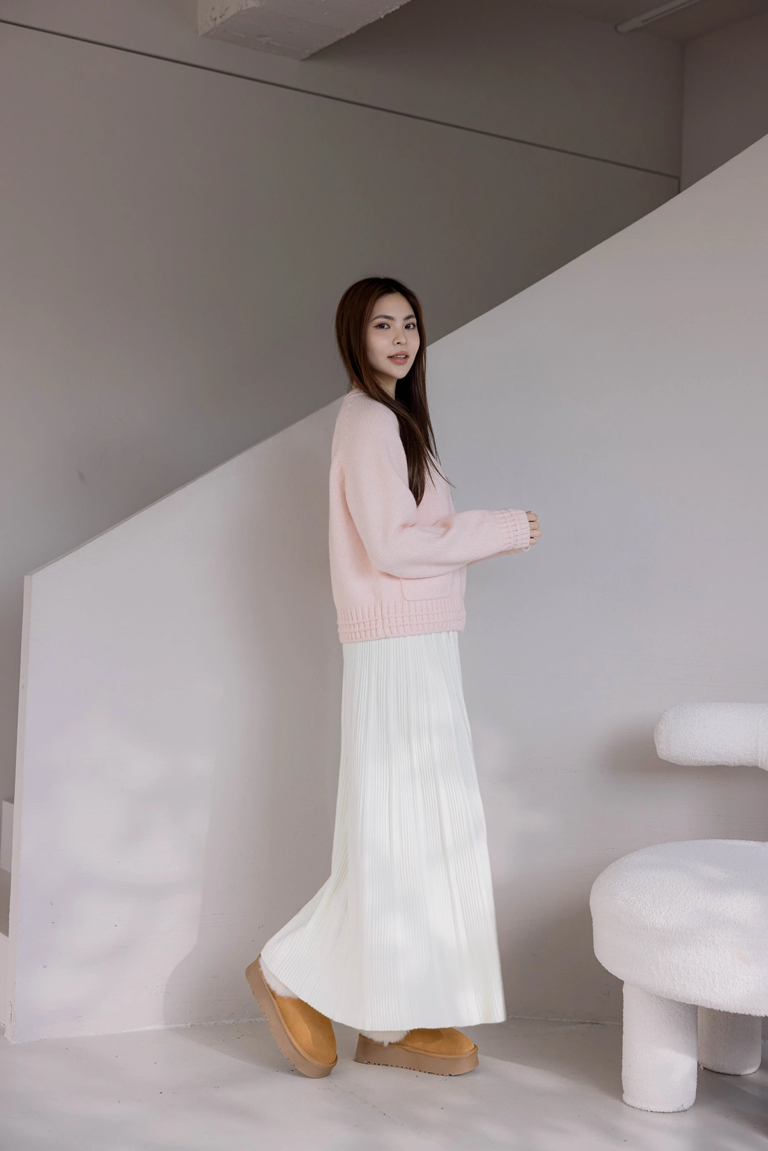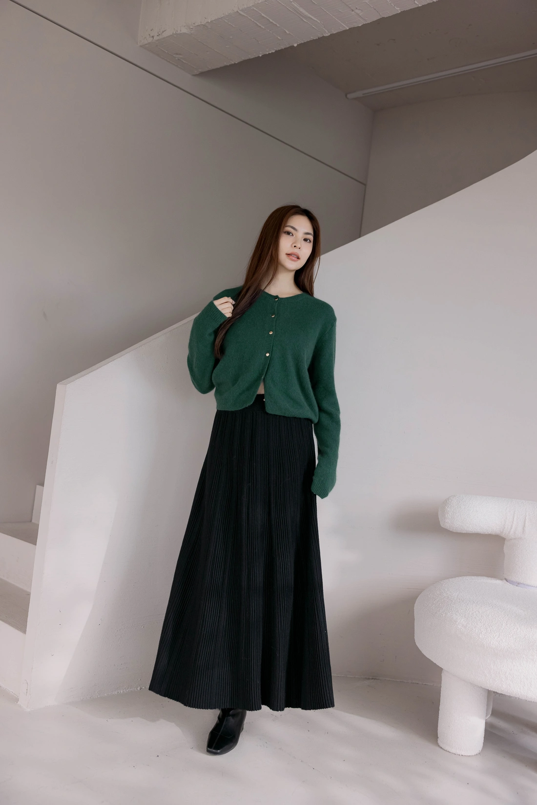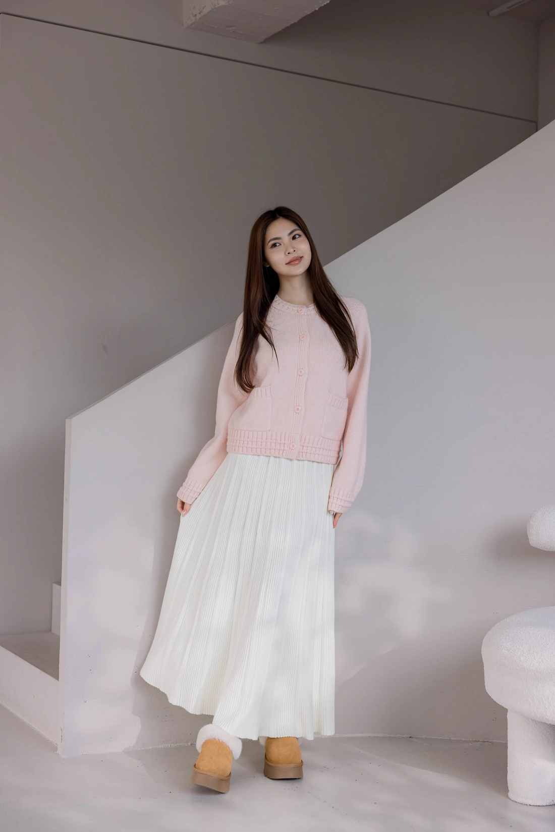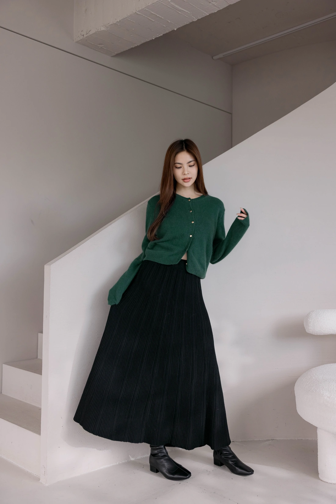 鬆緊腰設計/百褶設計長裙/優雅毛料材質