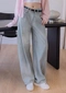 正韓製 顯瘦彎刀牛仔寬褲