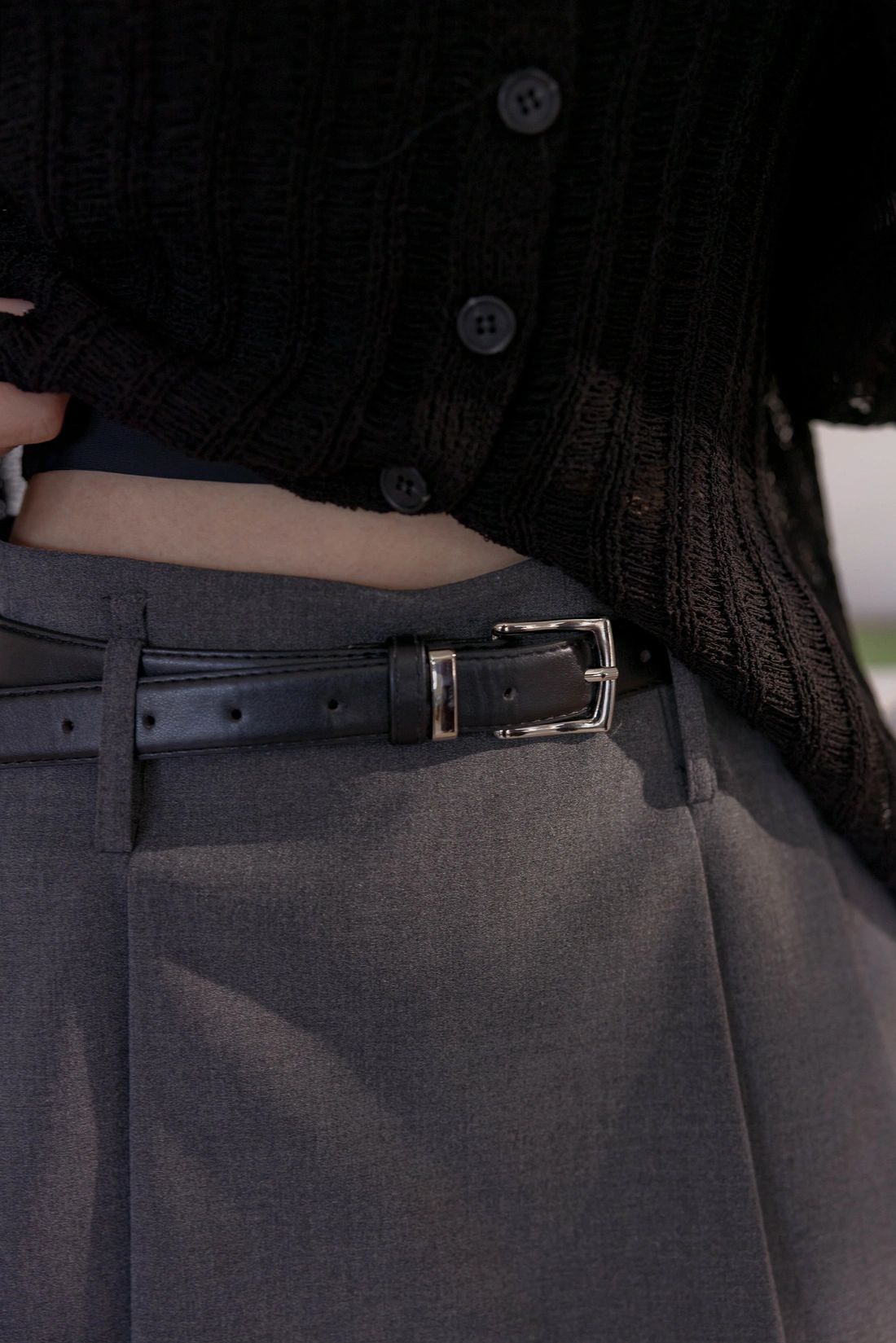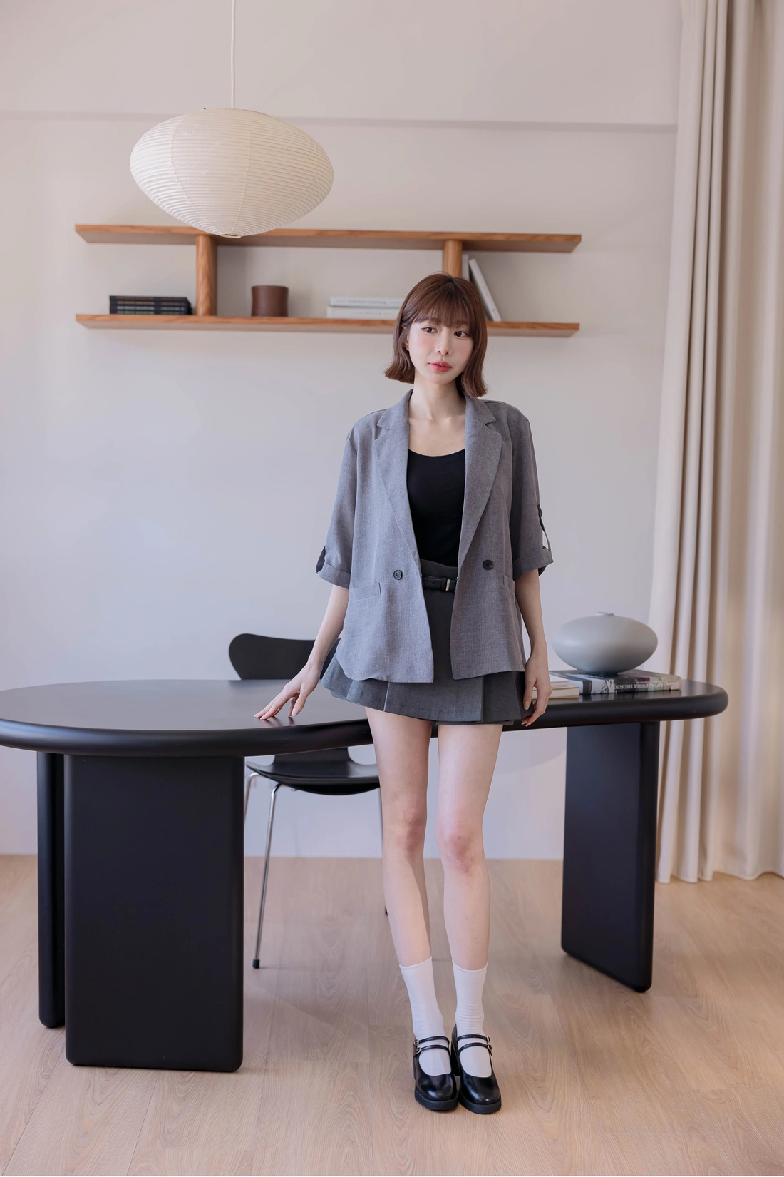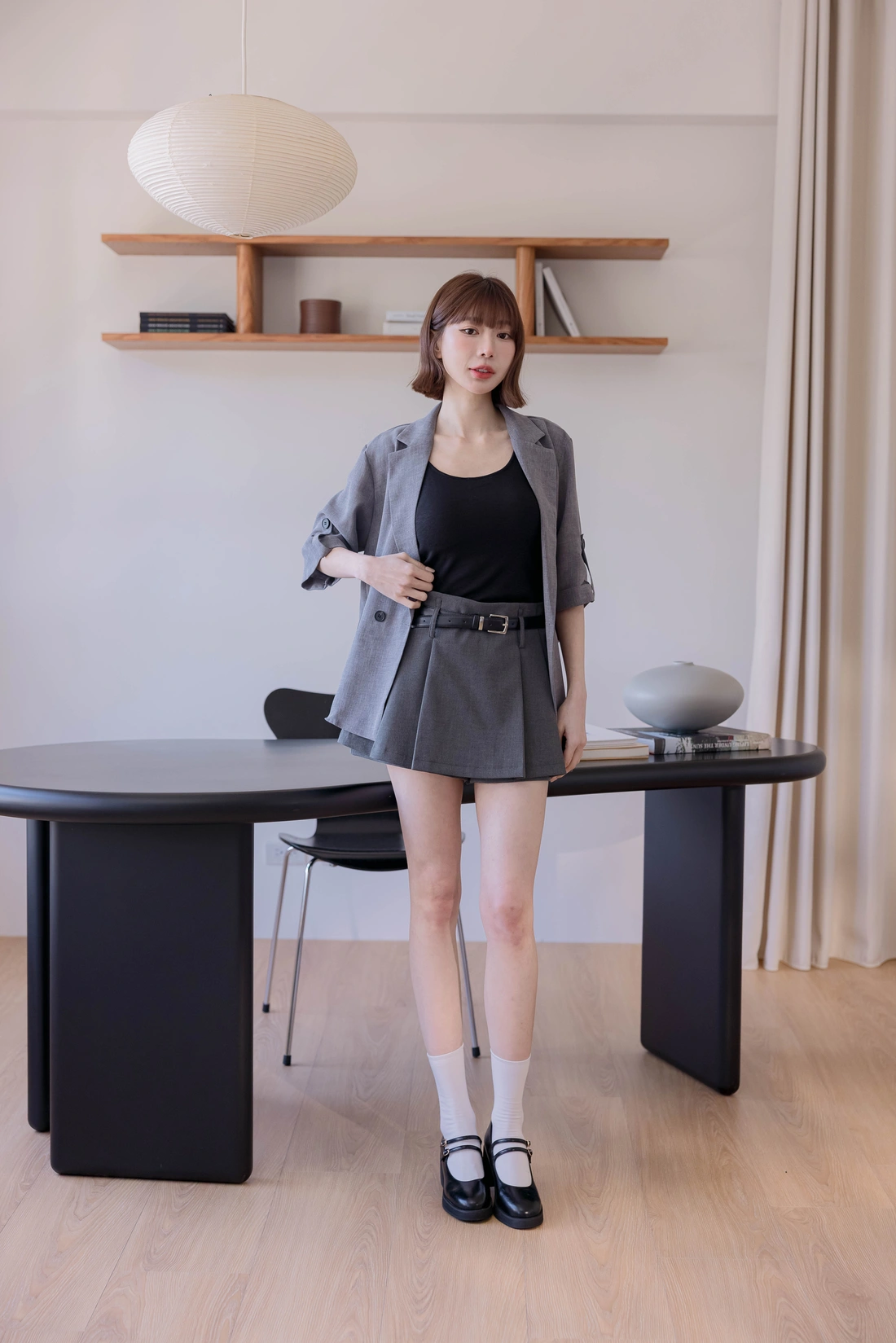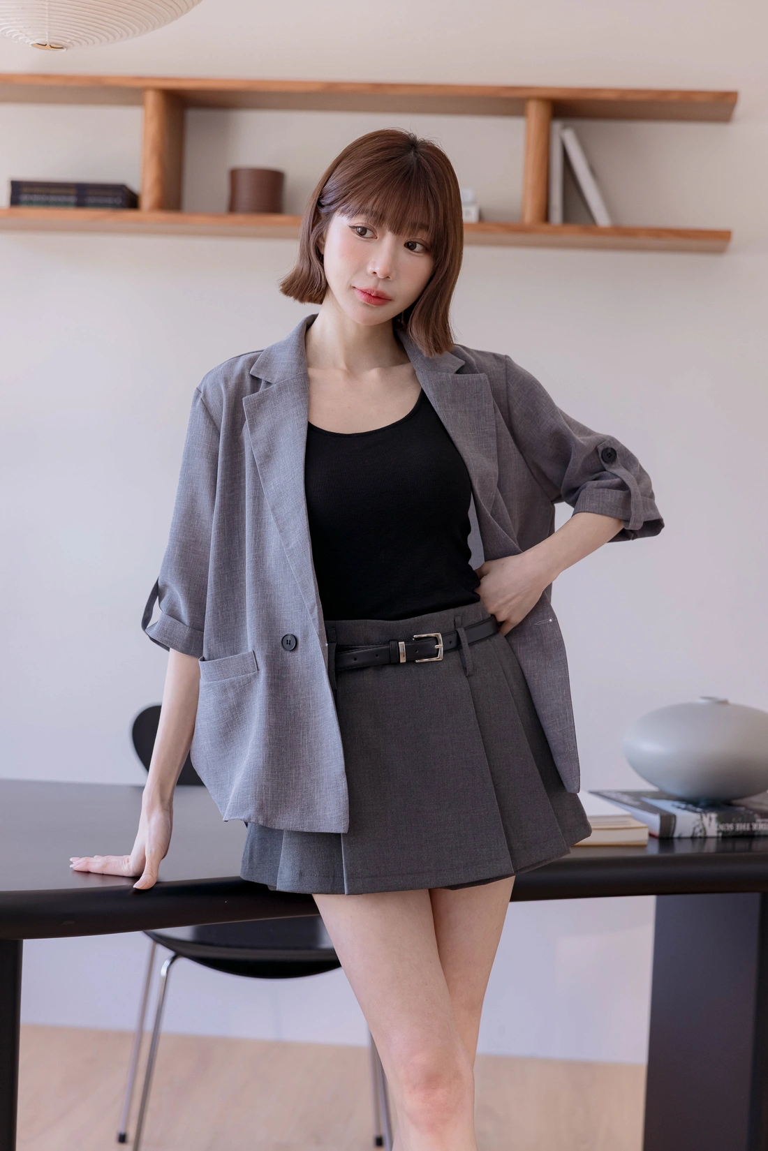 挺感西裝布料/簡約耐看打褶/側拉鍊方便穿脫