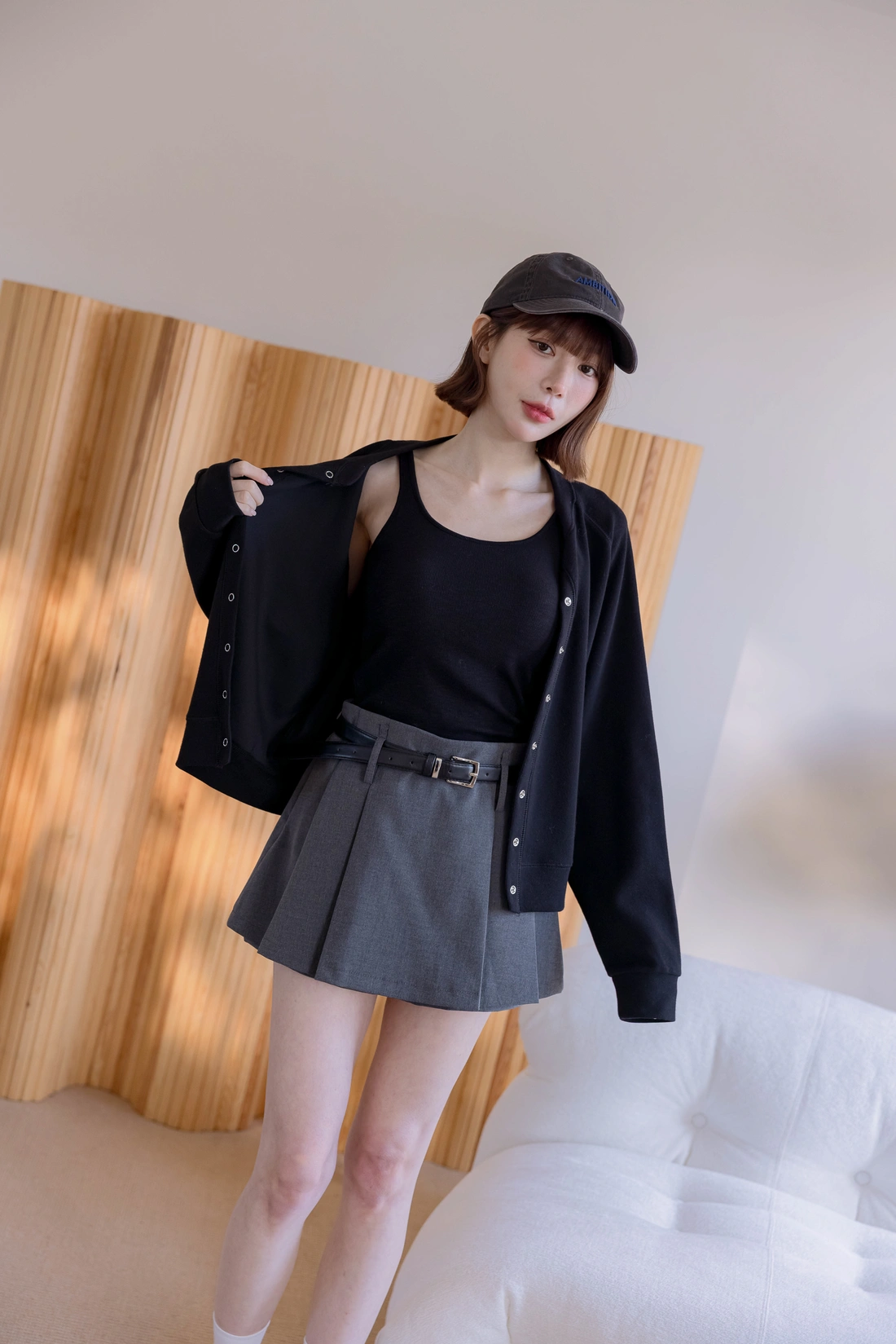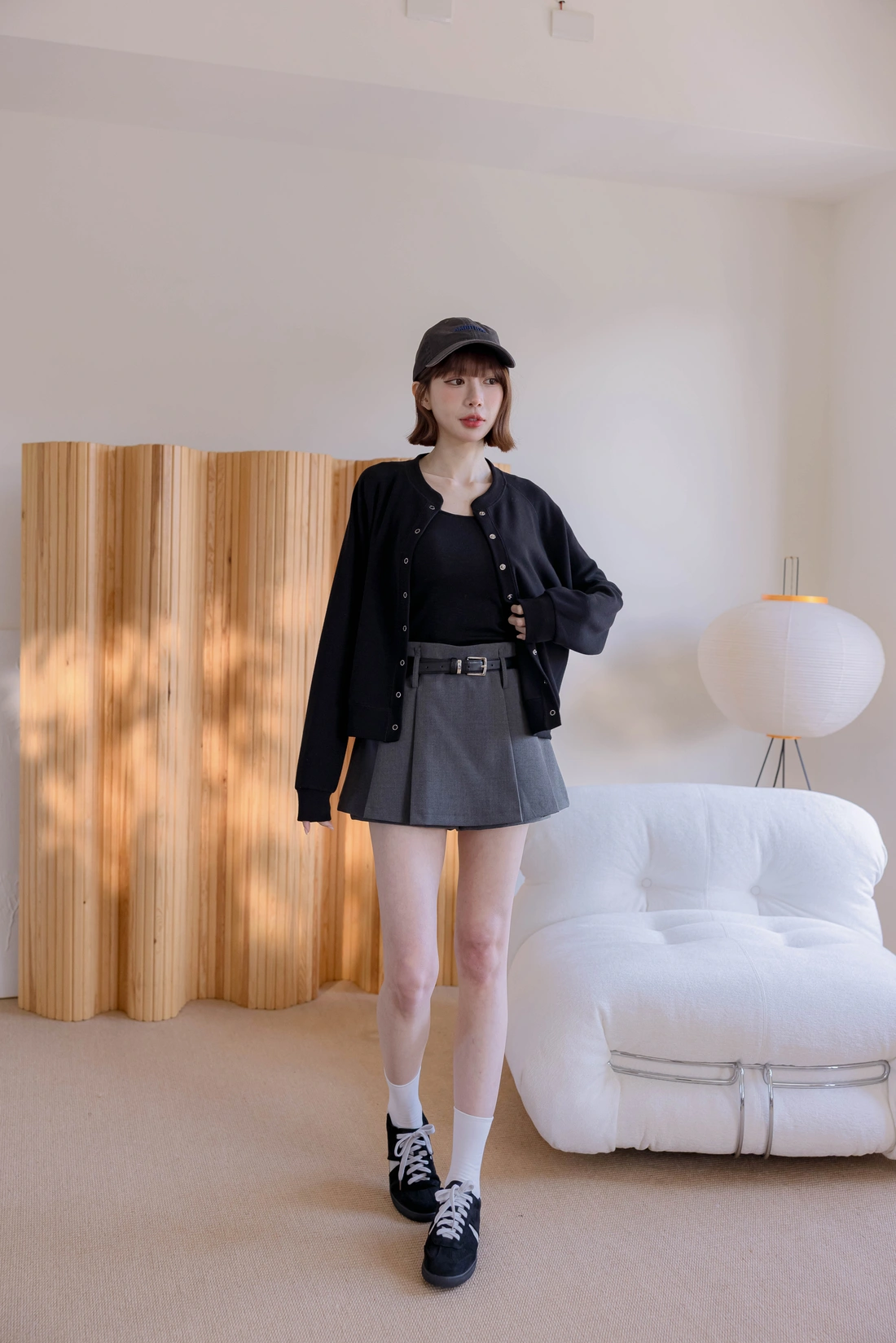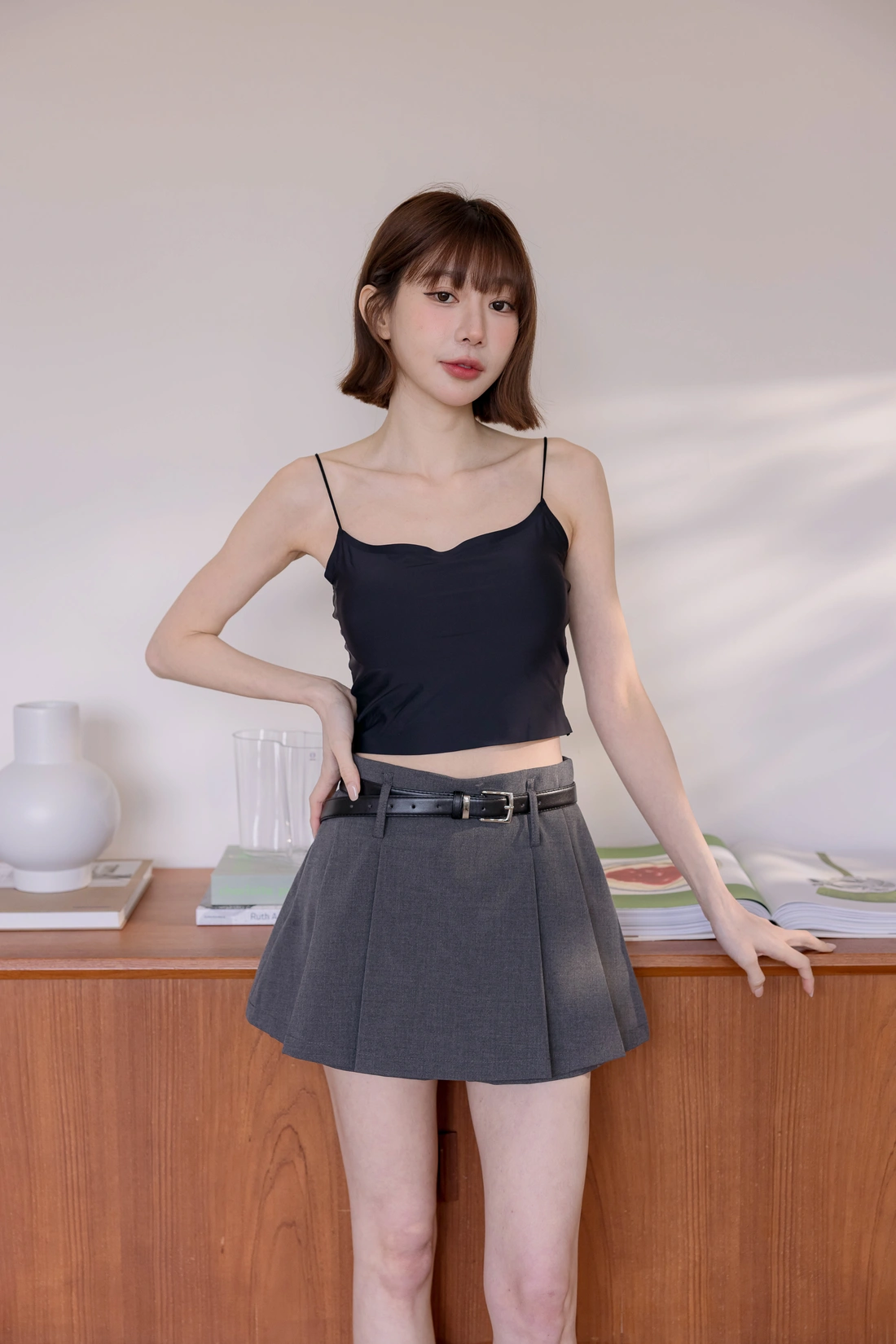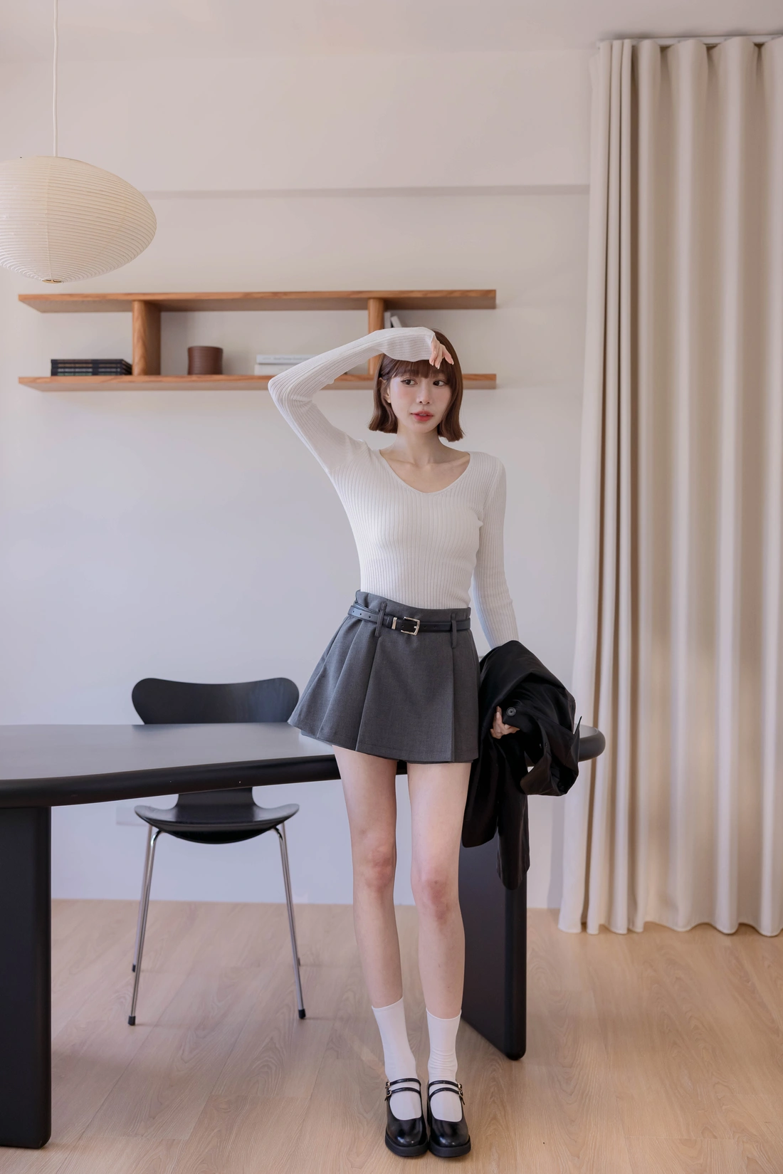 挺感西裝布料/簡約耐看打褶/側拉鍊方便穿脫