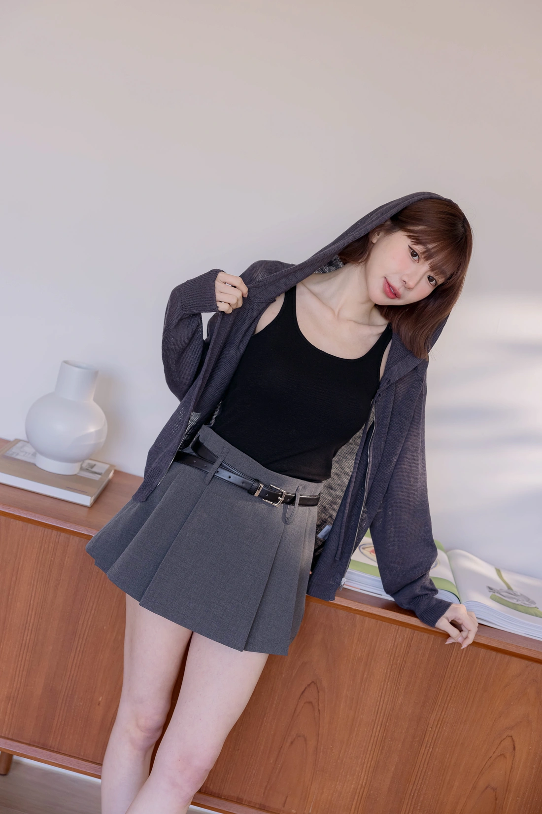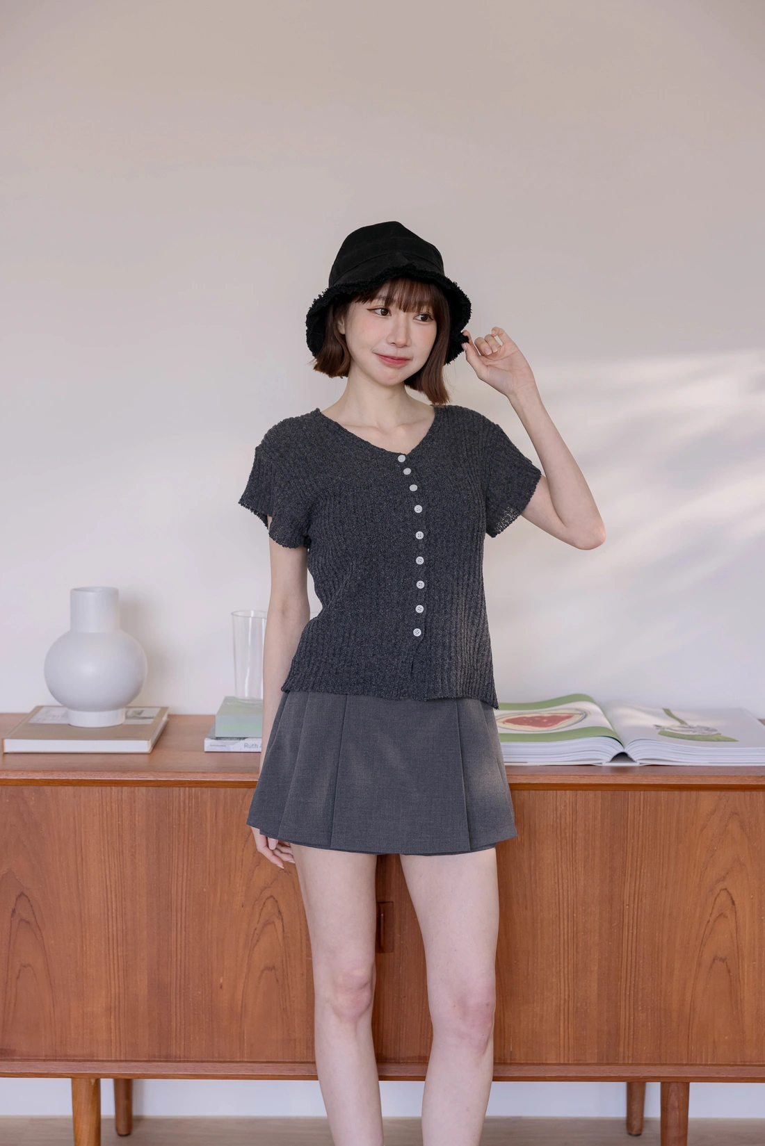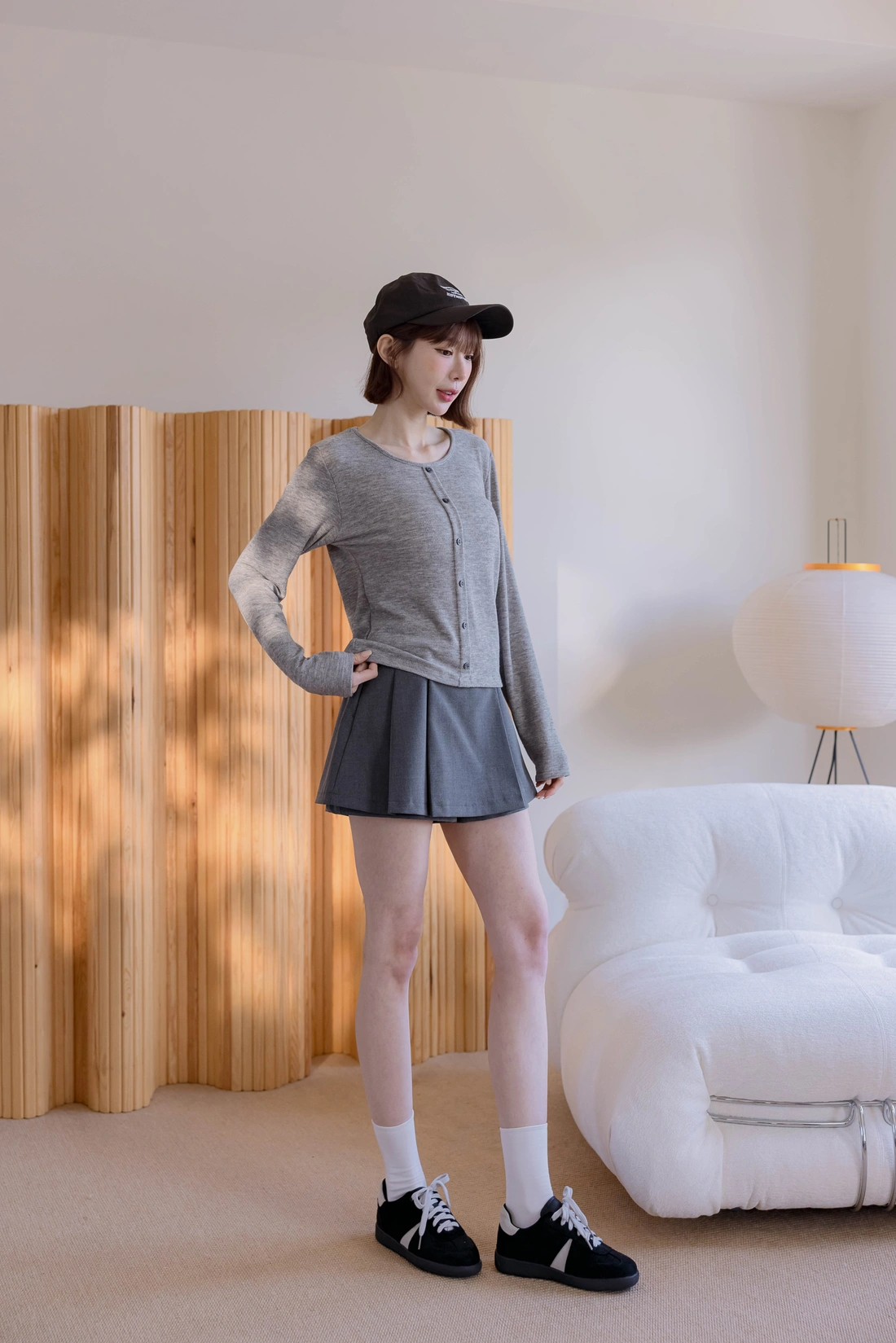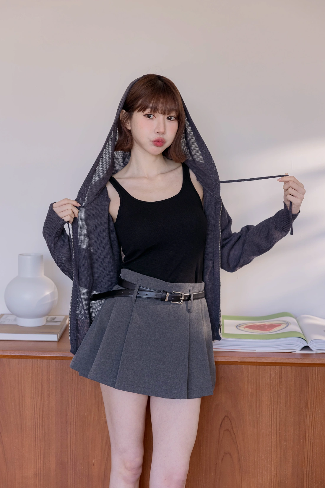 挺感西裝布料/簡約耐看打褶/側拉鍊方便穿脫