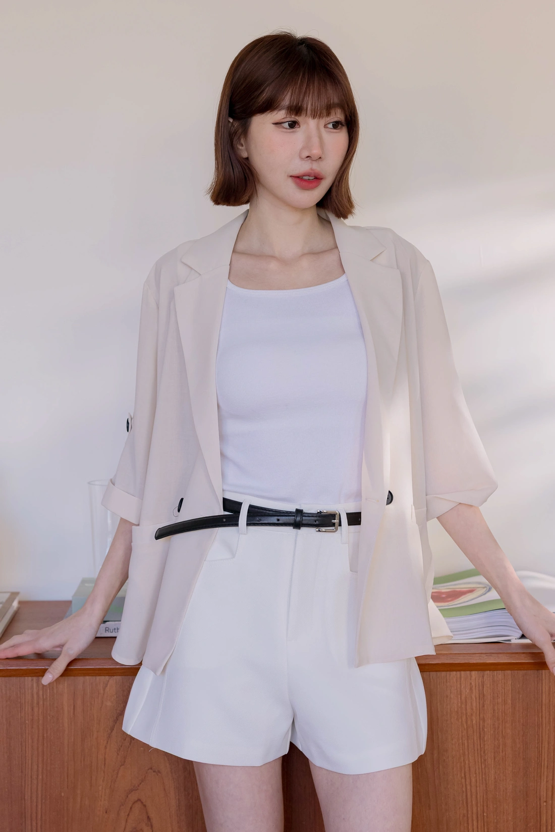 正韓製 側接縫斜紋短褲(附皮帶)