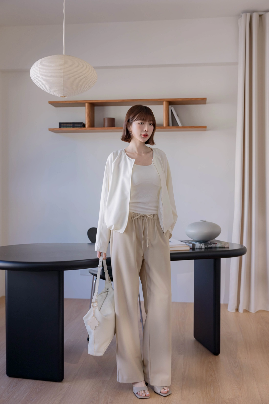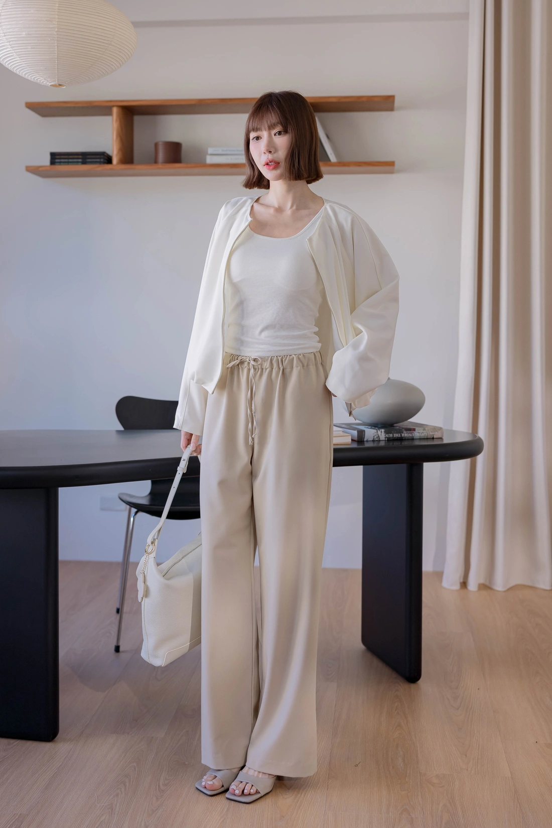 • 正韓製 奶霜系柔軟無領外套