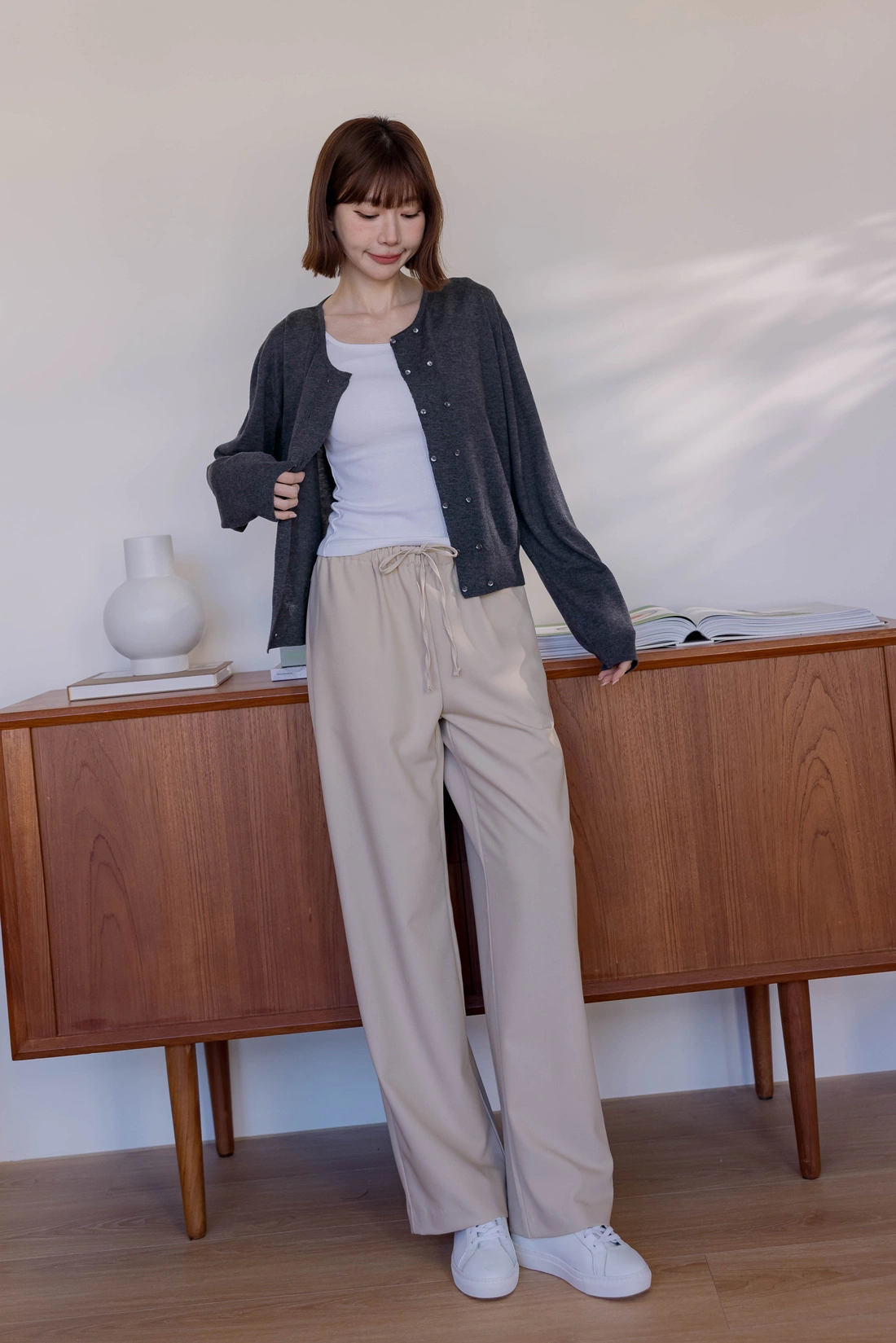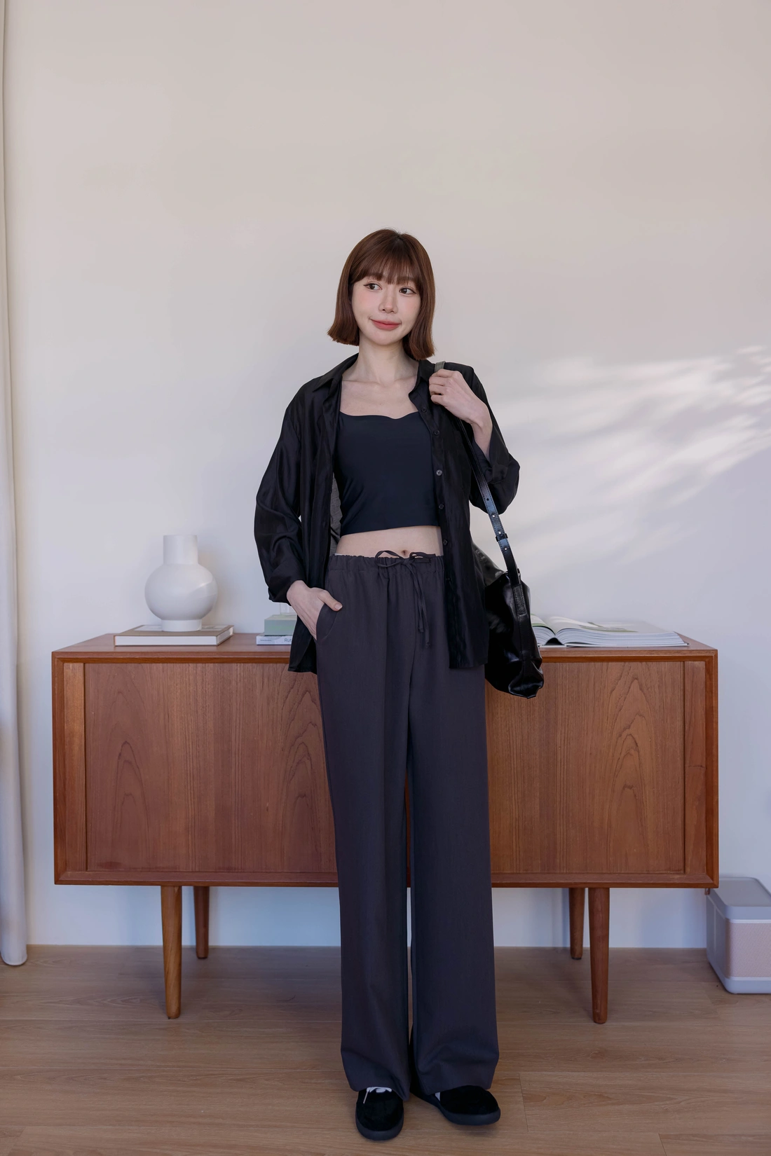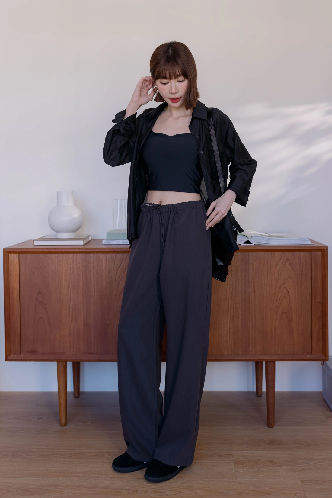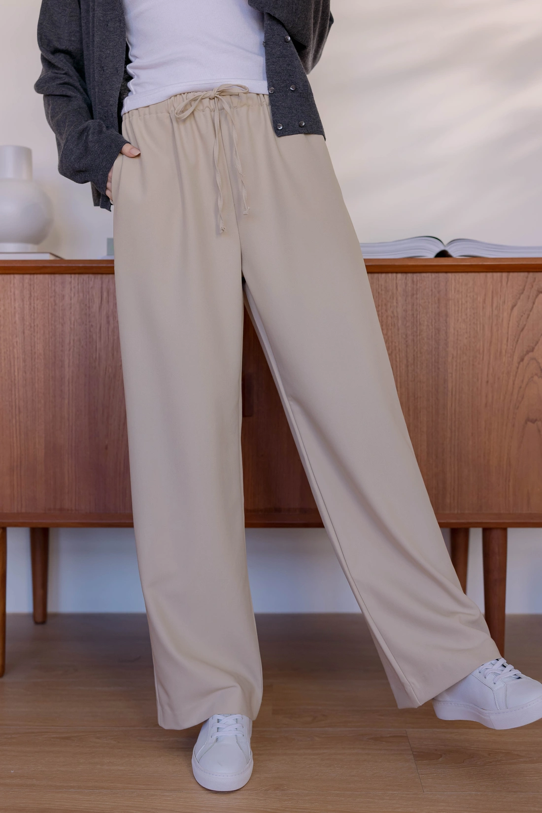 正韓製 抽繩滑面舒服褲