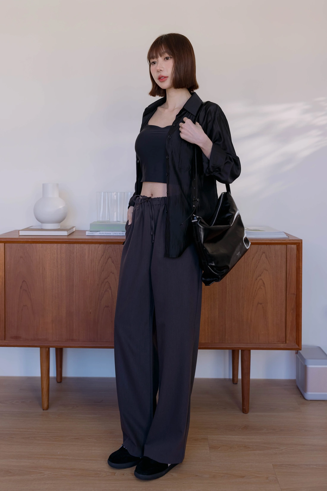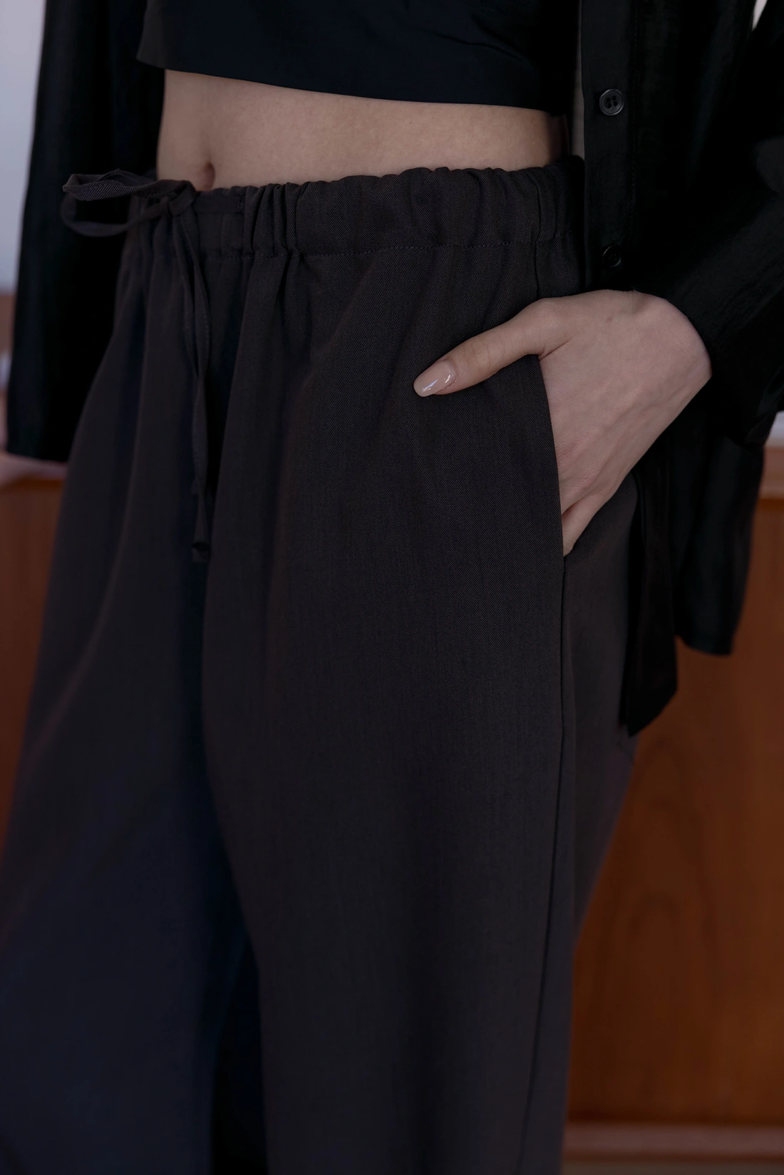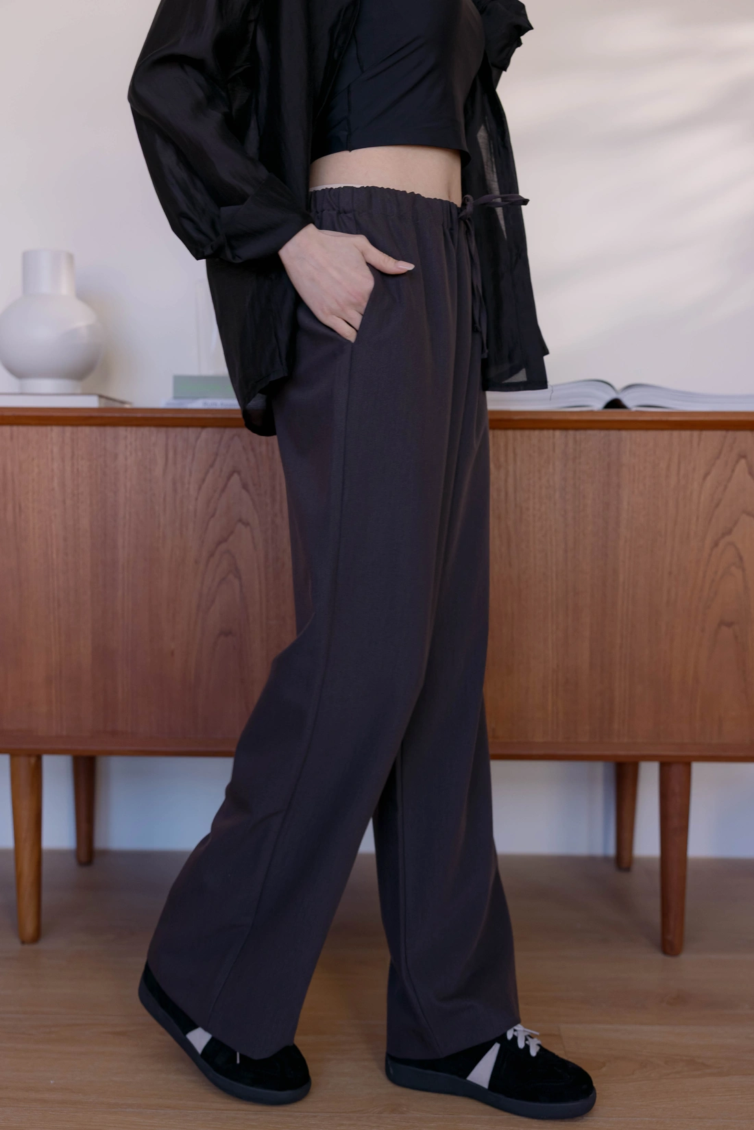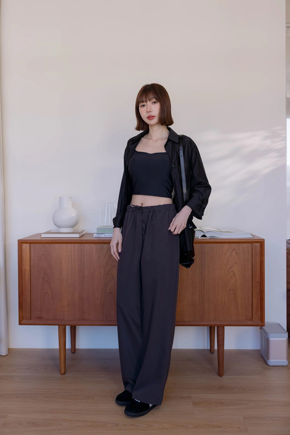正韓製 抽繩滑面舒服褲